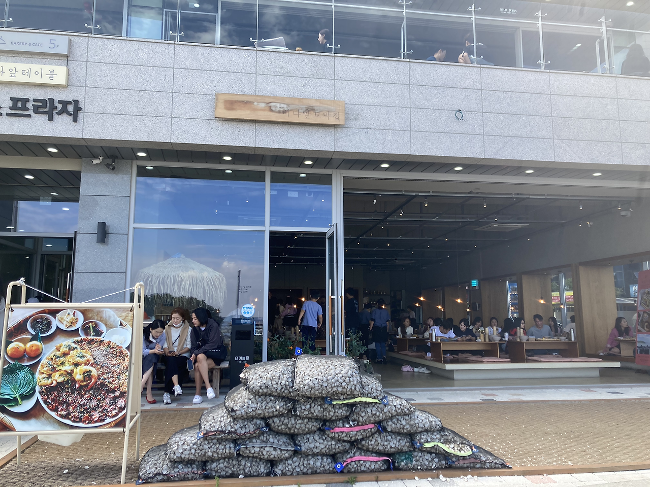 엄마가 이전에 친구분들과 드셔 보시고는 맛있었다고 하셨었던 <바다 앞 꼬막 집>. 호텔 체크아웃을 하고 점심으로 처음에 먹자고 하셨을 때 싫을게 뭐 있겠나, 당연히 좋았었다. 위층인 <바다 앞 농장> 카페에서 아래를 내려다보았을 때 길게 늘어섰던 줄이 설마 식당 줄이겠냐고 코웃음 쳤을 때 아래 내려가서 보니 식당의 줄이었다는 걸 알고 기대가 컸었다.