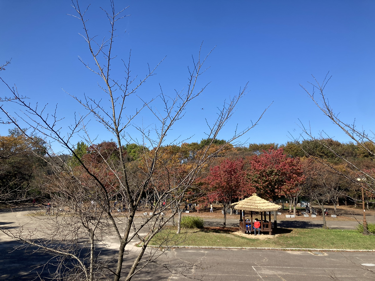 엄마와 함께 인천 2호선 지하철을 타고 인천대공원역에 내렸었다. 인천대공원 역을 내려 인천대공원을 걸으니 단풍잎과 은행잎이 곳곳에 빨갛게, 노랗게 물들어 있었고, 어떤 나무는 세찬 바람에 미처 색깔이 물들기도 전에 잎이 떨어져 있기도 했었다. 또한 아직 잎의 색깔이 물들지 않고 아직 초록색인 나무도 더러 있었다. 인천대공원의 끝자락에 있는 장수동 은행나무를 보러 가기 위해 열심히 공원을 걷는데 인천대공원 특유의 단풍터널이 곳곳에 보였어서 사진을 찍으면서 예쁘다고 감탄하면서 걸었었다.