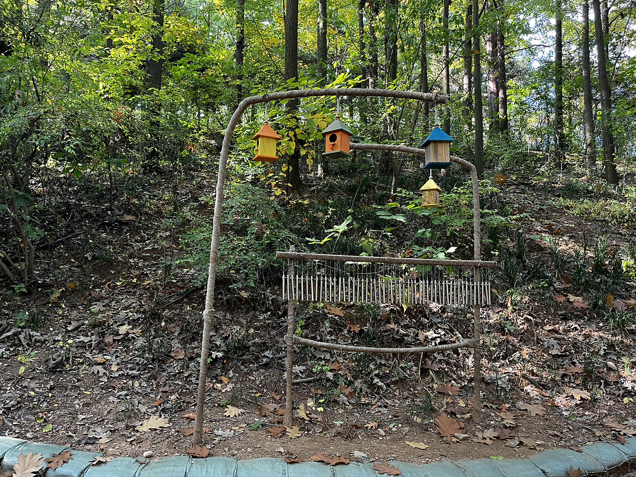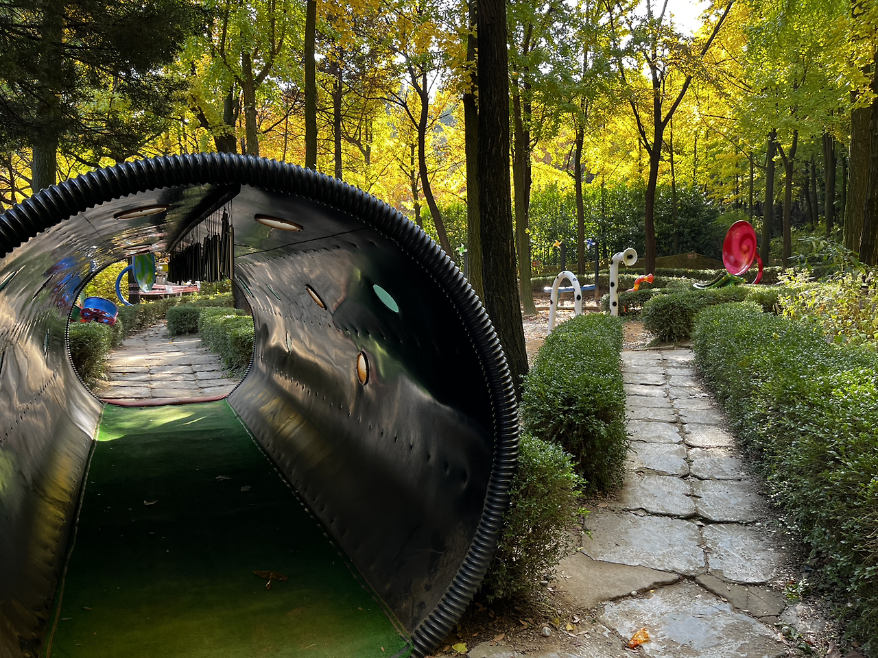 계단으로 내려가니 숲 속 도서관과 소리를 체험할 수 있는 놀이공간이 마련되어있었다. 다양한 기구를 통해 맑고 청아한 소리부터 둔탁한 소리까지. 다채로운 소리의 향연을 느낄 수 있었다. 터널을 지나면서 소리가 나야 하는데 아직 키가 닿지 않았던 아들 녀석은 한참을 터널만 왔다 갔다 했었다. 소리를 낼 수 없었지만 단순히 터널을 왔다 갔다 하는 것만으로도 충분히 재밌었나 보다. 한참을 왔다 갔다 했었다.