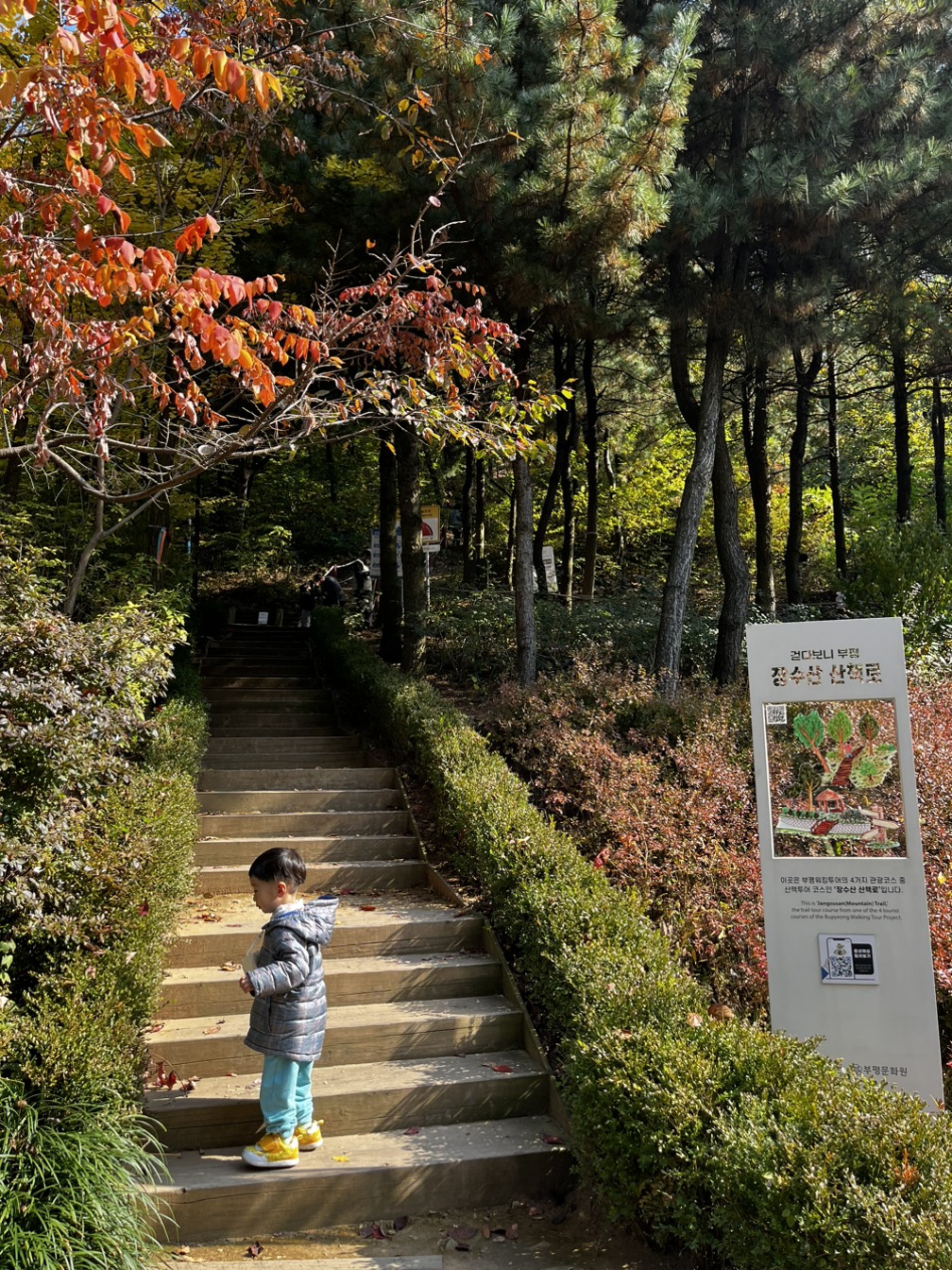 소리 동산을 나와 인천 나비공원과 이어진 장수산 산책로 쪽으로 발길을 옮겼었다. 계단을 보고 거침없이 올라갔던 아들 녀석. 마음 같아선 아들 녀석을 데리고 정상까지 계단을 오르내리고 싶었지만 맛보기로 산책로를 즐긴 후 다시 나비공원 쪽으로 내려왔었다.