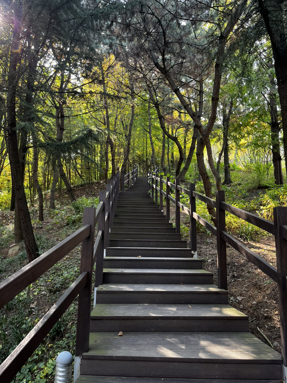 토끼집에 있는 토끼들에게 나비공원 내에 있는 카페에서 토끼 먹이인 당근을 사서 먹이로 줄 수 있어 아이들에게도 인기 만점이었다. 우리 아이에게도 이와 같은 체험을 해주려고 토끼 먹이를 사러 카페를 갔었는데 이제 더 이상 토끼 먹이인 당근을 팔지 않는다는 슬픈 소식을 접했었다. 쓰인 안내문구로 보자면, 토끼들이 배탈이 난다고. 아쉽지만 어쩔 수 없이 돌아서야 했었다. 토끼집에 몇 없는 토끼들을 구경하고 공원 옆길의 계단을 올랐다. 요즘 계단을 좋아하는 아들 녀 석덕에 운동되고 참 좋다. 계단을 올라 쭉 걸어 산길 내리막으로 내려가자고 하니 싫다고 고집을 피웠다. 결국 다시 돌아 계단으로 내려갔던 아들 녀석. 계단이 그리도 좋을까?
