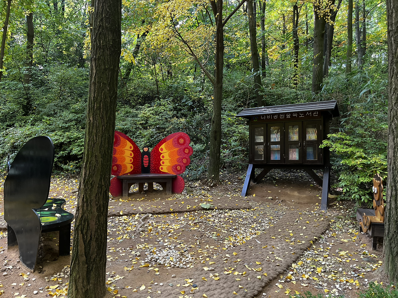 아무래도 겨울이 다가와서 그런지 취재했을 당시와는 조금 달랐었다. 그때 당시에는 구경할 게 꽤 많았던 걸로 기억하는데 이번에 아이와 방문했을 때는 다소 줄어든 느낌이었다. 그래도 공원 내에 빨갛게 노랗게 물든 단풍, 은행잎은 예뻤다. 그동안 아이가 많이 아팠어서 오랜만에 아이를 데리고 가까운 공원으로 나들이를 나왔었는데 조금이나마 괜찮아져서 잘 걷고 잘 뛰어다녔었다. 공원 자체가 그리 크지 않아 짧은 시간에 나들이하기 좋았었다. 길지 않은 시간이었지만 아이도 나도 기분전환이 되었다. 아이가 빨리 커서 더 멀리, 자유롭게 여행할 수 있는 날이 오길 손꼽아 기다린다. 오늘은 처음이었고, 컨디션도 100퍼센트가 아니었기에 많은 활동을 강요하지 않았었다. 다음에 다시 찾는다면, 그때는 아이도 더 많은 걸 체험할 수 있겠지? 다음에는 따뜻한 날씨에 방문하여 더 많은 종류의 나비들이 날아다니는 모습을 봤으면 하는 바람이었다.