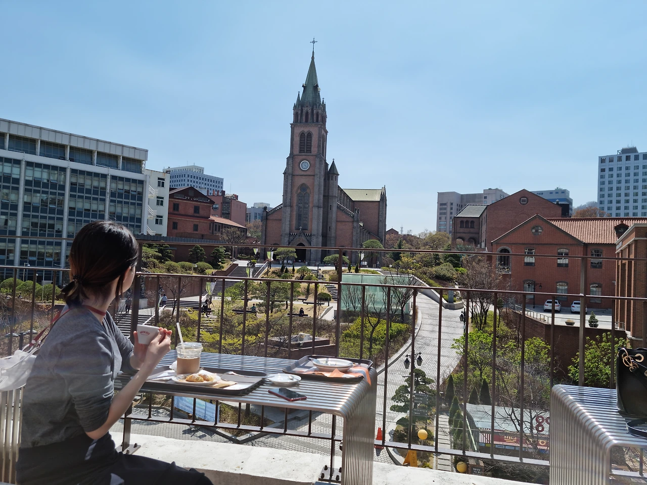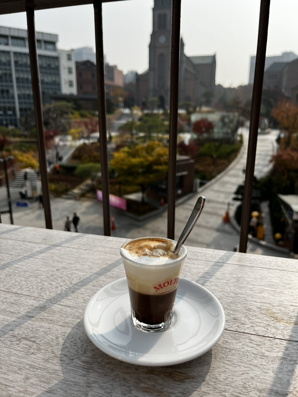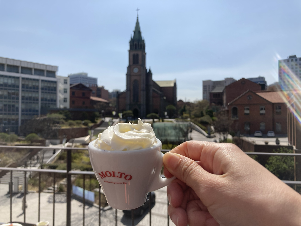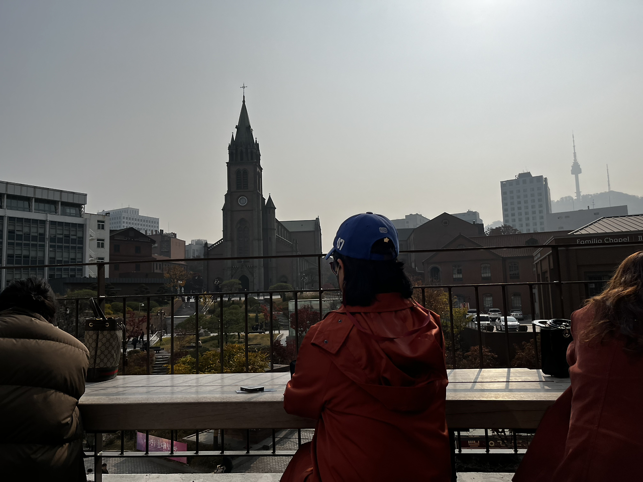 지난번 봄에 엄마와 몰또를 방문했을 때였다. 그때 명동성당이 한눈에 내려다보이는 뷰를 보며 에스프레소를 홀짝이고 있었다. 갑자기 문득 가을에 단풍이 물들 때 오면 좋을 것 같다는 생각이 들었었다.