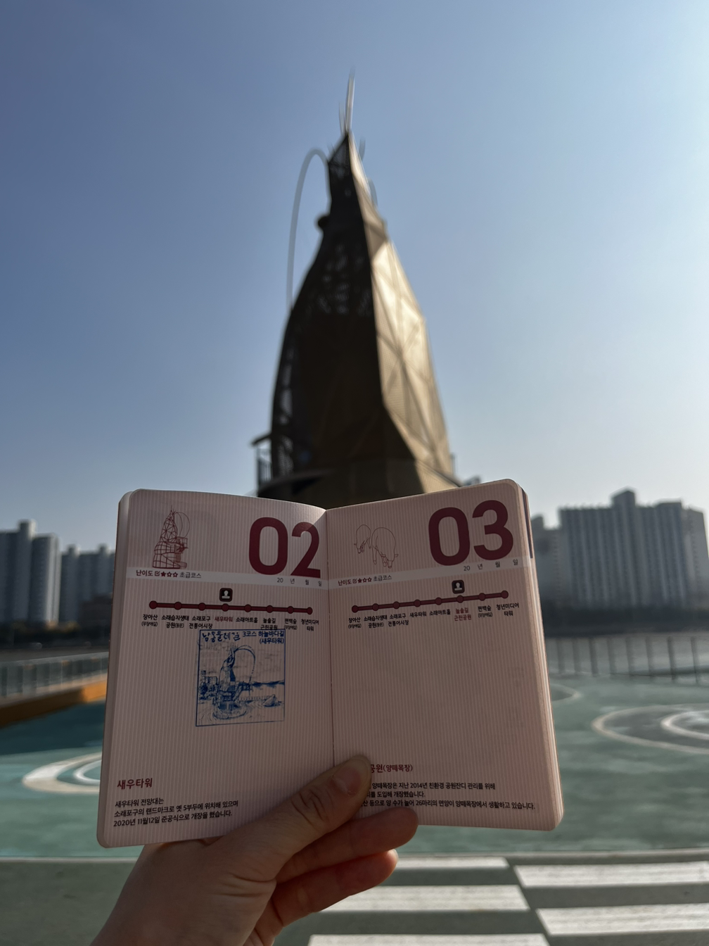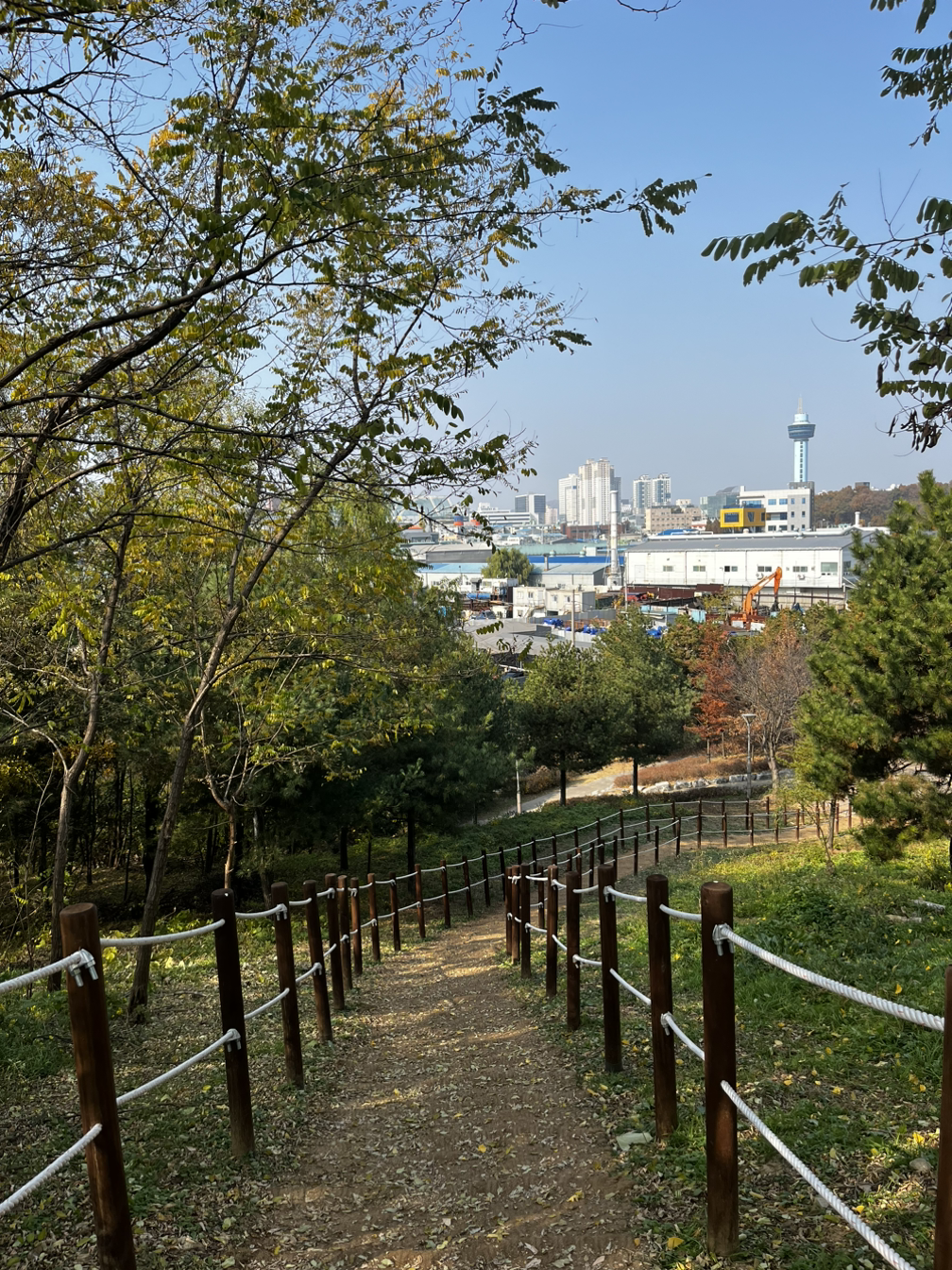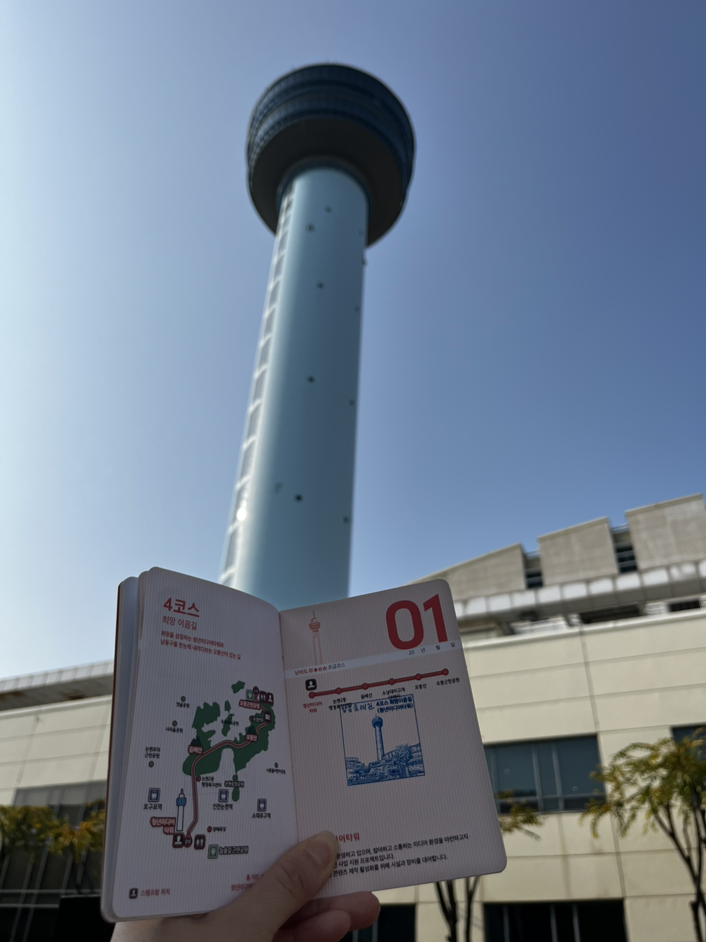 편백나무숲길을 지나 상세 지도를 보고 걷는데 편백나무숲길의 옆길은 처음 걸었었다. 매번 늘솔길 공원을 가면 편백나무숲길까지만 걷고 주차장으로 돌아오곤 했었던지라 둘레길로 걷다 보니 장미원이 있다는 것도 처음 알았다. 쭉 코스대로 걷다 보니 3코스의 마지막인 구 남동타워, 현 청년미디어타워가 나오며 3코스 하늘 바다길의 대장정을 마쳤다.