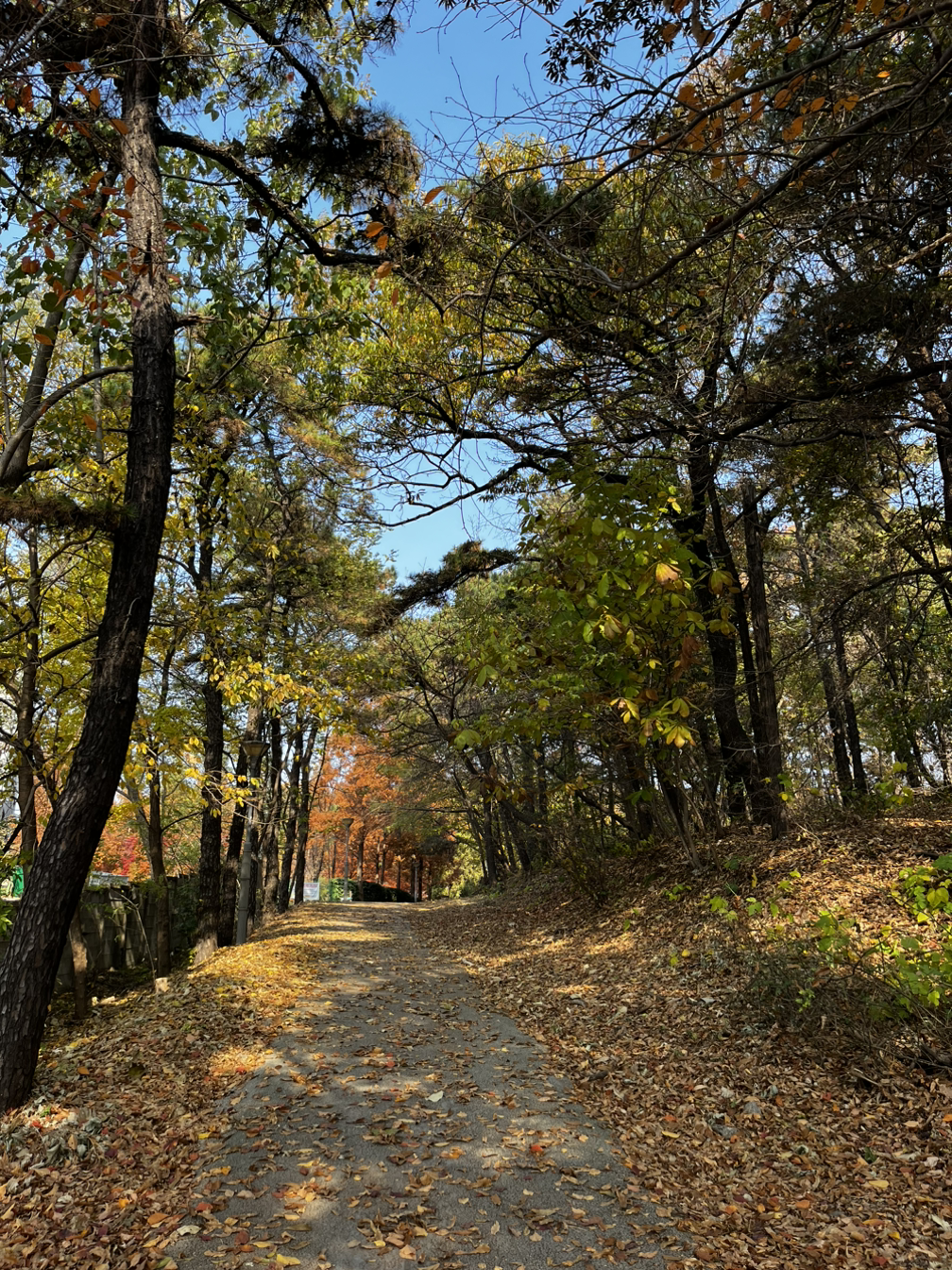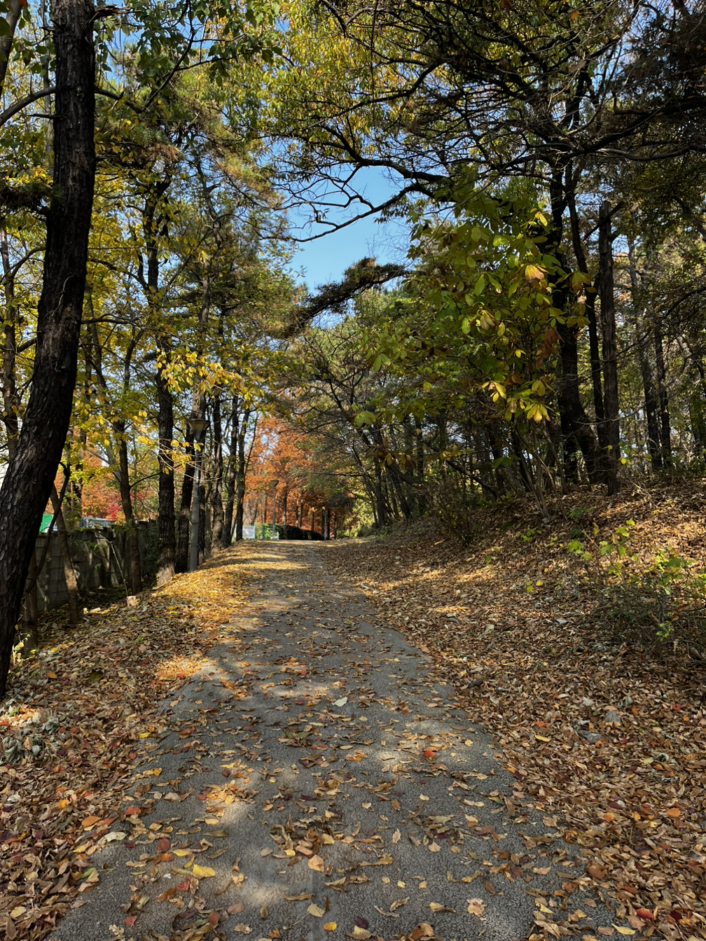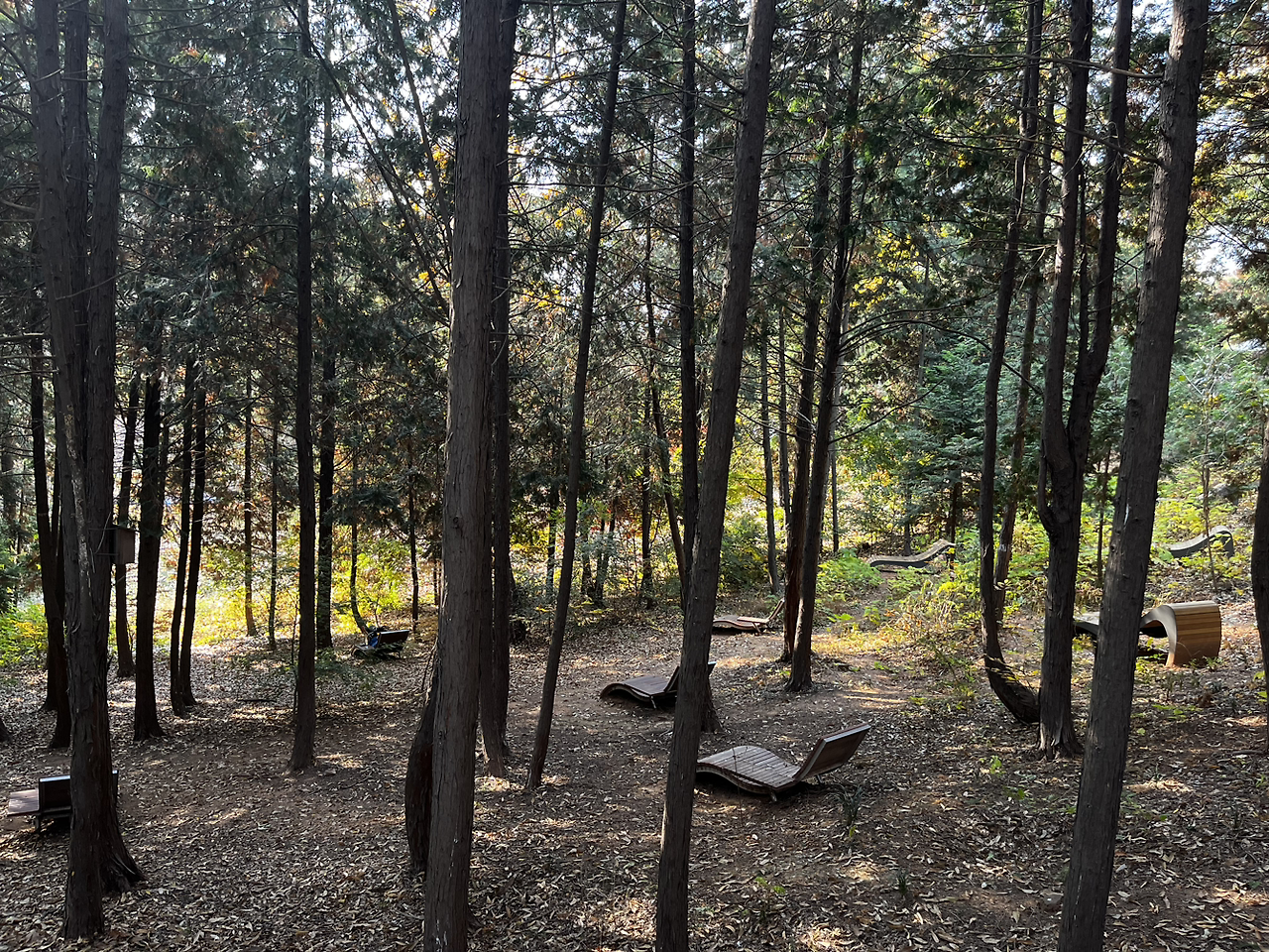 그렇게 소래 아트홀을 지나 늘솔길 공원을 도착했다. 내가 평소에 들어가던 공원 입구와 다른 입구였다. 이 산길도 좋았다. 양 떼를 구경하고 편백나무숲길을 걸으며 3코스 하늘 바다길의 모든 스탬프 인증을 마쳤다. 늘솔길 공원의 양 떼 같은 경우 지난여름에 온 가족이 총출동했었을 땐 양 떼 목장의 위까지 양 떼를 풀어놔서 양이 꽤나 많았었는데 이번에 가니 예전처럼 양이 몇 마리 되지 않았었다. 추워지는 날씨 때문일까. 늘솔길 공원도 안온 사이에 공원이 좀 변화된 모습이었다.
