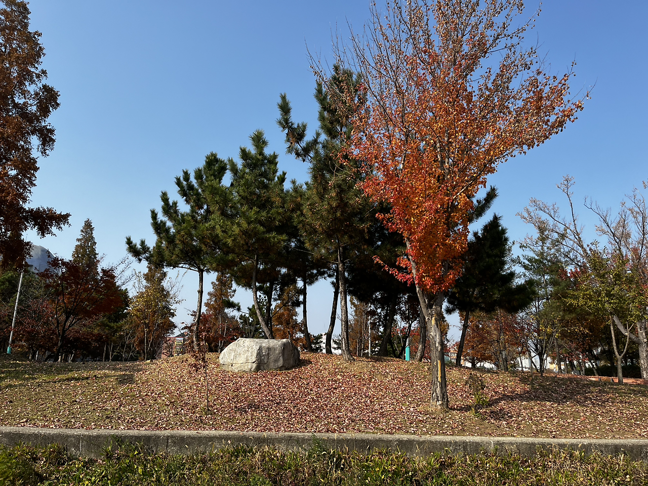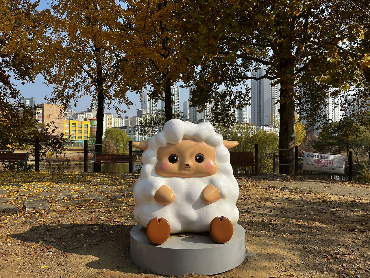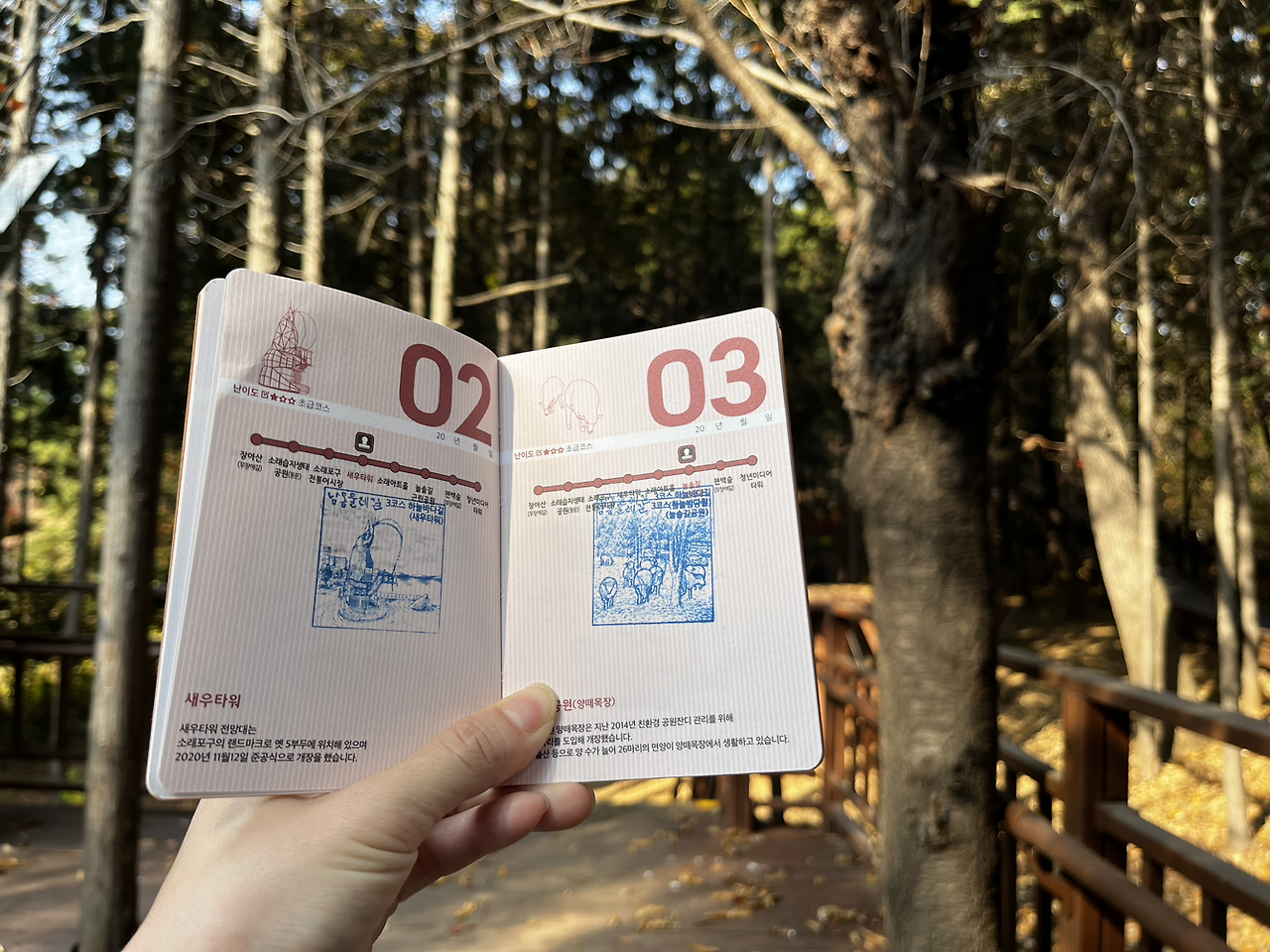 그렇게 소래 아트홀을 지나 늘솔길 공원을 도착했다. 내가 평소에 들어가던 공원 입구와 다른 입구였다. 이 산길도 좋았다. 양 떼를 구경하고 편백나무숲길을 걸으며 3코스 하늘 바다길의 모든 스탬프 인증을 마쳤다. 늘솔길 공원의 양 떼 같은 경우 지난여름에 온 가족이 총출동했었을 땐 양 떼 목장의 위까지 양 떼를 풀어놔서 양이 꽤나 많았었는데 이번에 가니 예전처럼 양이 몇 마리 되지 않았었다. 추워지는 날씨 때문일까. 늘솔길 공원도 안온 사이에 공원이 좀 변화된 모습이었다.