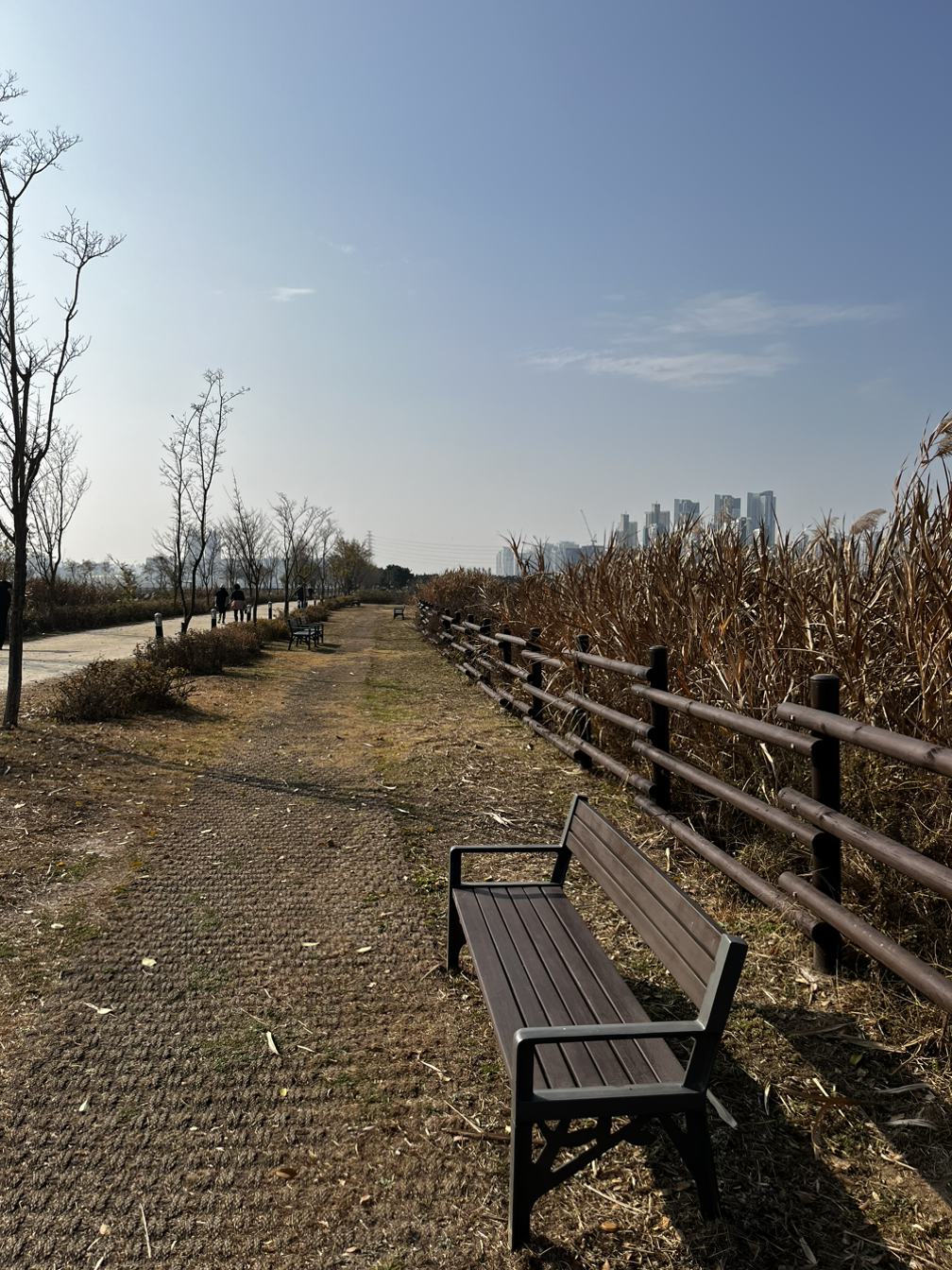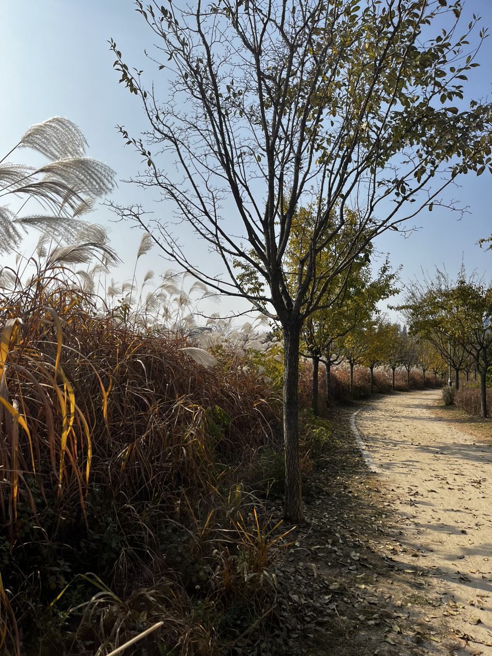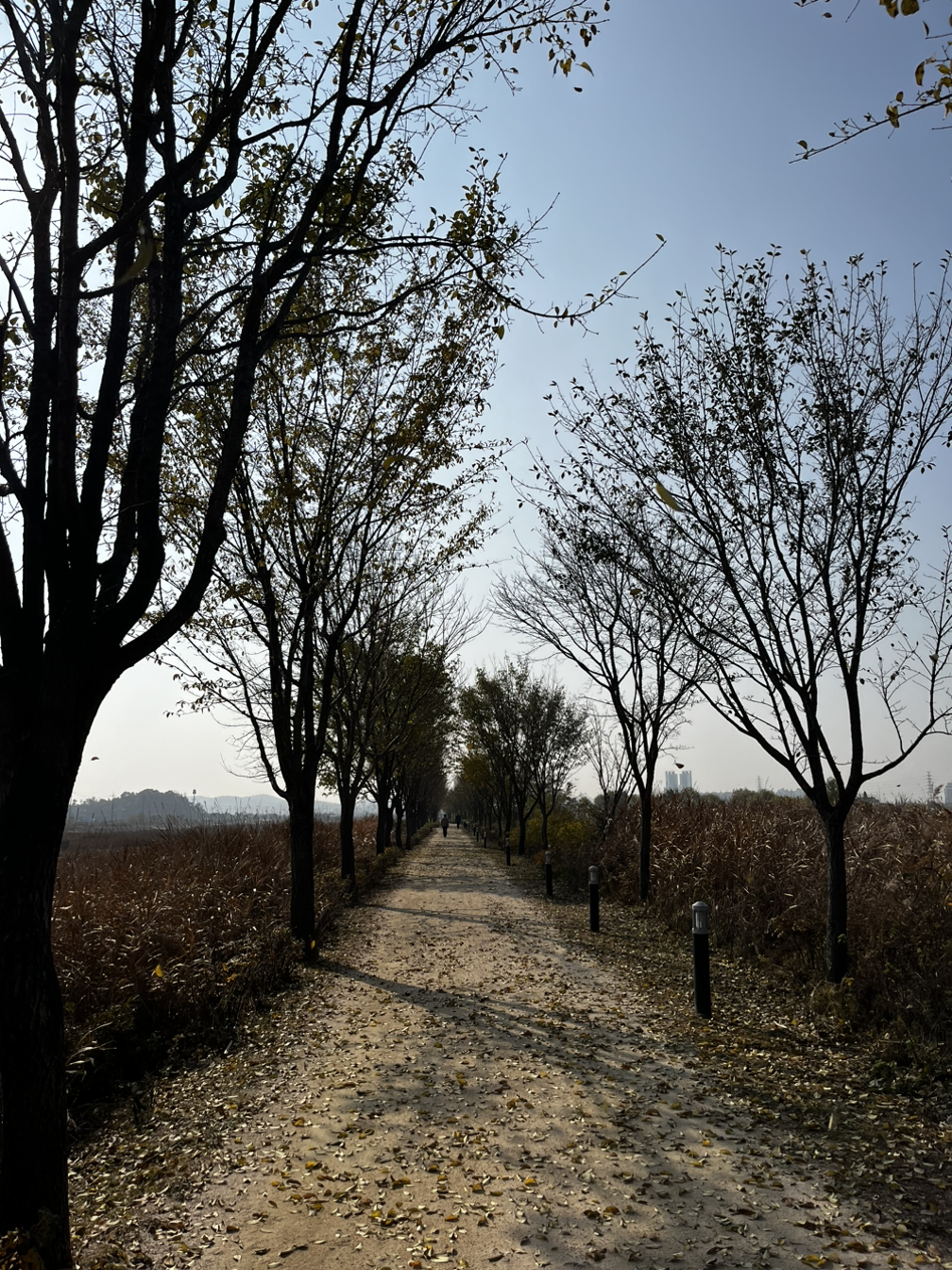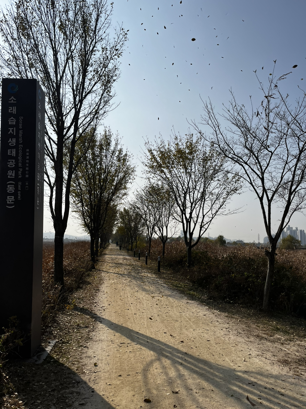 소래습지생태공원 동문에 다다르자 공원에는 운동을 하러 온 사람들, 나들이를 나온 사람들이 많이 있었지만 분위기가 꽤나 스산하고 황량했었다. 이 분위기가 싫지 않았다. 나뭇잎이 바람에 날려 길에 많이 떨어져 있었고 밟으면서 바스락 거리는 느낌이 좋았다.