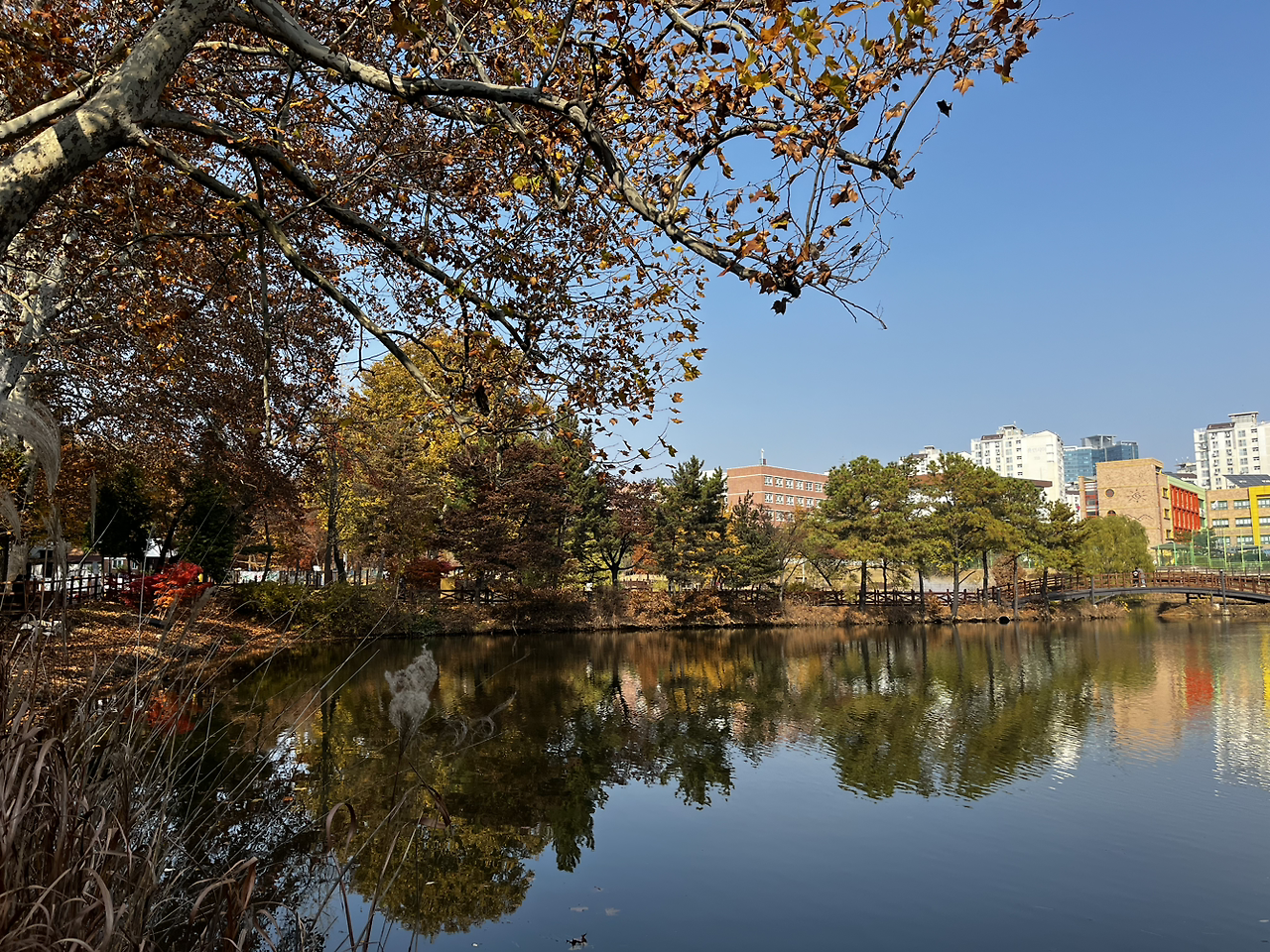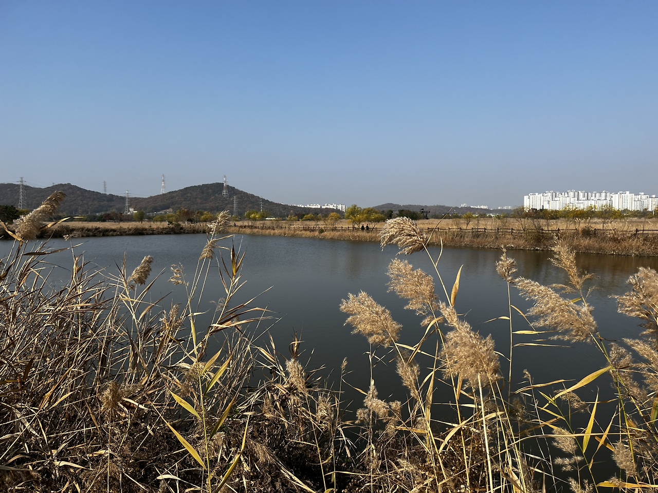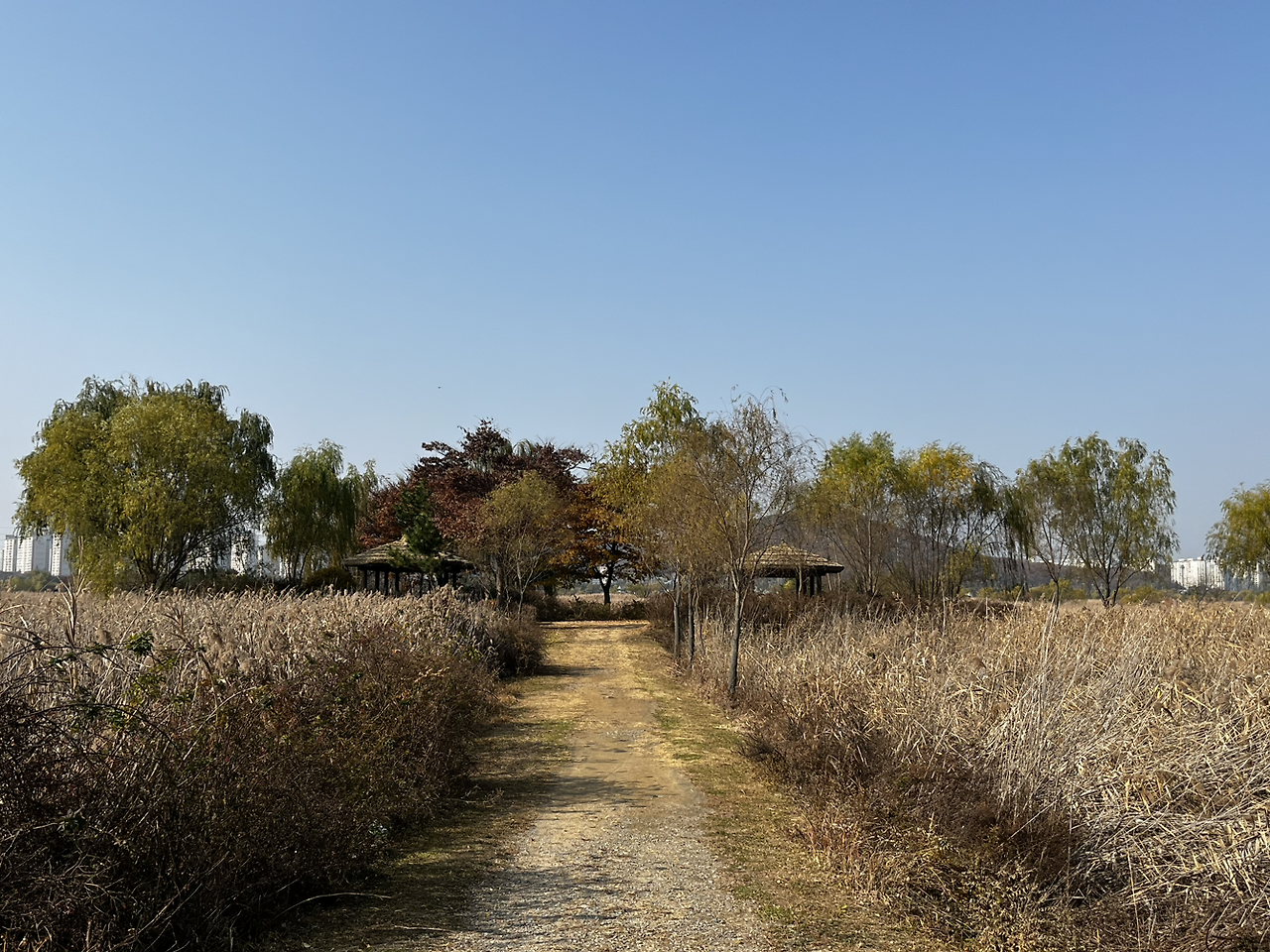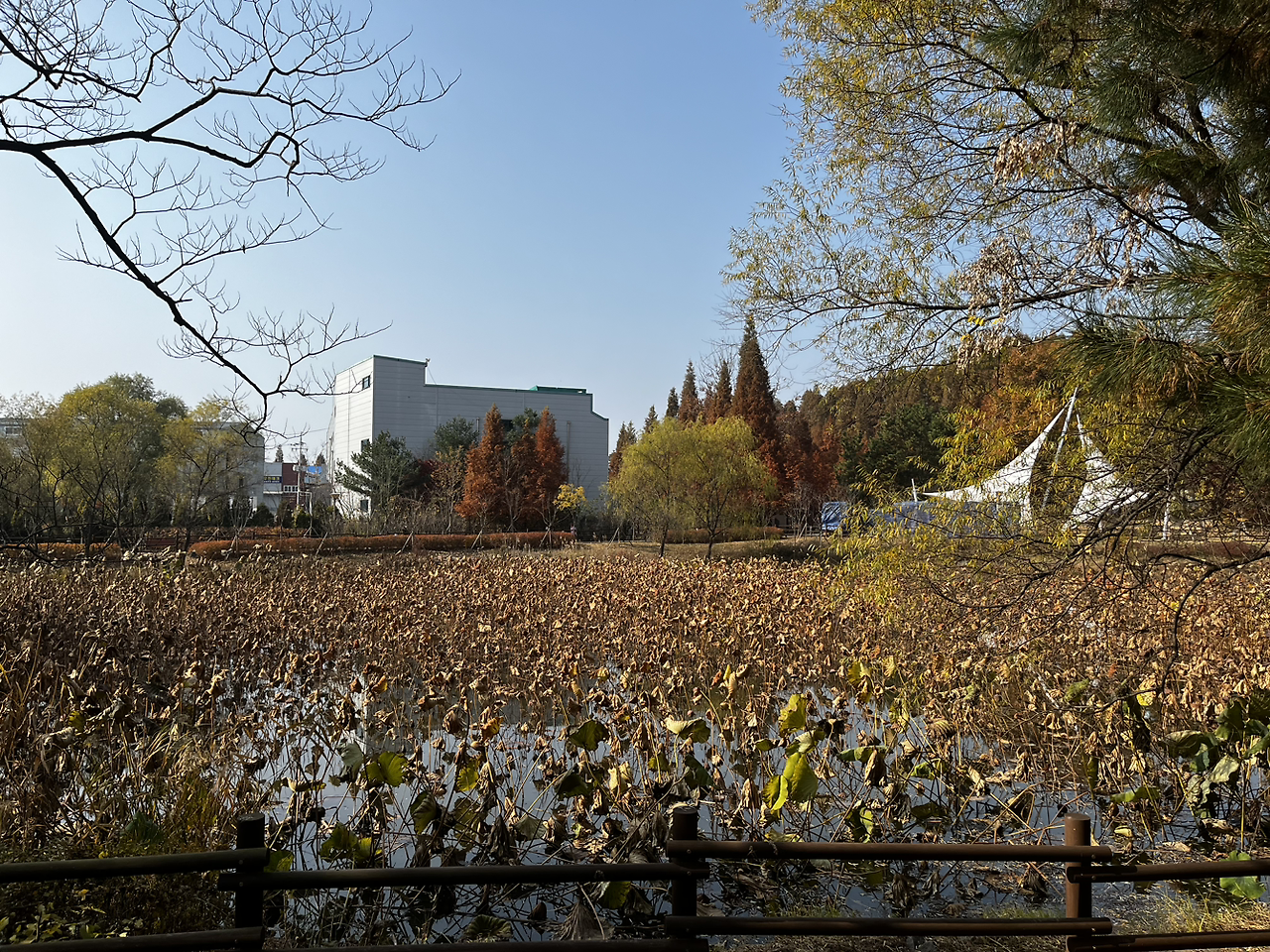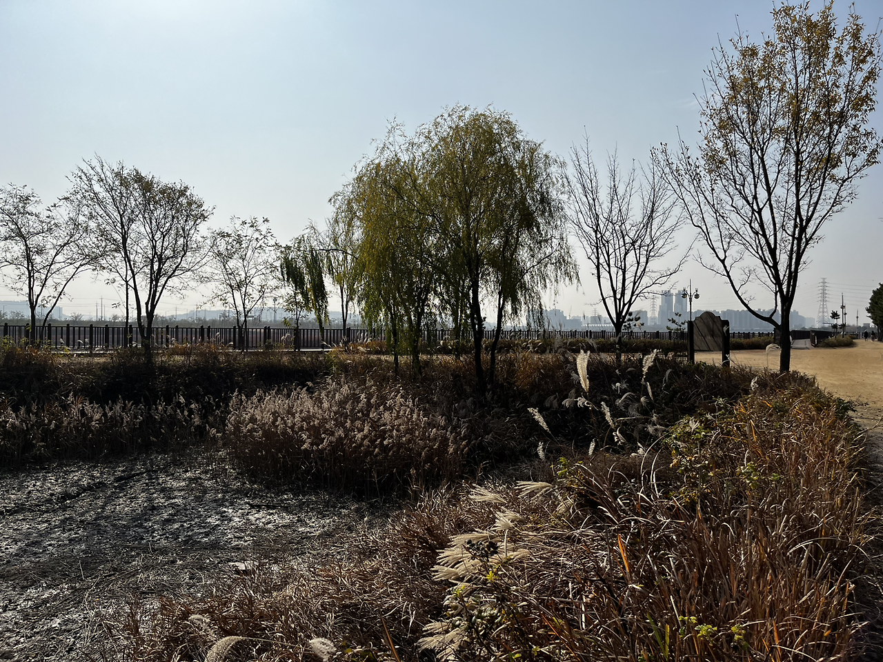 소래습지생태공원 동문에 다다르자 공원에는 운동을 하러 온 사람들, 나들이를 나온 사람들이 많이 있었지만 분위기가 꽤나 스산하고 황량했었다. 이 분위기가 싫지 않았다. 나뭇잎이 바람에 날려 길에 많이 떨어져 있었고 밟으면서 바스락 거리는 느낌이 좋았다.