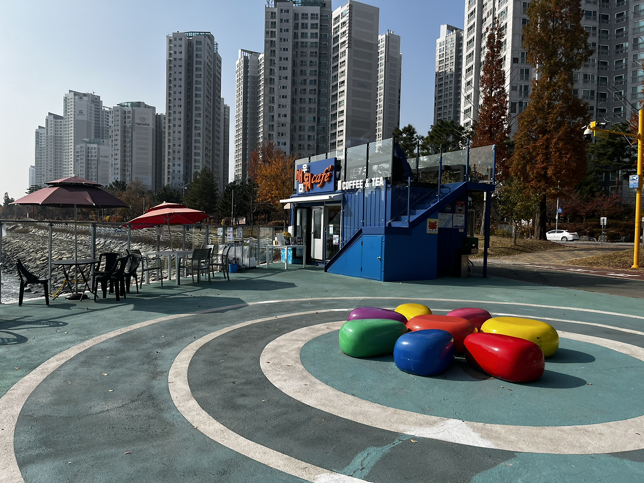 새우 타워에서 내려와 쭉 걸어 해넘이 전망대를 지나 이전에 남편과 아들 녀석과 연극을 보았던 소래 아트홀이 나왔었다. 반가웠다. 이전에 남편과 아들 녀석과 차 타고 지나갔을 때도 이곳을 걷고 싶었는데 시간이 없어 걷지 못했던 길이었다. 그때보다 단풍이 더 울긋불긋 물들어 길이 아름다웠다. 사진으로 담아봤지만 내가 느낀 아름다움이 잘 담기지 않아 눈으로 많이 담았었다.