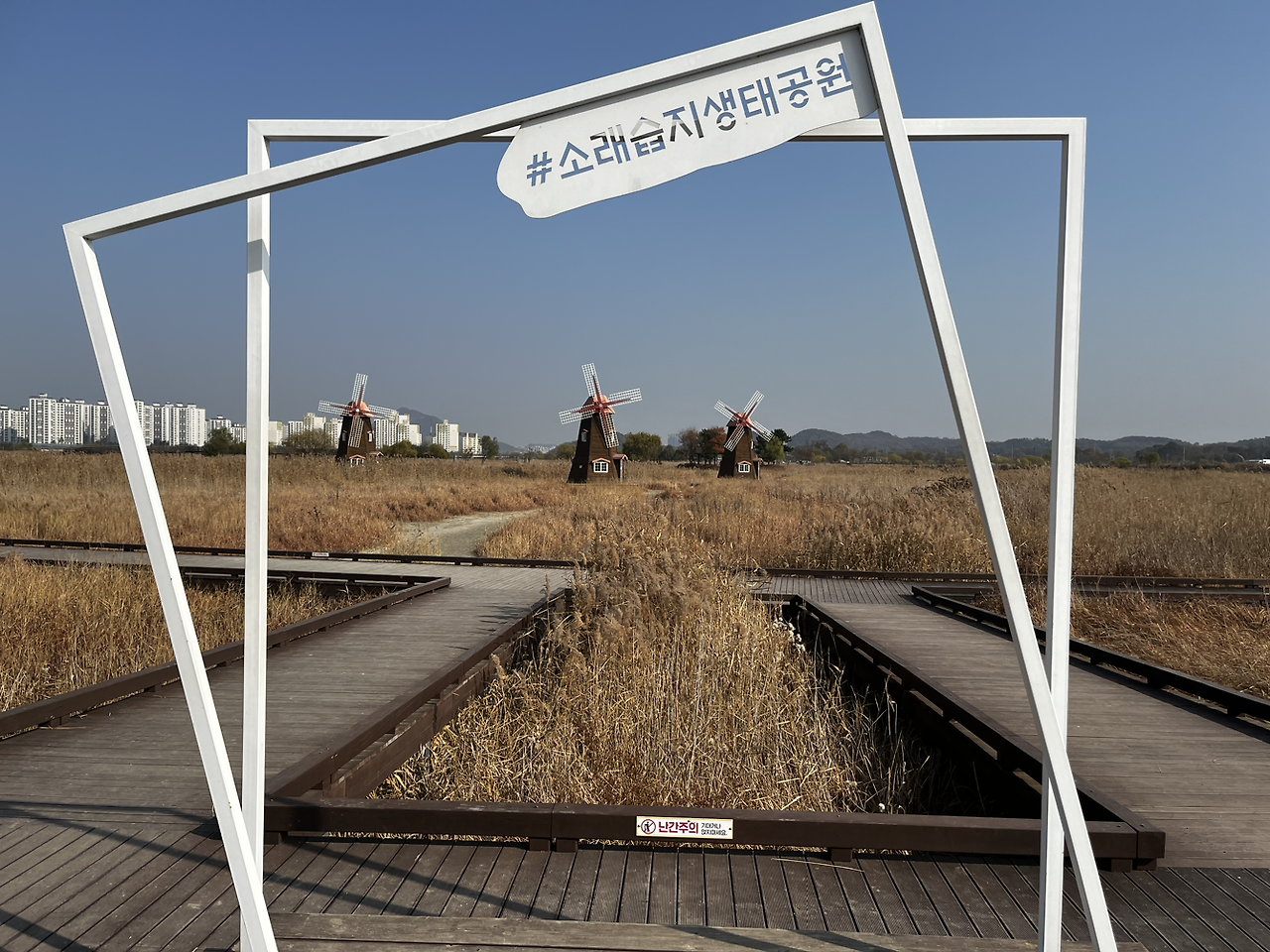 소래습지생태공원에 왔으니 3개의 풍차는 보고 가야지. 풍차를 보고 가면 둘레길 코스를 이탈하는 것이었지만, 그런 건 문제가 아니었다. 오히려 풍차를 보지 않고 갔다면 길을 걷는 내내 계속 후회로 남을 것 같았다. ‘약간 늦으면 어때?’라는 생각으로 풍차를 보러 갔었다.