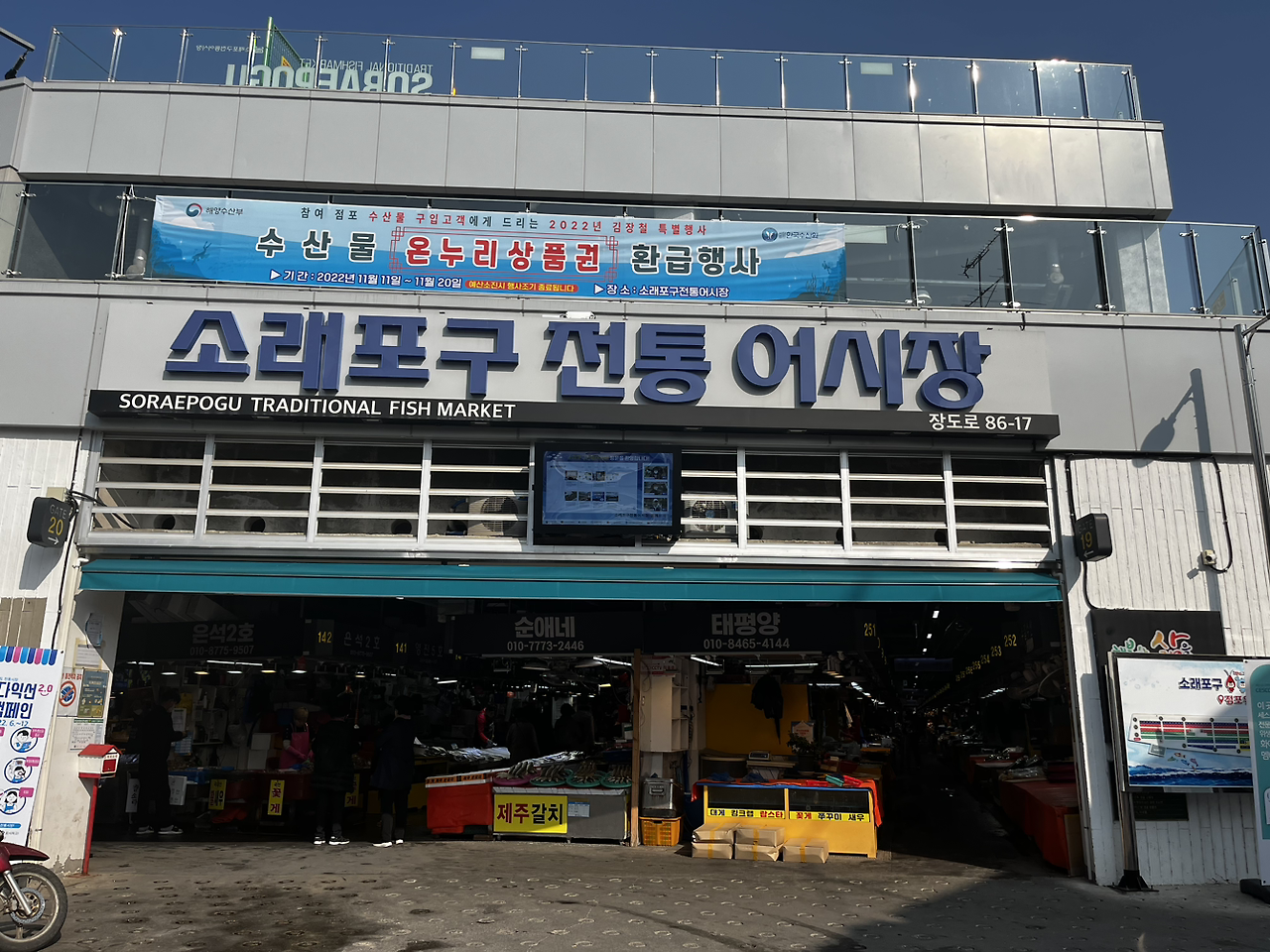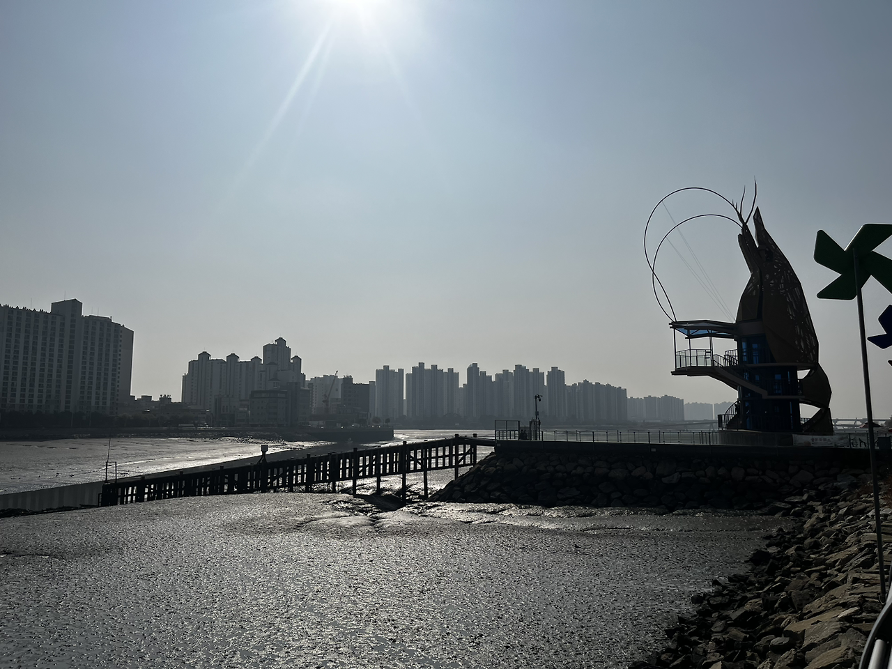 소래포구 전통 어시장을 도착하니 한창 김장철이라 그런지 젓갈을 사기 위한 손님들이 활기를 띄었다. 어시장의 활기를 느끼고 새우 타워를 향해 걸었다. 새우 타워는 먼발치에서도 한눈에 훤히 보였다. 이 새우 타워로 말하자면 랜드마크로 공을 들여 만들었다고 들었는데 그에 비해 구경 오는 사람이 별로 없다고 들었다. 그 이유가 생각보다 높이가 낮게 만들어져 전망이 별로 좋지 않아 인기가 없다고. 그래도 여기까지 왔는데 직접 올라가 봐야지. 직접 올라가 보니 그랬다. 전망이 낮은 게 많이 아쉬웠었다. 이래서 인기가 없는 거구나라고 새삼 실감을 했었다. 새우 타워를 올라가는 사람들과 최대한 혼잡하지 않게 하려는 의도 같았지만 내려오는 길 화살표가 헷갈리게 되어있어 우왕좌왕했었다.