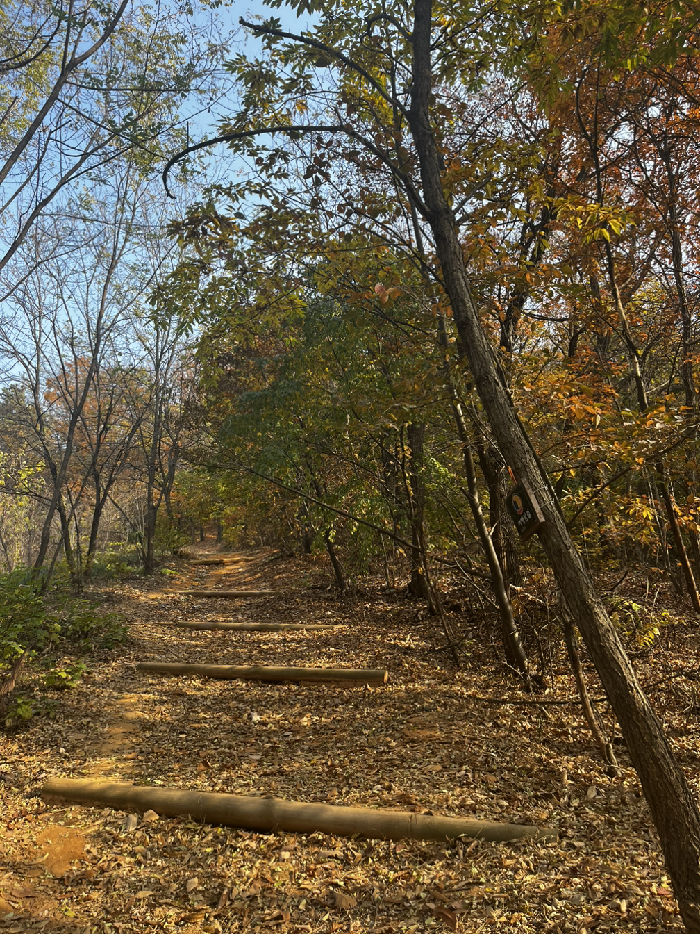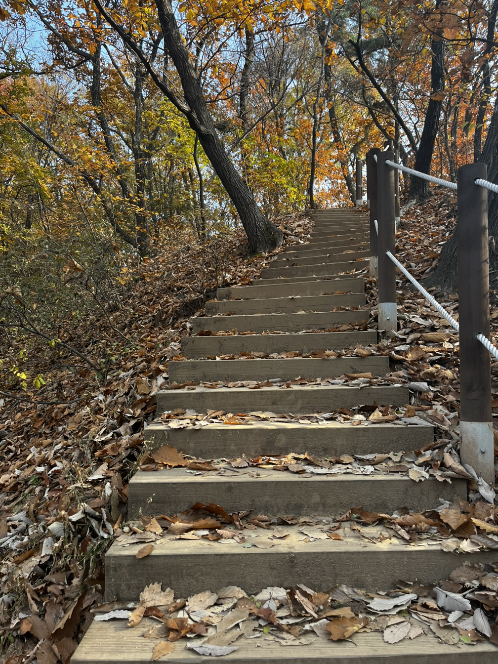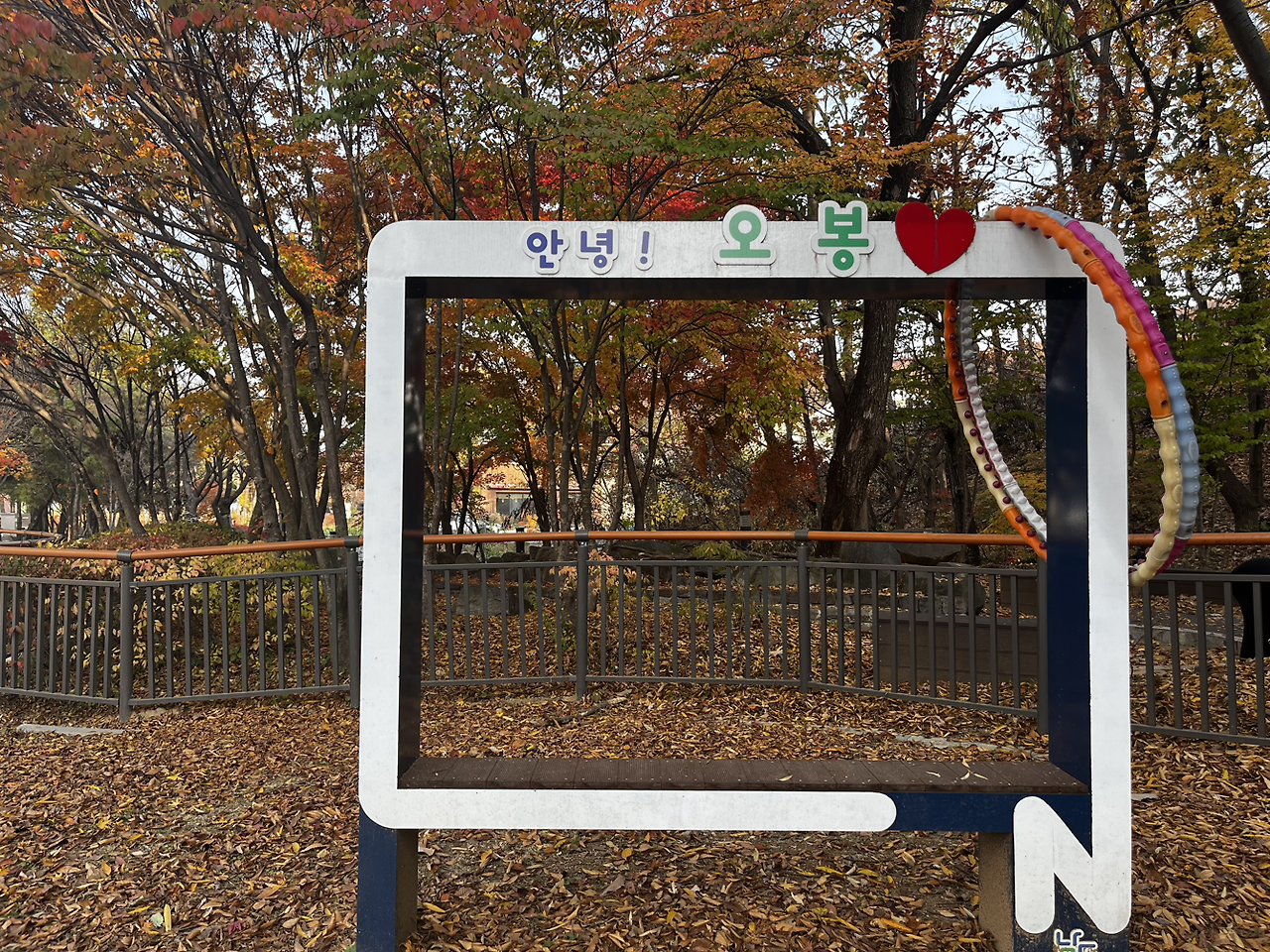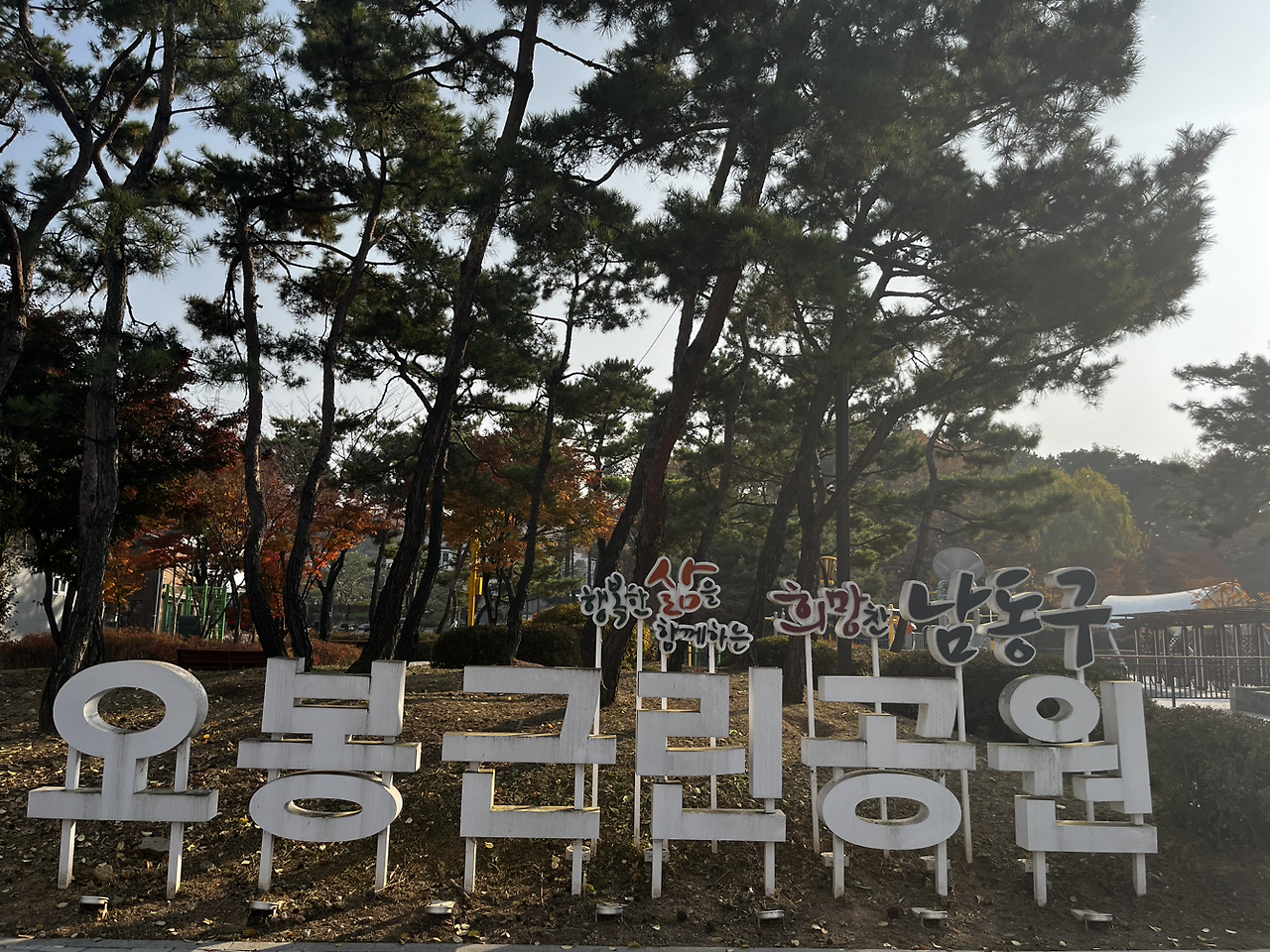 오봉산까지 하산하면 오봉 근린공원이 나오는데 오봉 근린공원 앞에 남동 둘레길 4개의 코스의 마지막 스탬프를 찍는 곳이 보였다. 스탬프를 쾅 찍고 오봉 근린공원을 조금 걸었다. 오봉 근린공원에는 남녀노소 각기 모여 놀고 있었다. 오봉 근린공원에 낙엽이 흐드러져있는 길이 참 예뻤다.