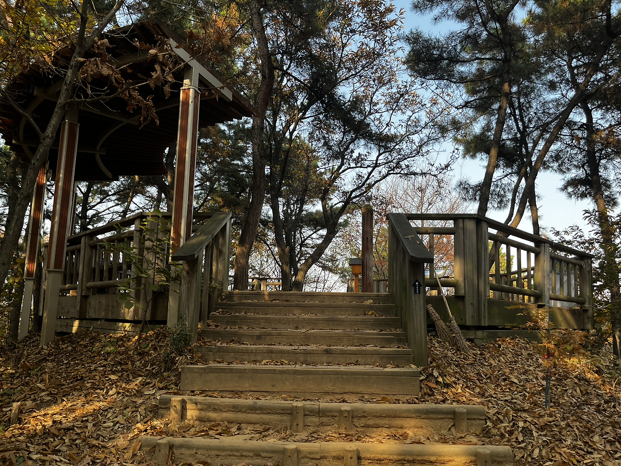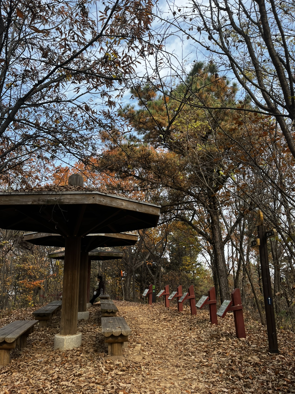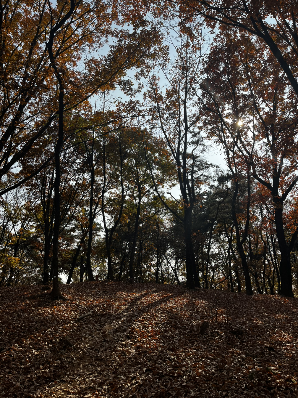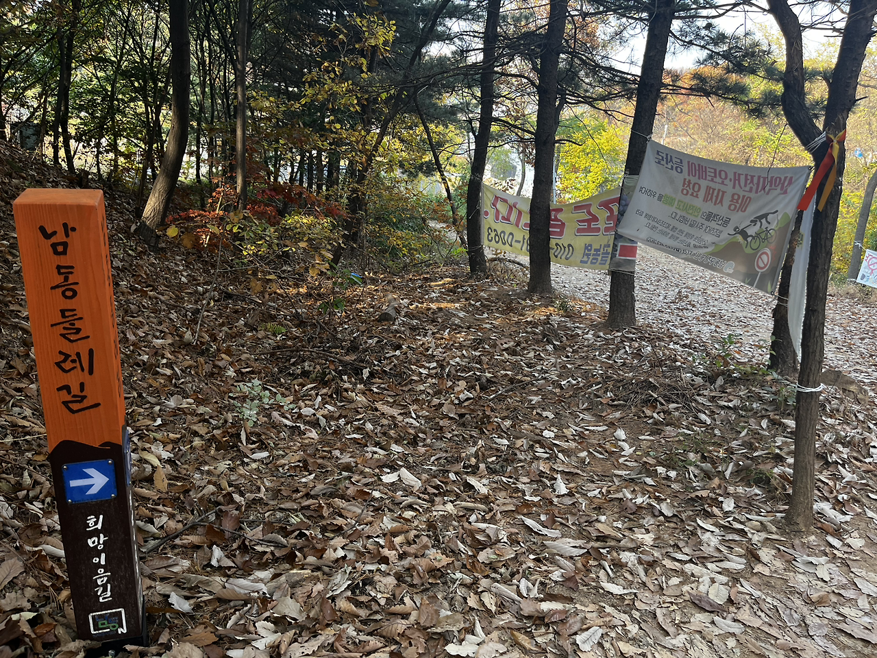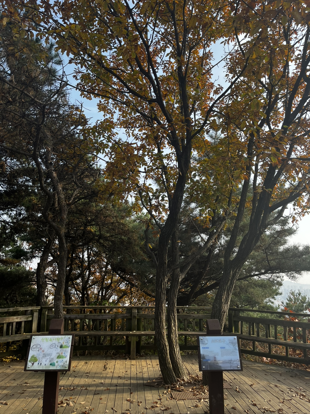 오봉산까지 하산하면 오봉 근린공원이 나오는데 오봉 근린공원 앞에 남동 둘레길 4개의 코스의 마지막 스탬프를 찍는 곳이 보였다. 스탬프를 쾅 찍고 오봉 근린공원을 조금 걸었다. 오봉 근린공원에는 남녀노소 각기 모여 놀고 있었다. 오봉 근린공원에 낙엽이 흐드러져있는 길이 참 예뻤다.
