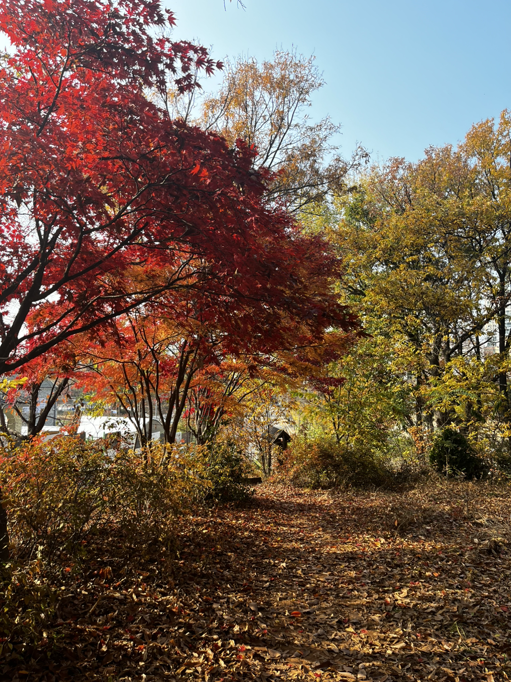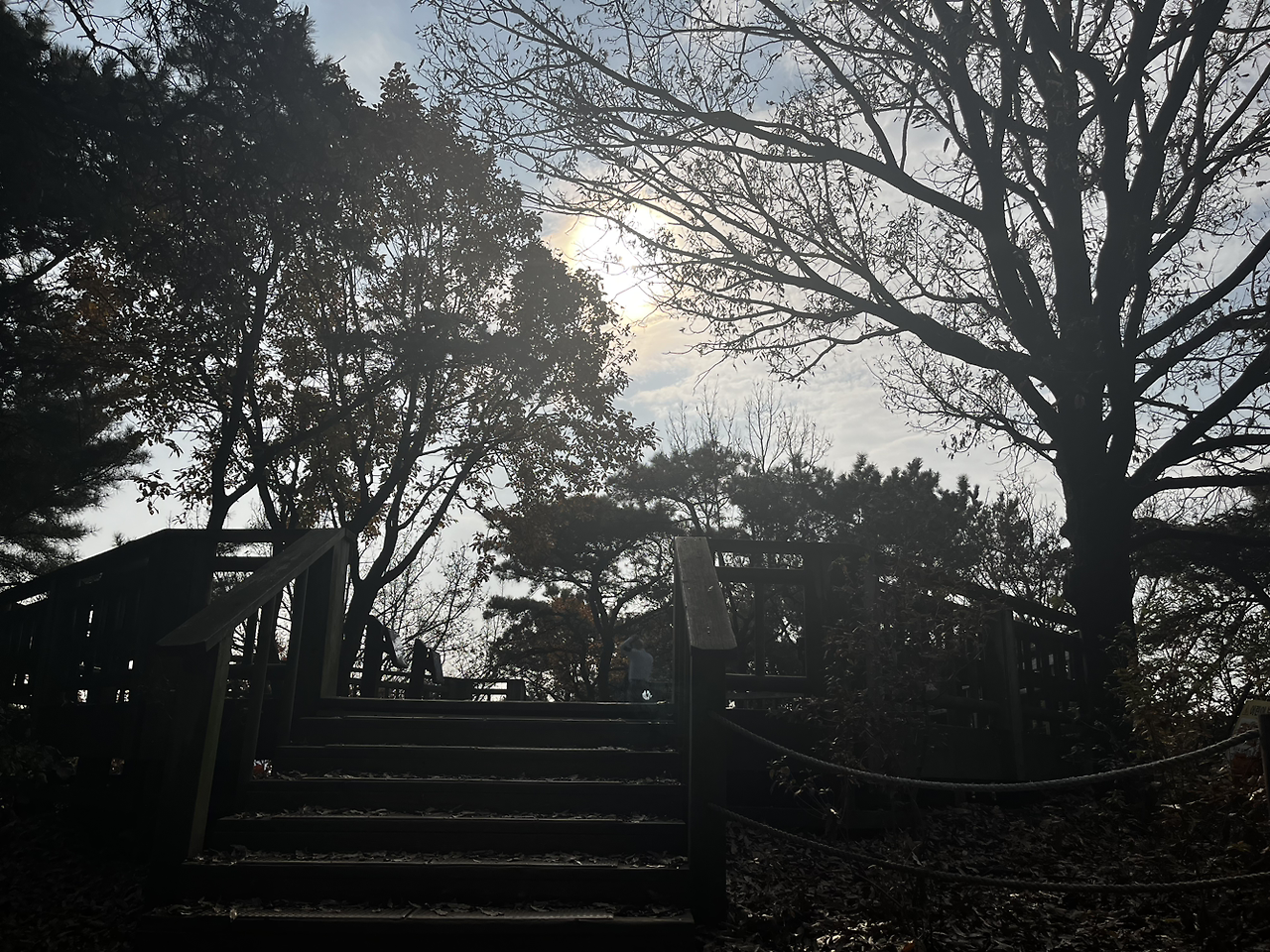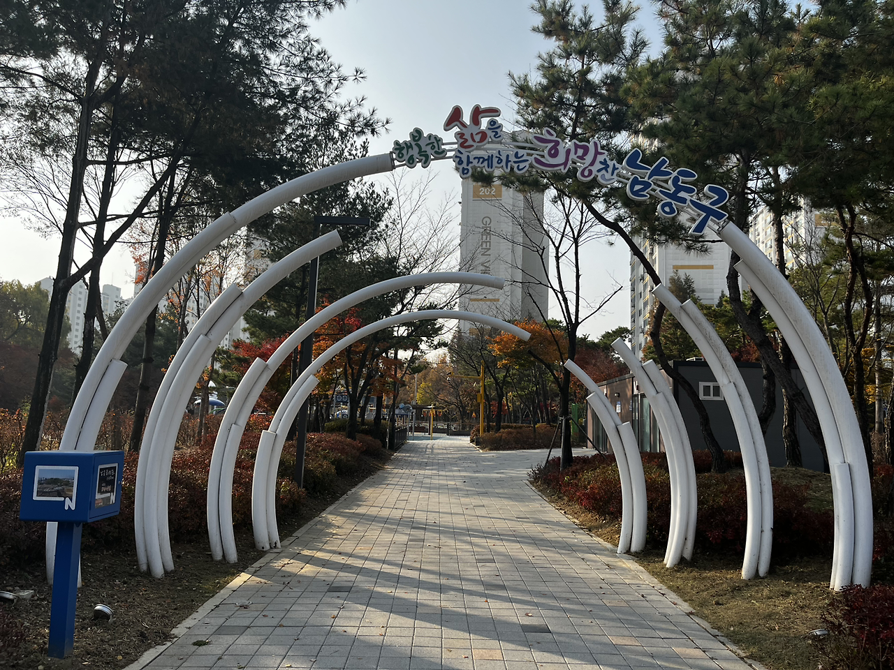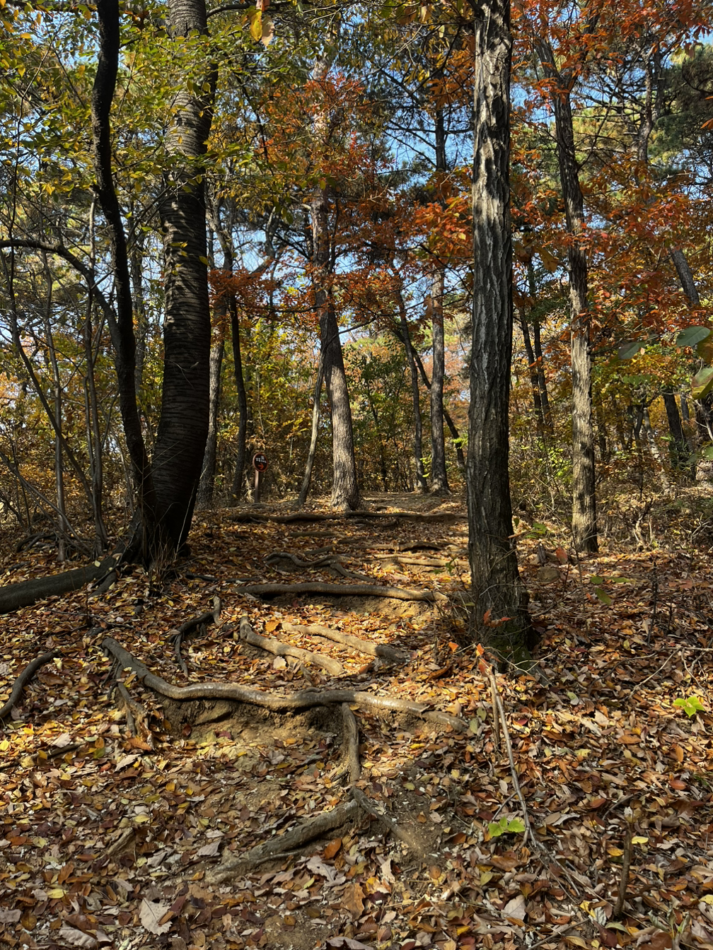 오봉산까지 하산하면 오봉 근린공원이 나오는데 오봉 근린공원 앞에 남동 둘레길 4개의 코스의 마지막 스탬프를 찍는 곳이 보였다. 스탬프를 쾅 찍고 오봉 근린공원을 조금 걸었다. 오봉 근린공원에는 남녀노소 각기 모여 놀고 있었다. 오봉 근린공원에 낙엽이 흐드러져있는 길이 참 예뻤다.