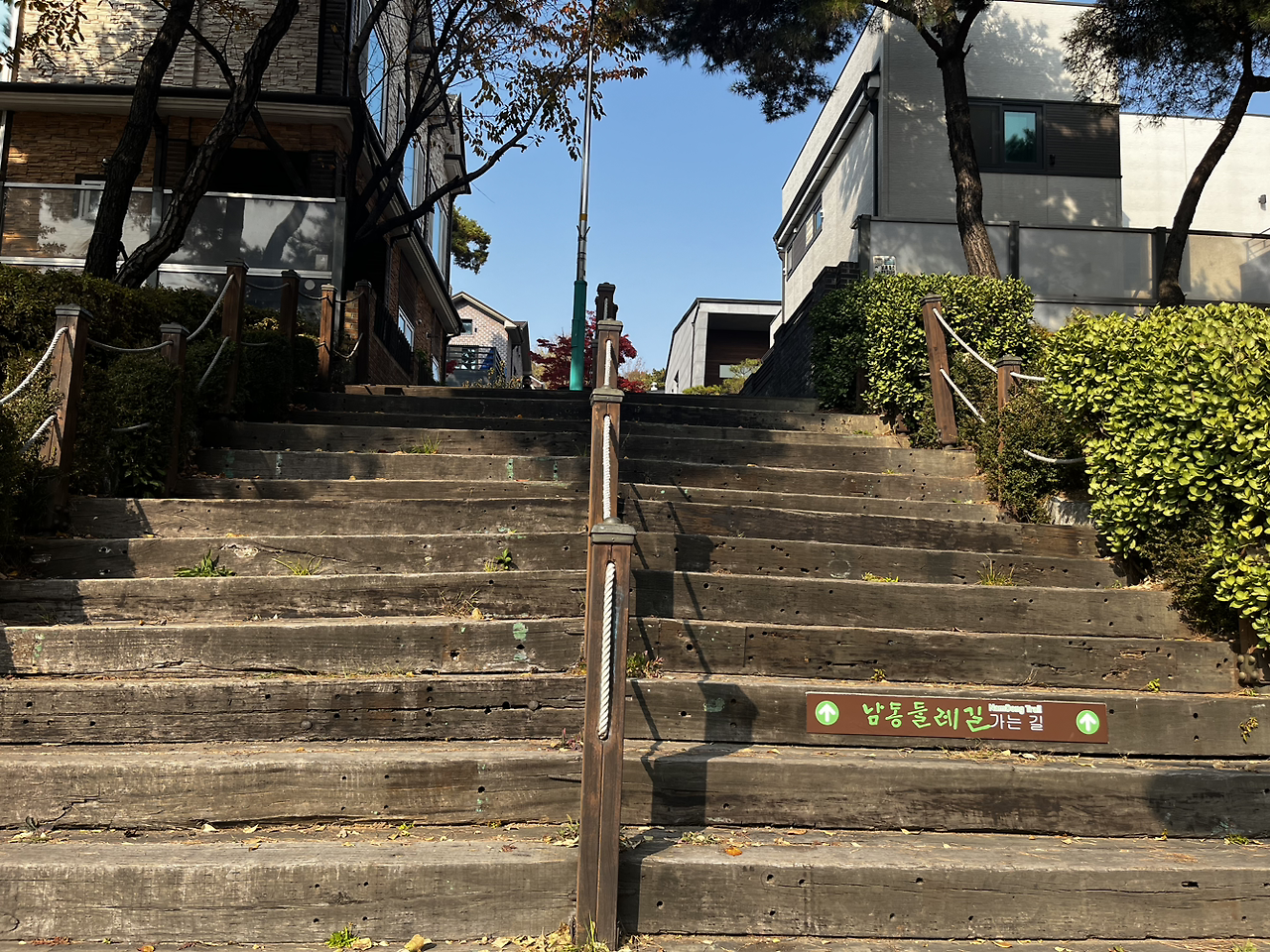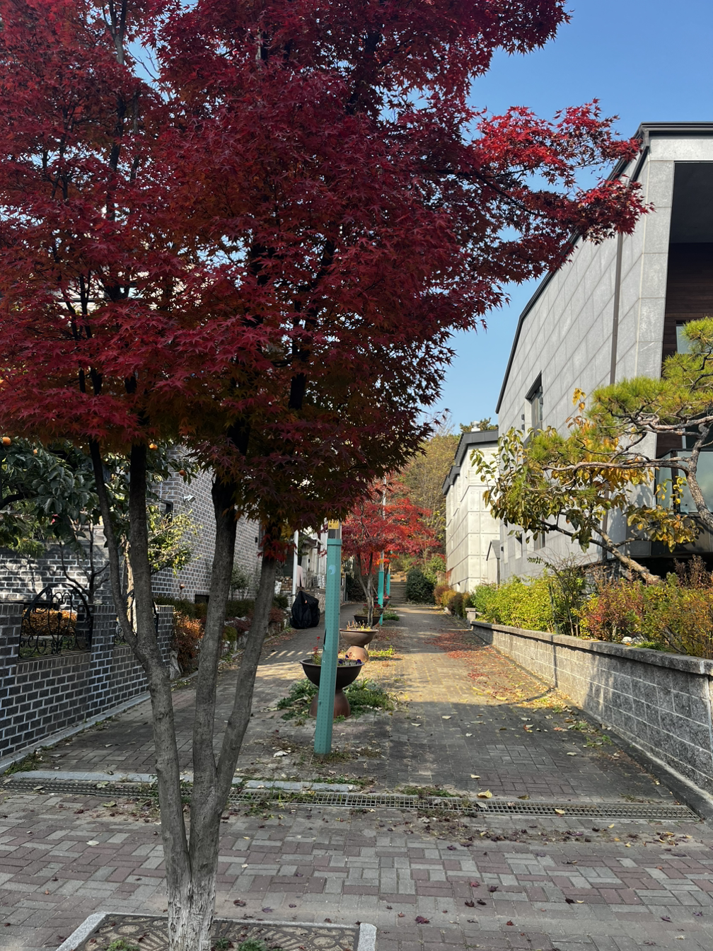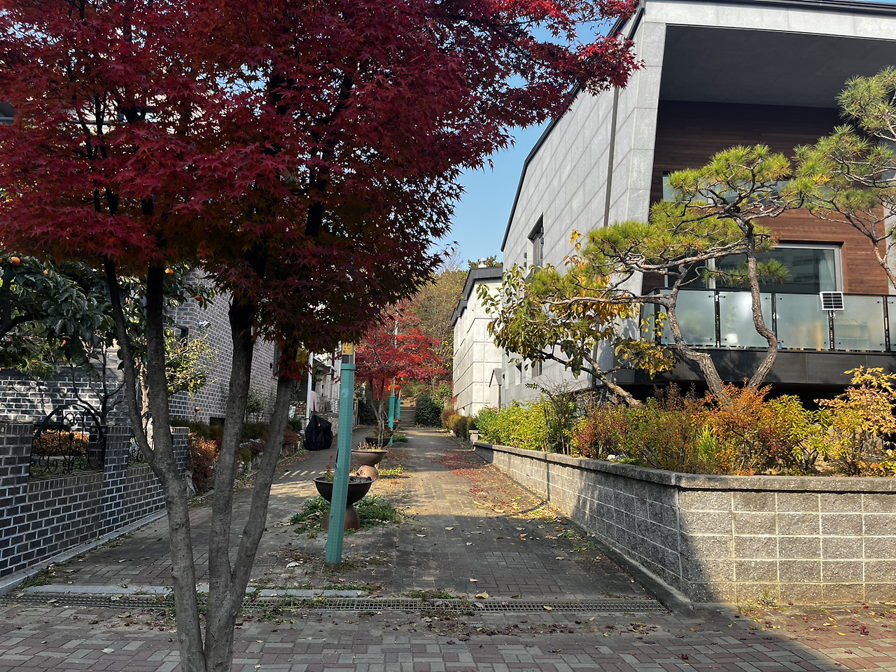 4코스는 인천의 논현동을 지나 산길을 걷는 코스였다. 길을 지나는데 주택단지와 그 길 사이 빨갛고 노랗게 물든 나뭇잎 가로수길이 예뻤다. 가끔 버스 타고 지나다니다 보면, 이 주택단지 길을 종종 지날 때가 있었는데 한적하고 예쁜 집들이 많아 나중에는 이런 예쁜 집에서 살고 싶다는 생각을 했었다.