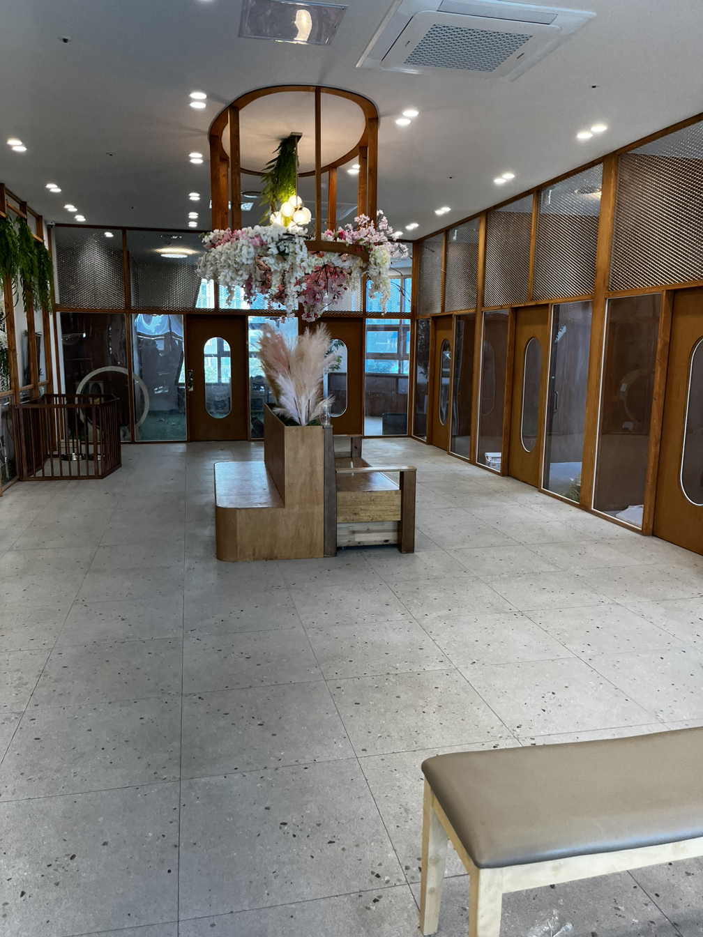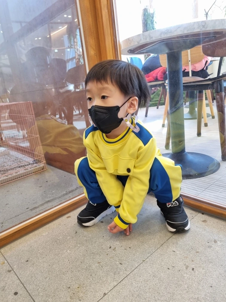 아들은 어린이집 친구들과 선생님과 함께 버스로 가고 부모님은 자차로 이동하는 방식이었다. 선생님께서 전날 하원하면서 다음날 오전 10시 반까지 와달라고 하셨어서 그에 맞게 나갈 채비를 했다. 나는 가까운 거리는 웬만하면 걸어가는 걸 좋아해서 걸어갔었다. 지도를 보고 가니 혼자 가도 쉽게 찾을 수 있었다. 일찍 도착을 해서 근처 공원에서 산책을 좀 하다가 아들의 어린이집 버스가 도착한 걸 보고 나도 들어갔다. 카페는 동물 카페인데 생각보다 깨끗했다.