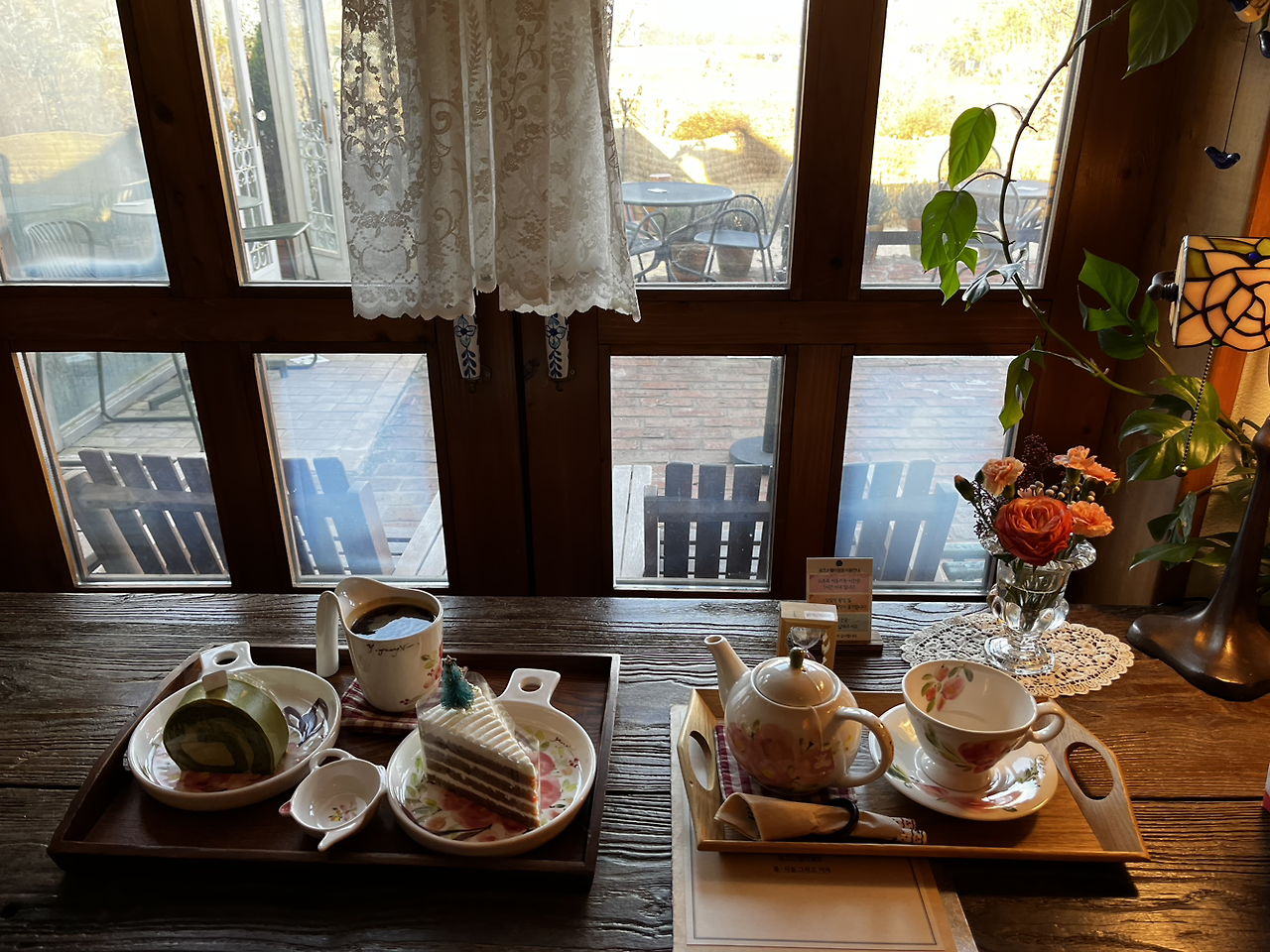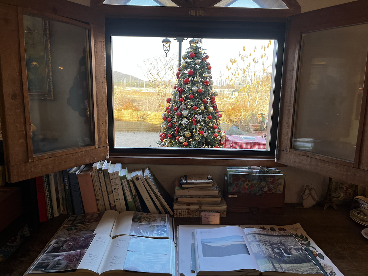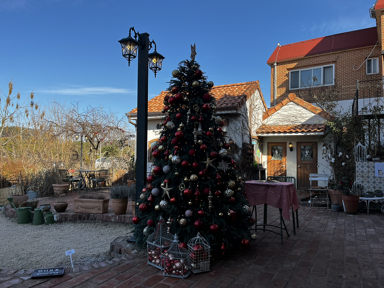 내가 기억력이 많이 없어졌는데 사람 얼굴은 그래도 참 잊어버리지 않고 잘 기억한다. 몇 년 전 방문했을 때 그 사장님 그대로셨다. 카페 문이 스르르 열리고 카페를 들어서자 첫 방문했을 때의 모습이 고스란히 남아있었어서 반가웠다. 게다가 이번에는 크리스마스트리와 그 외 장식까지 더해 원래 동화 같은 공간이었지만 더더욱 동화책 속에 빨려 들어갈 것처럼 아름다웠다.