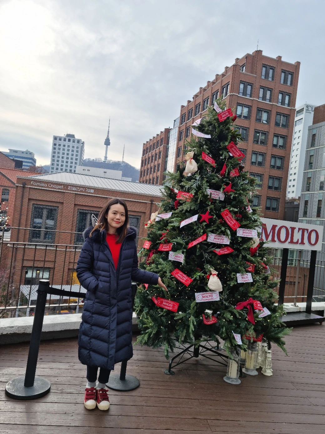 사람들이 붐비기 전 크리스마스트리 앞 마련된 포토존에서 사진부터 찍었다. 그래도 다행히 평일이고 이른 시간이라 그랬어서인지 걱정했던 거에 비해 사람이 많이 붐비지는 않았었다.