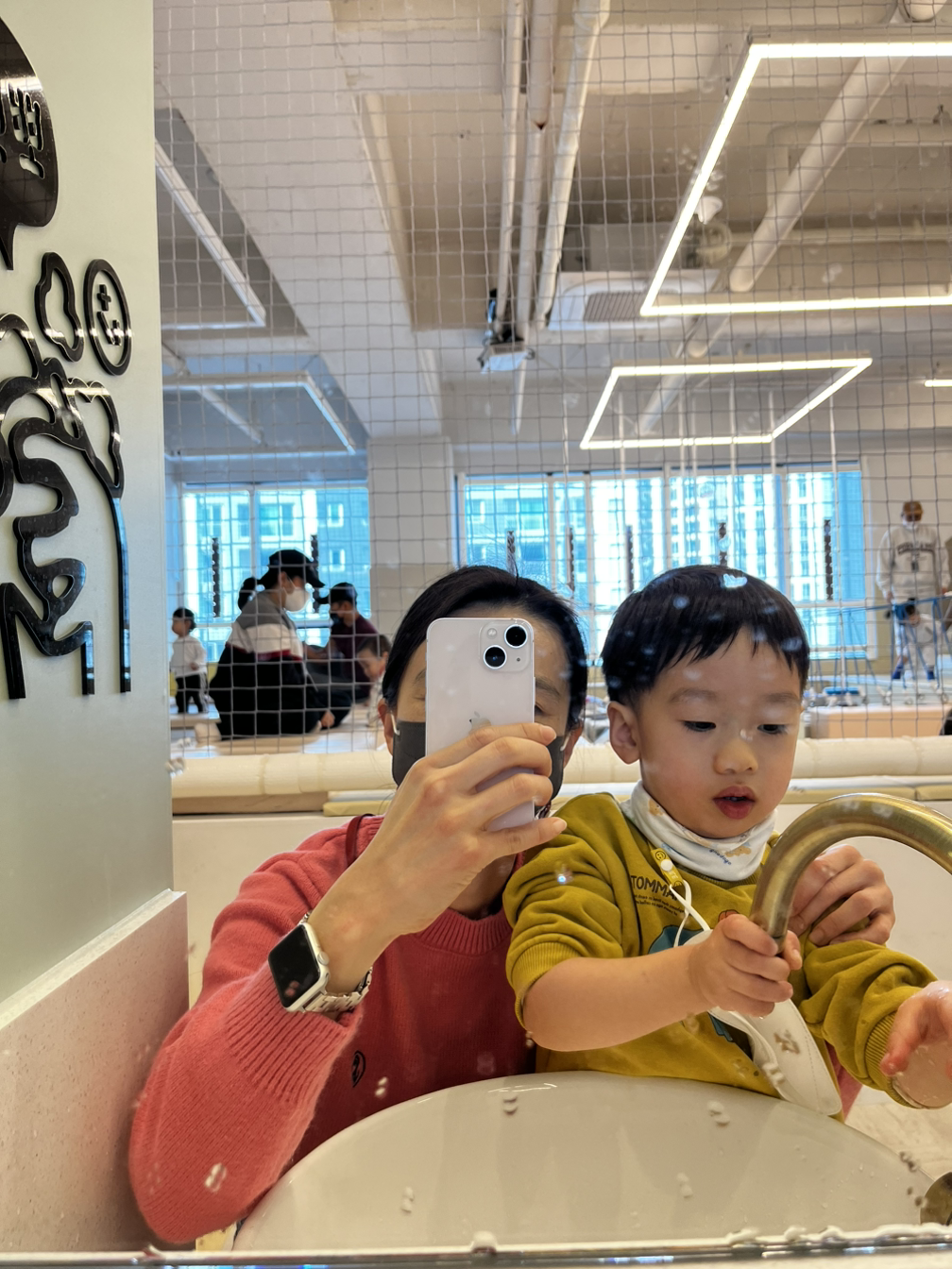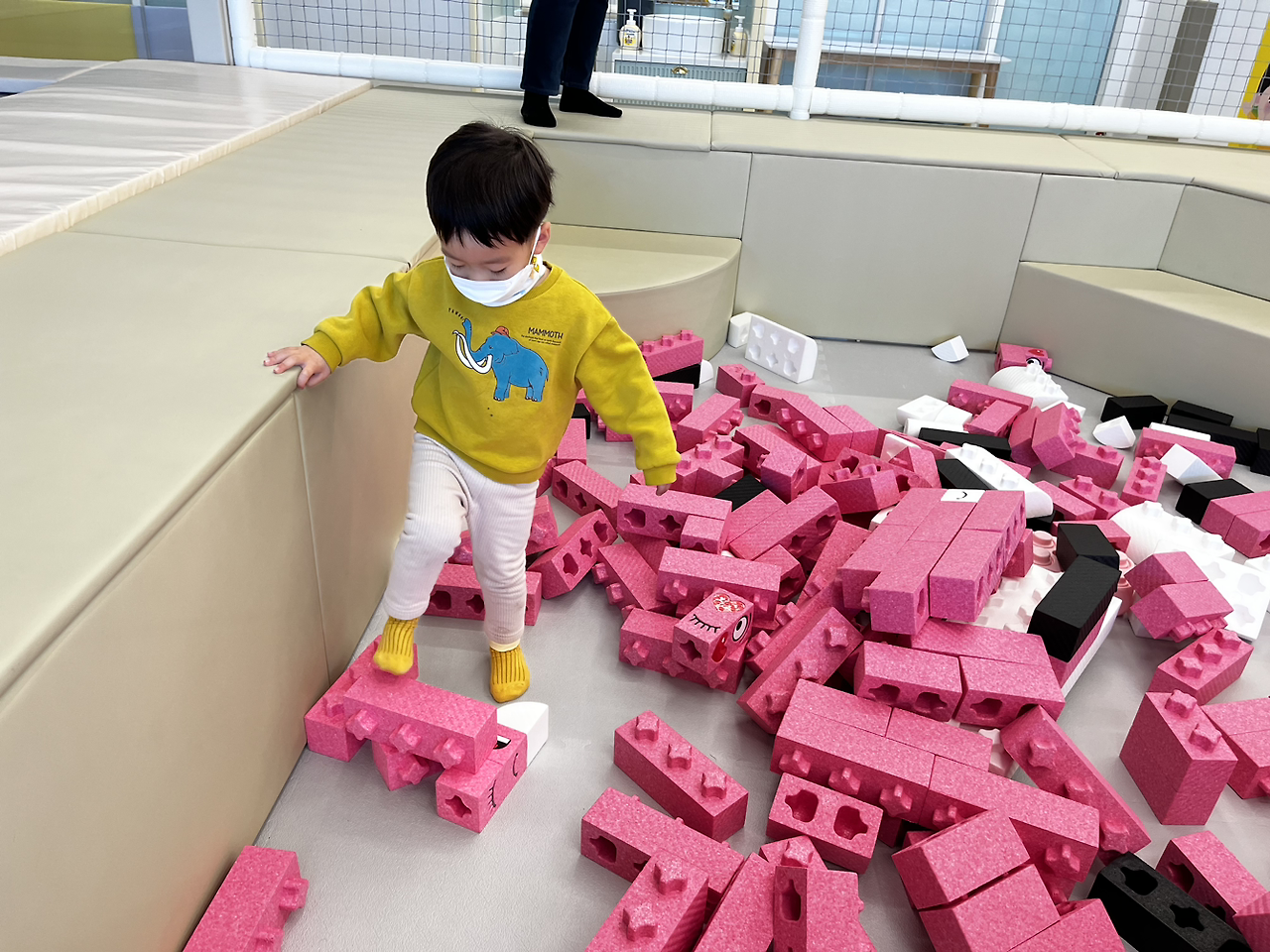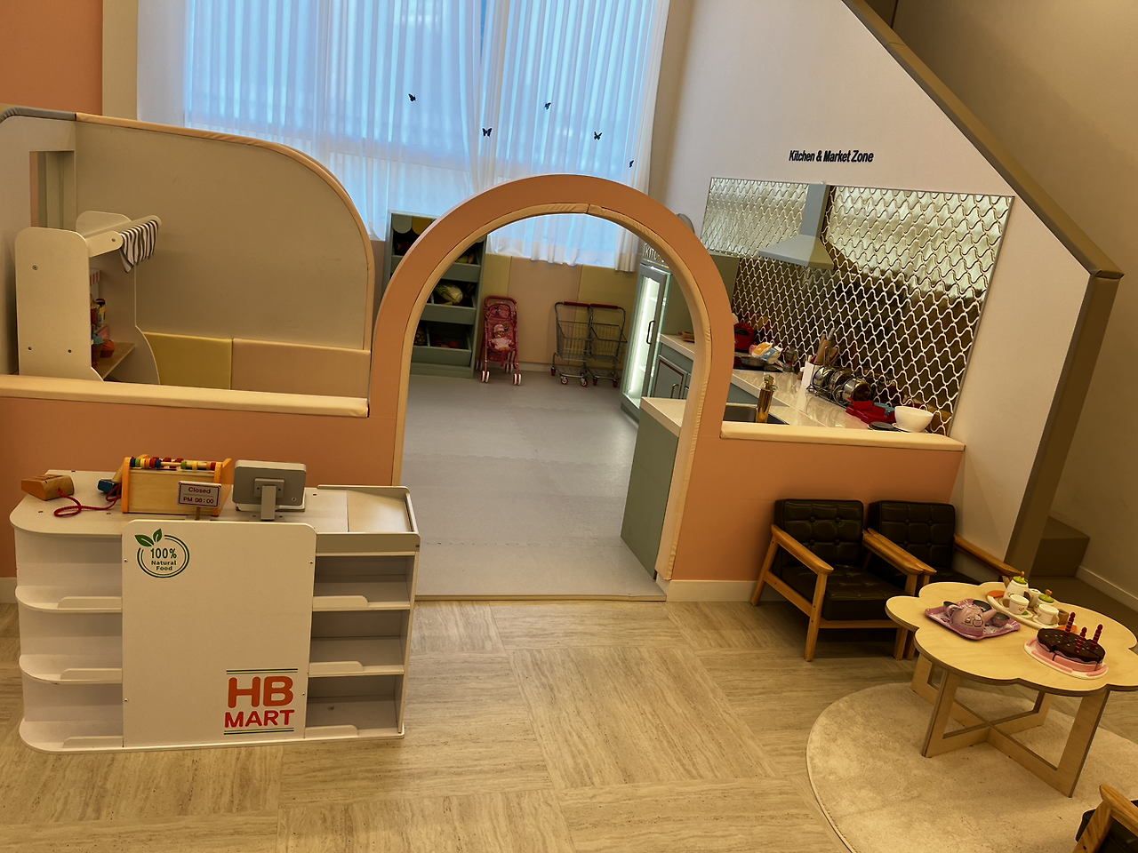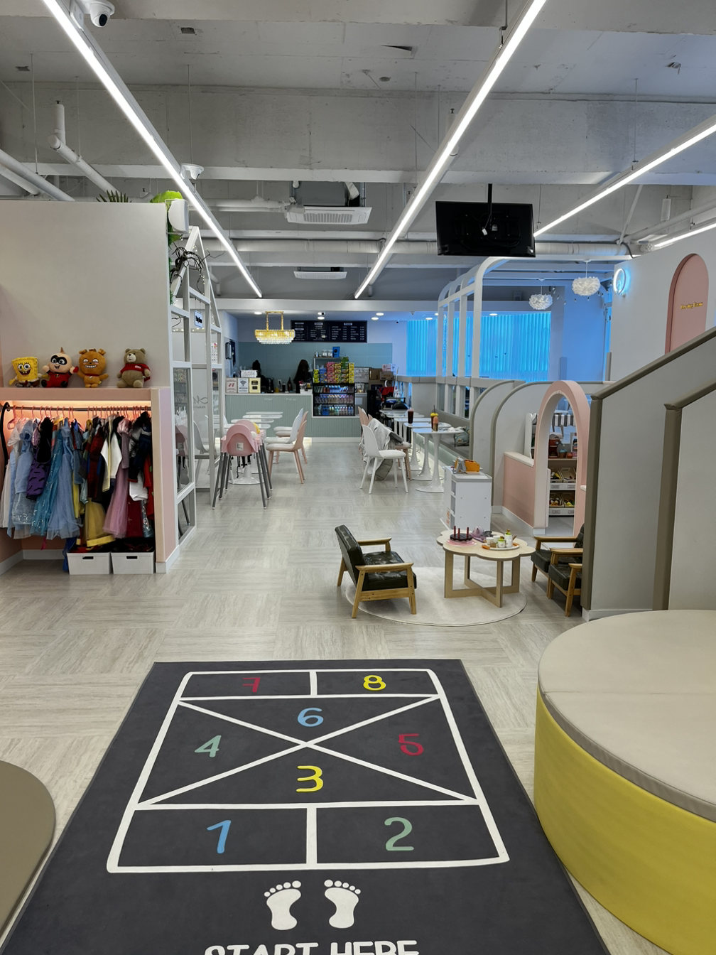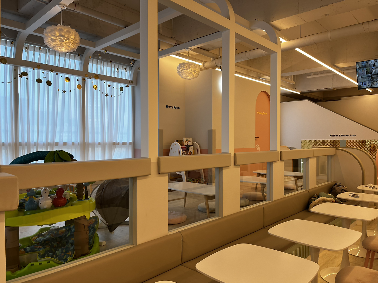 동네 엄마들로부터 이런 말을 들어서인지 한번 가보고는 싶었는데 그동안 선뜻 나서질 못했었다. 주말에는 10시에 오픈을 하는데 아침 일찍 서둘러서 오픈런을 했다. 오픈시간에 맞춰 도착을 하니 다행히 사람들이 그렇게 많진 않았다. 역시 부지런히 움직인 보람이 있었다. 선불결제시스템이라 먼저 계산을 하고 보호자는 음료가 무료여서 커피를 주문했다. 그렇게 계산하고 주문하는 사이 아들 녀석은 뭐가 그렇게 급했는지 이미 안으로 들어가서 놀고 있었다. 카페 내부를 찬찬히 둘러보고 자리를 잡은 후 아들 녀석과 남편이 있는 곳으로 갔다.