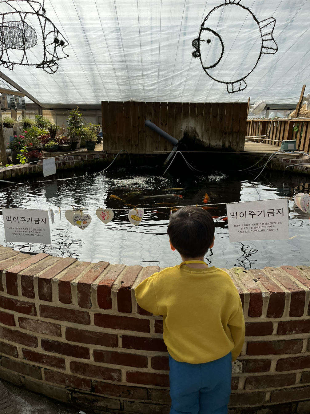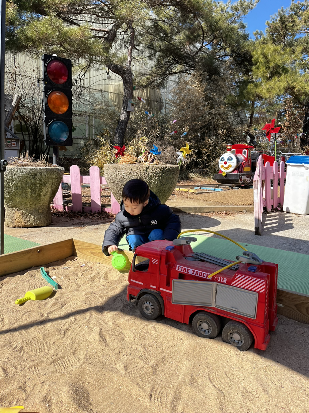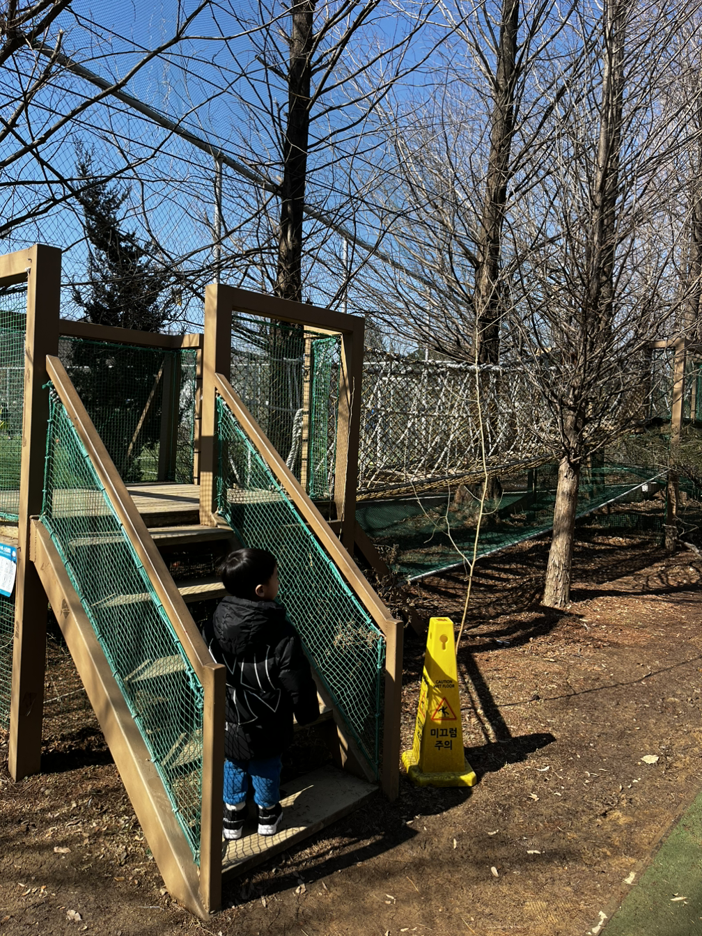 그 밖에도 점심을 먹고 난 후 잉어 구경을 했는데 물 좋아하는 아들 한동안 잉어전시장에서 잉어만 보겠다고 하는 통에 다른 것도 체험해 보자며 나오게 하는데 꽤나 진땀을 뺐었다. 애니메이션 영화도 보고 날씨가 따뜻해서 야외 장애물 숲 놀이터에서 장애물 건너기 체험도 했다. 많이 겁을 내간 했었지만 그래도 하려고 도전하는 모습이 대견하고 기특해서 도와주었다. 전통놀이 체험도 하고 모래놀이도 하면서 비록 눈썰매장 때문에 왔었지만 다른 체험들을 즐기며 모처럼만에 야외에서 시간 가는 줄 모르고 놀고 왔었다.