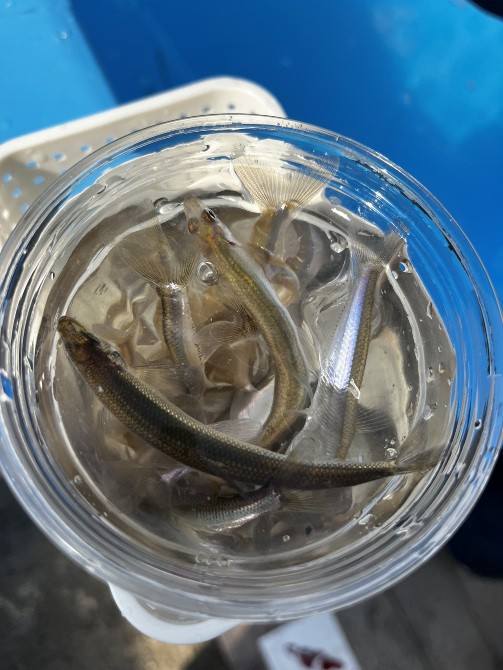 다행인지 빙어잡이체험 부스에는 우리밖에 없었다. 빙어잡이체험은 1인당 10분에 5000원이었다. 체험비를 내면 물이 담긴 페트컵을 하나 주시는데 그 컵에 그물로 잡아 올린 빙어를 넣으면 된다고 하셨다. 분명 시간이 다 되면 알려주신다고 했었는데 꽤나 시간이 흐른 것 같은데도 말이 없으셨다. 페트컵에 빙어가 꽉 차서 팔딱 거리며 빠져나갈 정도였다. 그런데도 말이 없으셔서 아직도 10분이 안된 건지 여쭤보았다. 아들 녀석이 빙어를 잡진 못했지만 옆에서 그물을 들고 휘휘 저으며 재밌게 즐기는 걸 보셨는지 체험 시간은 이미 많이 흘렀지만 체험하는 사람이 없어서 더 하라고 일부러 이야기를 안 했다고 하셨다. 감사했다.