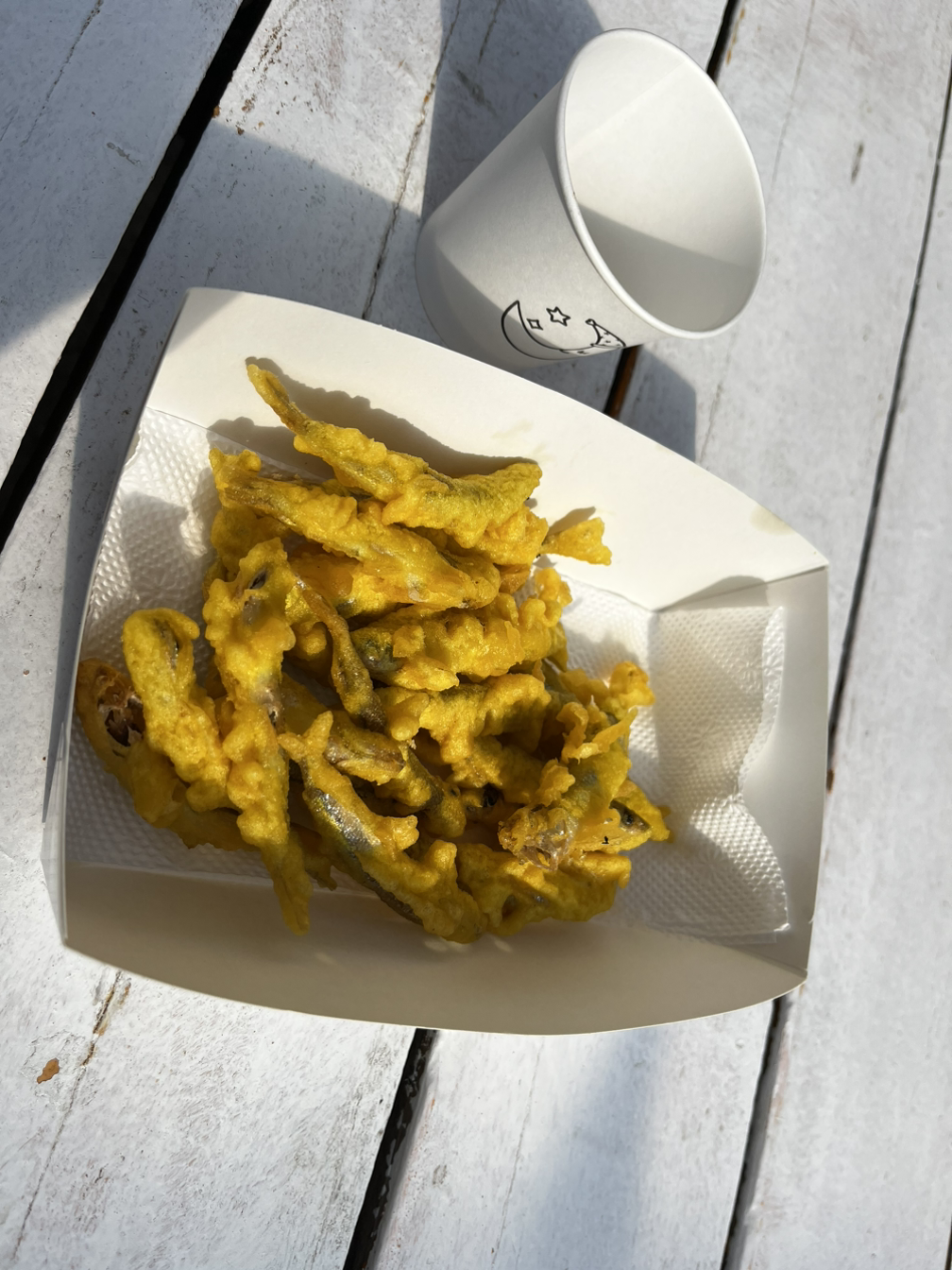 약속된 시간보다 많이 체험을 했는데도 불구하고 빙어잡이체험을 그만하자고 하니 그물을 잡고 물놀이를 하던 아들 녀석이 많이 아쉬워했었다. 아들 녀석의 포즈는 제법 낚시꾼 같았었는데. 체험해서 잡은 빙어를 식당에 가져다주면 3천 원을 내고 빙어튀김을 맛볼 수 있었다. 내가 잡은 빙어로 튀김이라니. 기대를 하고 맛본 빙어튀김은 튀김옷이 좀 눅눅했던 게 아쉬웠다.