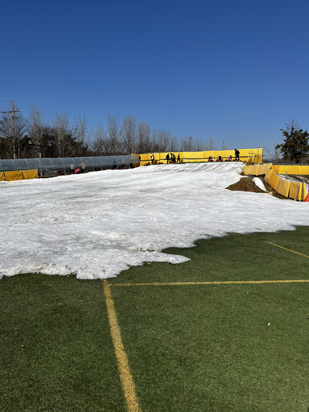 이전부터 가고 싶었지만 아들 녀석의 감기몸살기운으로 야외활동을 자제하고 있었다. 그러다가 겨울 시즌이 거의 끝나가고 눈썰매장 운영의 마지막날이 되었다. 이대로는 안 되겠다 싶어 서둘러 매표하자마자 다른 곳은 제처 두고 눈썰매장부터 달려갔다. 혹시라도 마지막이라 사람이 많지 않을까 우려되는 마음이었다.