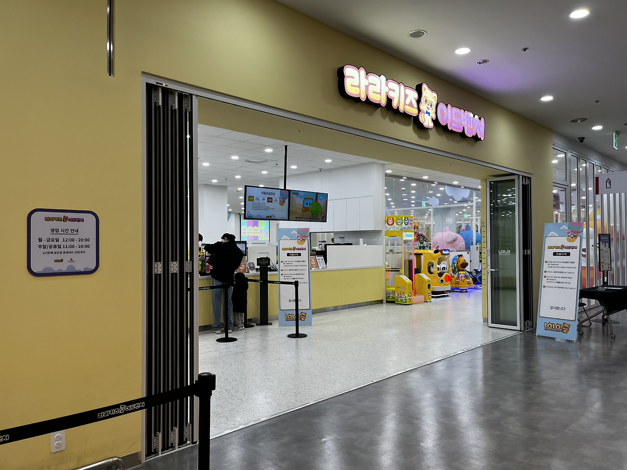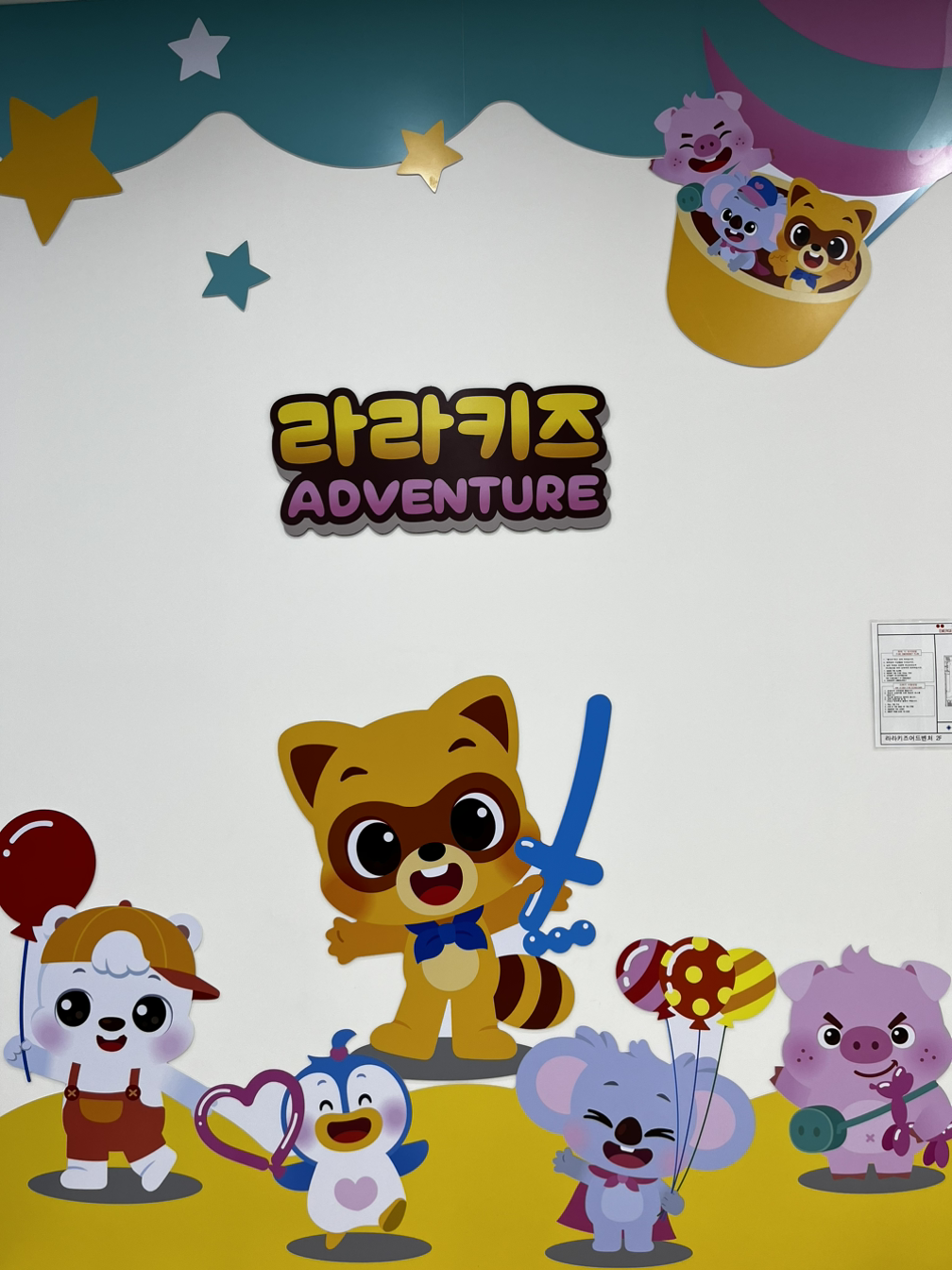 라라키즈어드벤처는 롯데마트 안에 있었는데 롯데월드에서 자체적으로 운영하는 키즈카페라고 되어있었다. 그래서 그런지 어디선가 본 듯한 낯설지 않은 캐릭터들이 눈길을 사로잡았었고, 시설도 깨끗했다. 오픈시간에 맞춰 도착했는데 사람이 꽤나 붐볐었다.
