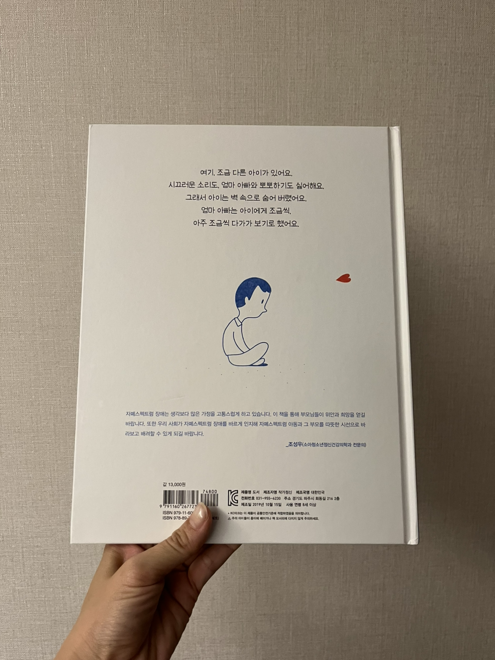 이 책처럼 나의 간절한 기다림과 피나는 노력을 통해 마치 벽에 있는 것처럼 여러 사람들과 소통을 하지 못해 힘든 아들 녀석이 하루빨리 세상에 한걸음 내딛고 더 행복해지기를. 오늘도 소망한다.