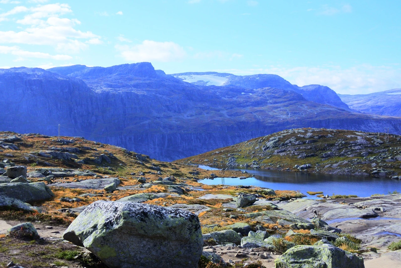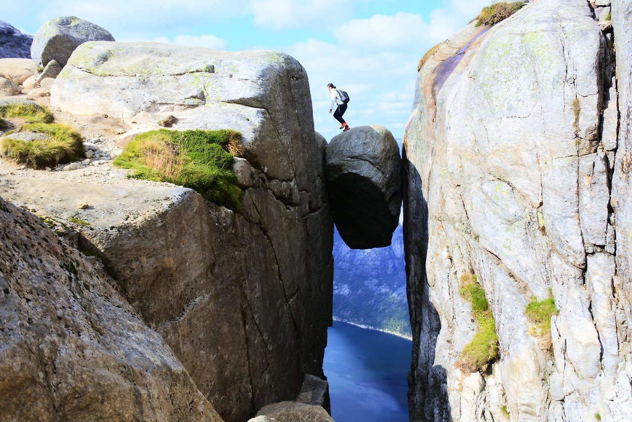 세 번째로는 난이도 상이라고 알려진 대망의 트롤퉁가만을 남겨두고 있었다. 트롤퉁가는 왕복 28km의 긴 트레킹코스를 자랑하기에 아침 일찍부터 출발해야 했다. 우리도 새벽 다섯 시에 일어나 간단히 아침을 먹고 출발했다. 아무래도 난이도 상이기도 하고, 왕복 28km의 긴 트레킹코스는 처음이었던지라 페이스를 조절해 줄 누군가 필요했다. 그런 우리는 현지가이드와 몇 명의 친구들과 함께 트롤퉁가원정대를 꾸렸다. 그래도 쉐락볼튼과 프레이케스톨렌으로 연습을 해서 그런가? 나는 트롤퉁가는 갈만했다. 왜 난이도가 상이라고 하는지 이해가 안 될 정도였다. 그런데 긴 호흡을 함께해야 하는 여정이었기에 트롤퉁가원정대는 가이드의 지휘로 몇 명이 아웃되었다. 그중에는 엄마도 포함되었다. 가이드에게 안 되는 영어로 중얼거리면서 “엄마는 내가 책임지겠다, 함께 하겠다”라고 이야기했었지만 사실 엄마 또한 많이 힘들어서 포기하고 싶어 하셨다. 함께 오르지 못할 거였다면 ’다른 사람들이 먼저 내려갈 때 따라 보낼걸 ‘ 괜히 내 욕심에 엄마를 더 힘들게 해 드렸다. 엄마를 혼자 보내기 불안했었다. 그렇지만 엄마는 또 엄마몫까지 잘 다녀오라며 혼자 내려가셨다. 쉐락볼튼 때는 엄마가 그 자리에 계셨을 때 하산하며 만날 수 있었지만 트롤퉁가에서는 만약 엄마가 그 자리에 계셨다면 결과적으로 만날 수 없었다. 우리는 트롤퉁가에서 하산을 올라왔던 길과 다른 길로 했었기 때문에. 나중에 들어보니 혼자 내려가시면서 엄마는 올라왔던 길밖에 몰라 왔던 길을 곱씹어 내려가셨는데 많이 아찔 했다고 하셨다. 그래도 우리 엄마도 참 대단하셨다. 무사히 엄마가 내려가셨단 이야기를 듣고 나는 산행에 다시 집중할 수 있었다. 길긴 엄청 길었다. 그리고 해가 지기 전 정해진 시간 동안 트롤퉁가를 갔다가 내려와야 하는 일정이었기에 너무 힘들어하는 사람까지 끌고 가기에는 무리였겠구나 라는 생각이 트롤퉁가에 가까워질수록 많이 들었다. 트롤퉁가에 도착하자 그 경관에 놀랐고, 이미 많이 올라와있는 사람들에 놀랐다. 트롤퉁가에서 나처럼 멀뚱멀뚱 자연을 바라보며 사진을 찍는 사람, 요가하는 사람, 청혼하는 사람 등 그곳에서 짧지만 다양한 인생을 만났다.