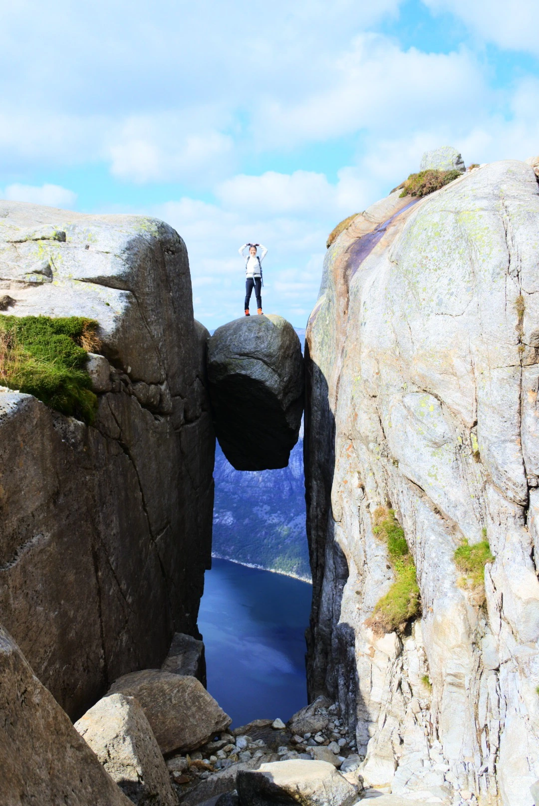 이 책을 보면서 과연 내가 살면서 용기를 내는 순간이 있었던가? 언제인가? 를 돌아보게 되었다. 기억나는 용기를 냈던 순간은 아마 몇 년 전 엄마와 노르웨이 트레킹 여행을 갔을 때 첫 트레킹 명소였던 쉐락볼튼이라는 곳을 갔었다. 다른 트레킹 장소들에 비해 이곳은 밑이 바로 바다이고 발 디딜 틈이 좁아서 바람이 불면 떨어질 수도 있겠구나 라는 생각이 들던 곳이었다. 지금 이 글을 쓰면서도 손에 땀이 날 정도. 실제로 이곳에서 떨어져 죽은 사람들이 많다는 뉴스도 봤었다. 그래서 이 좁은 틈을 디딜 때 많은 생각이 오갔었다. 그런데 이 순간만을 생각하며 올라왔던 나 자신과 뒤에 이 바위의 틈을 밟아보기 위해 줄 서서 기다리고 있는 사람들을 보며 용기를 냈다. 두려움을 극복한 내게 준 선물이었는지 다행히 바람이 불지 않은 좋은 날씨였고, 무사히 도전을 끝마칠 수 있었다.