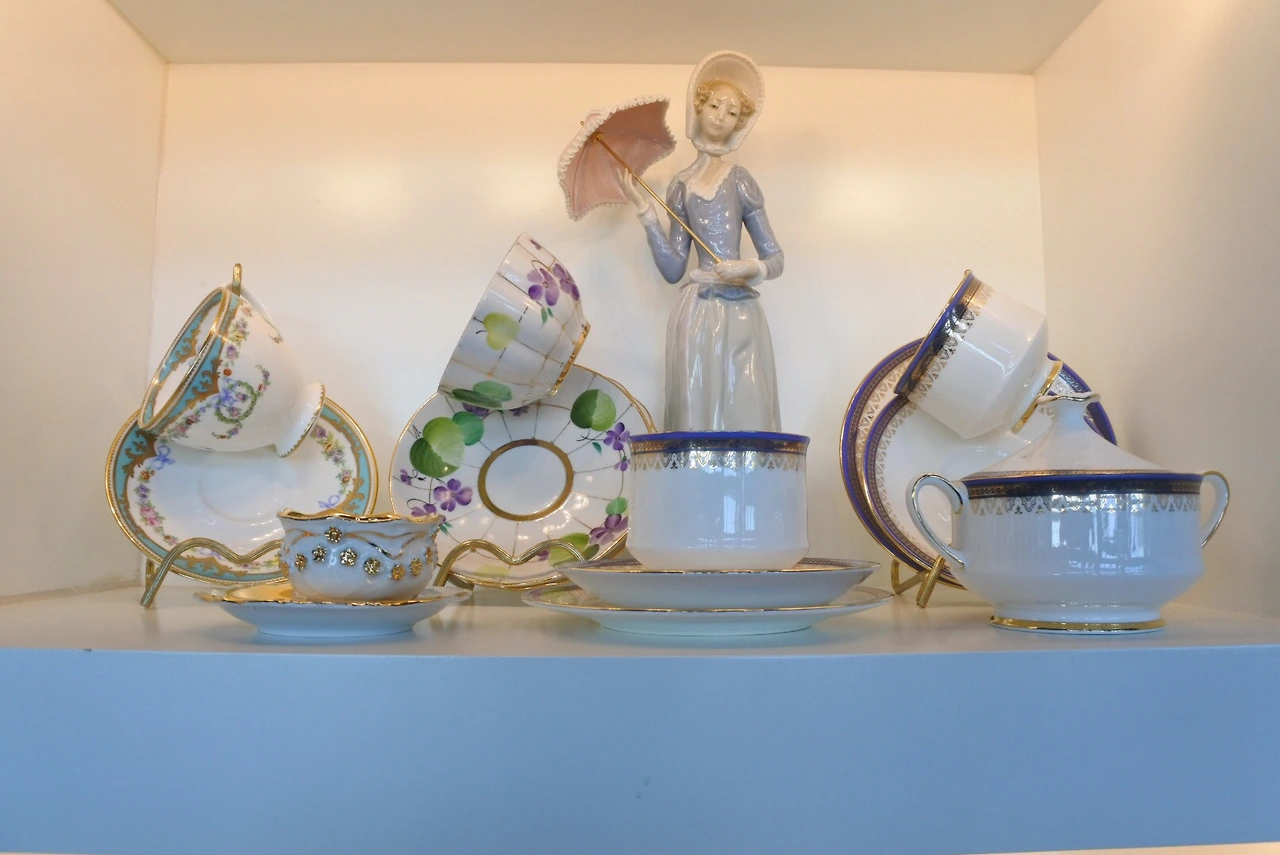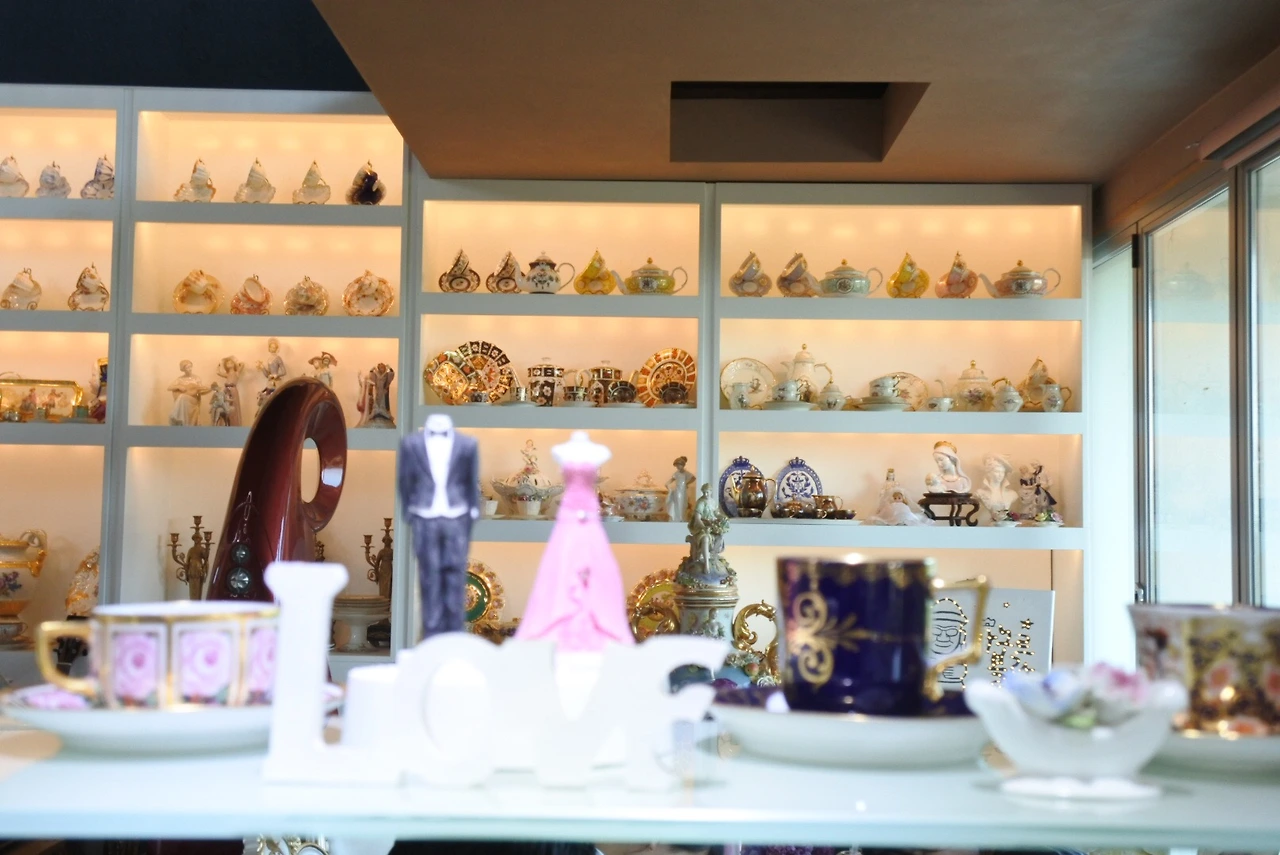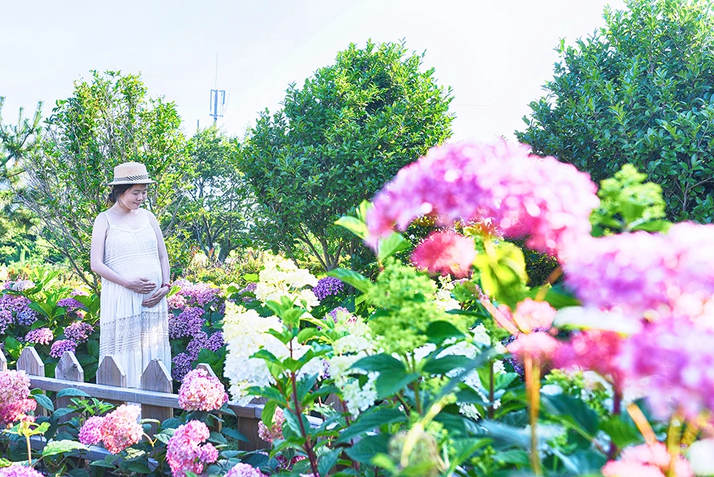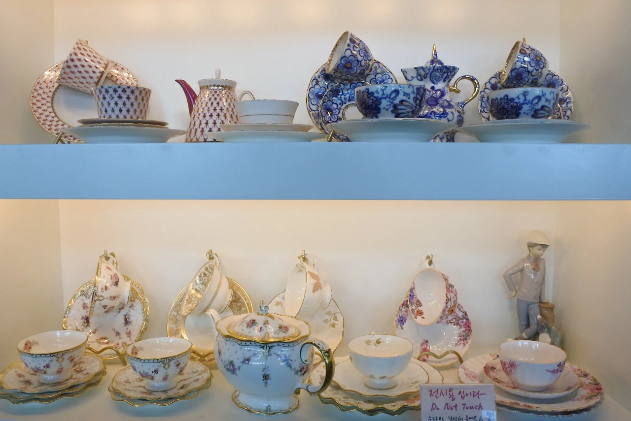 그리고 우리가 방문한 곳은 카페 안에 예쁜 찻잔이 진열되어있으면서 홍차로 유명하고, 수국 정원으로 유명한 마노르 블랑이라는 카페였다. 홍차가 유명하다고 해서 갔지만, 홍차에 들어있는 카페인 때문에 축복이에게 위험할 듯싶어서 홍차를 마시진 못했다. 카페 한쪽에 진열되어있던 예쁜 찻잔들이 눈을 즐겁게 했다. 실제로 주인장이 직접 모은 찻잔들이라고 하던데, 옛날에는 원하는 찻잔을 골라서 그곳에 차를 따라주기도 했다던데 카페가 워낙 사람들이 발 디딜 틈도 없이 유명해진 탓에 찻잔을 눈으로만 볼 수밖에 없게 바뀌어 안타까웠다. 나와 사진작가인 동료분은 음료를 주문하고 기다리는 동안 카페의 수국 정원으로 나가서 만삭 사진을 찍었다. 만삭 사진은 처음 찍는데 "포즈를 많이 취해본 솜씨다, 어떻게 이렇게 잘 찍느냐"라고 부끄럽게도 칭찬을 많이 해줘서 몸 둘 바를 모르고 찍었다. 우리 축복이가 함께였기에 엄마가 부끄럼이 없어졌던 게 아닐까.