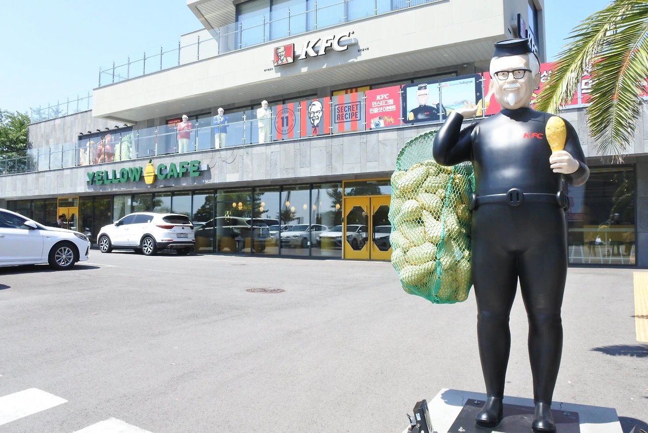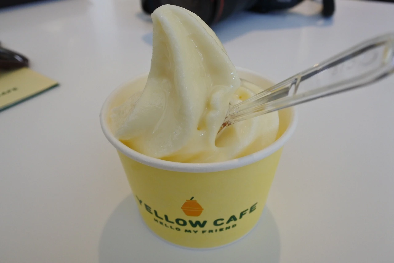 이곳에 꼭 먹어봐야 한다는 시그니쳐 메뉴인 꽃게짬뽕을 시키고, 아무리 이열치열이라지만 너무 더운 제주의 여름 날씨에 참지 못하고 주문한 냉짬뽕, 그리고 탕수육은 봤어도 탕수육밥은 생소해서 주문해봤다. 나는 도착하자마자 우리 축복이 몫까지 정말 배 터지게 먹었다. 꽃게짬뽕은 정말 해물 가득이었고, 특히 꽃게가 국물에 배여 국물의 맛이 얼큰하며 깊고 진했다. 냉짬뽕은 면이 쫄깃쫄깃하고, 국물이 시원해 매력이 있었고, 탕수육에 밥을 얹어먹는다는 걸 상상을 못 했는데 상큼 달콤한 탕수육 소스를 버무려 밥이랑 탕수육을 함께 올려 먹으니 너무 맛있었다. 많이 주문해서 서로 나눠먹었는데, 다양한 음식을 즐길 수 있어서 너무 좋았던 제주의 첫 끼니가 이렇게 끝이 났다. 그러고 나서 우리의 디저트 먹방이 시작되었다. 먹는 걸 유난히 좋아하는 나를 위해 동료들이 짠 맞춤여행코스였다. 여자들은 보통 음식을 먹고 나서 "아 배불러" 하고도 돌아서면 디저트를 먹는다는 것은 이미 과학적으로도 입증된 터. 우리가 첫 번째로 선택했던 디저트는 바나나맛 우유로 만든 아이스크림이 유명한 옐로 카페였다. 바나나맛 우유를 사랑하는 사람이라면 정말 꼭 방문해야 할 것 같은 그런 곳이었다. 온통 바나나맛 우유 세상이었고, 알록달록한 굿즈부터 시작해서 아기자기한 카페는 태교여행으로서도 맞춤 장소였고, 나중에 돌아봤을 때 가장 기억에 남으면서 나중에 축복이가 태어나면 꼭 함께 찾고 싶은 곳이었다.