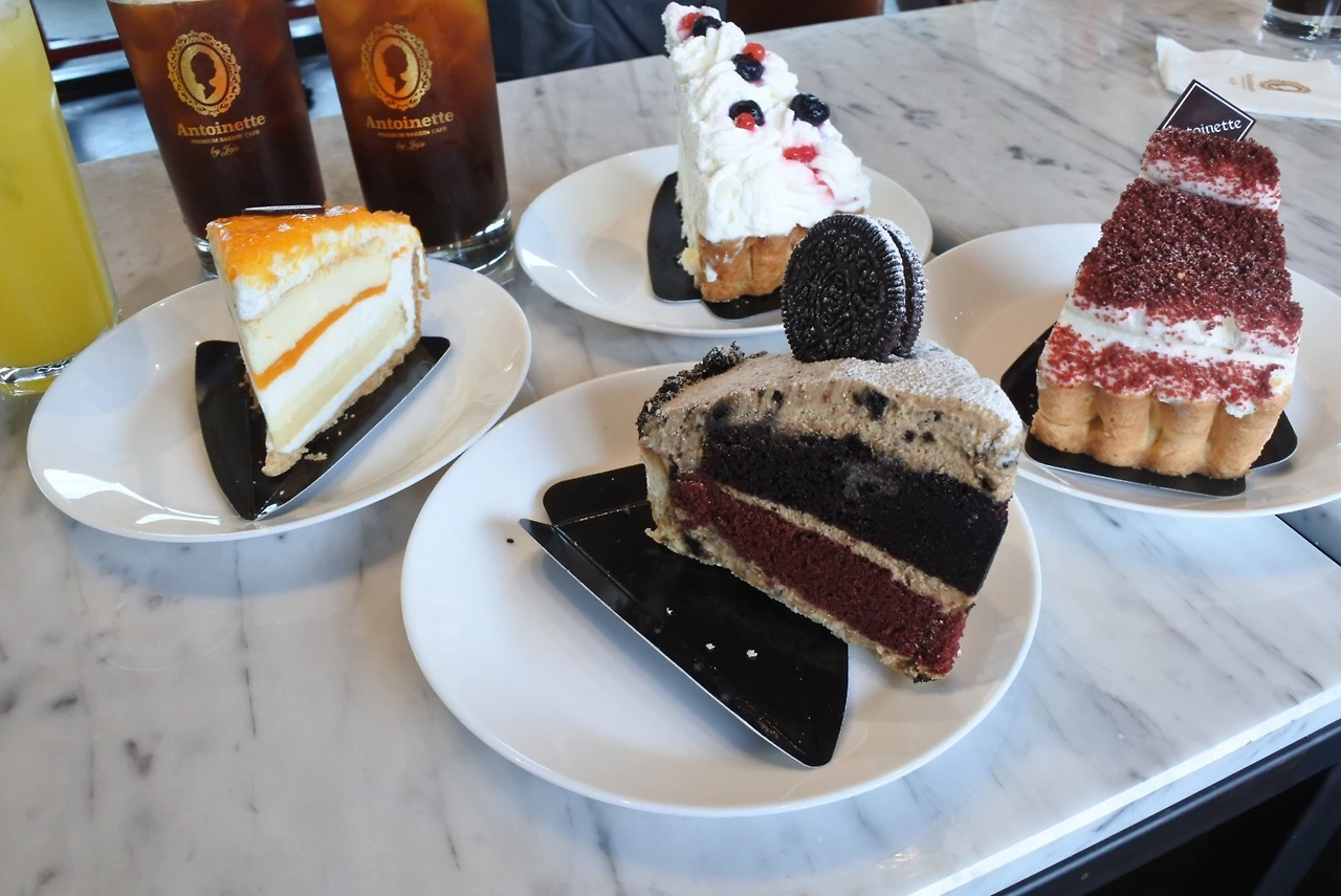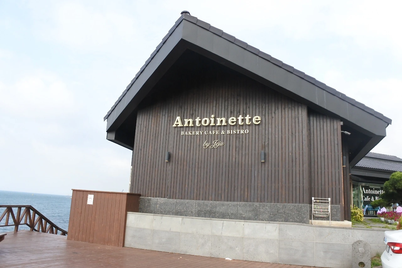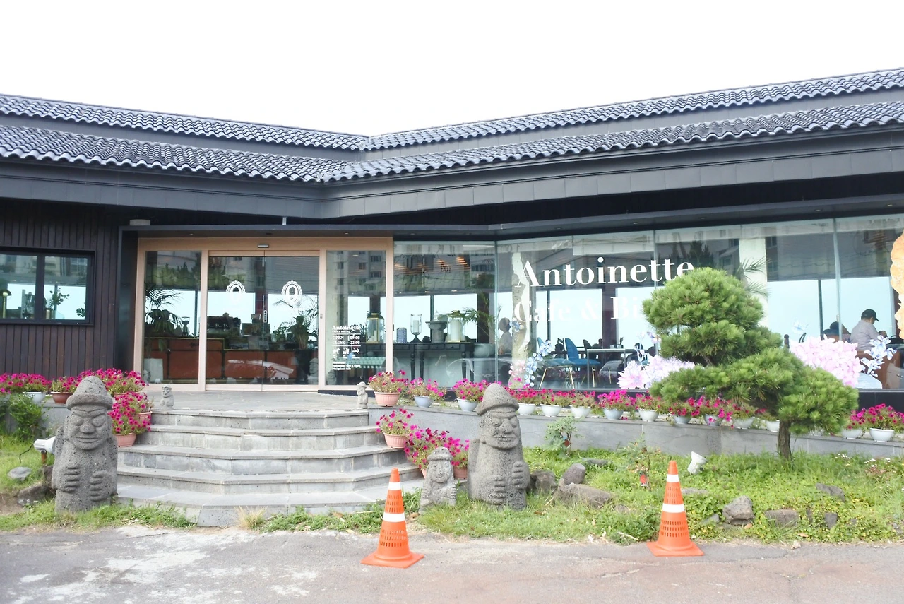 밥을 다 먹고 또다시 카페 투어가 이어졌다. 남은 시간은 얼마 없었고, 먹고 싶은 곳, 가고 싶었던 곳은 참 많았다. 이렇게 많이 먹어도 되는 건가 싶을 정도로 정말 쉬지 않고, 먹고 마시고를 반복했었다. 이번 짧은 여행 일정에서 참 많은 카페를 갔었지만 제주에 또 여행을 간다면 꼭 다시 찾아가고 싶은 카페가 있다. 바로 공항으로 출발하기 전 잠깐 시간 때우기 위해 들렀던 제주공항 근처의 해안가에 우직하게 서 있는 시원한 통유리 창이 탁 트인 바다를 보여주는 카페, 마치 카페가 우두커니 서서 바다의 세찬 파도를 다 막아주겠다는 의지가 느껴지기도 하는 카페였다. 내가 생각한 이 카페의 또 하나의 킬링 포인트는 바로 한옥 외관 디자인. 이 카페가 기억에 남는 다른 이유는 바로 앙투아네트라는 이름 때문인 것도 같다. 카페를 들어가니 보기만 해도 먹음직스럽고 예뻤던 케이크들이 반겨주었고, 첫 번째로 눈을, 그리고 입을 즐겁게 해 주었다.