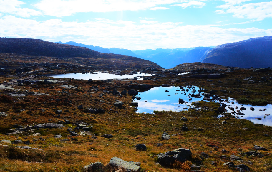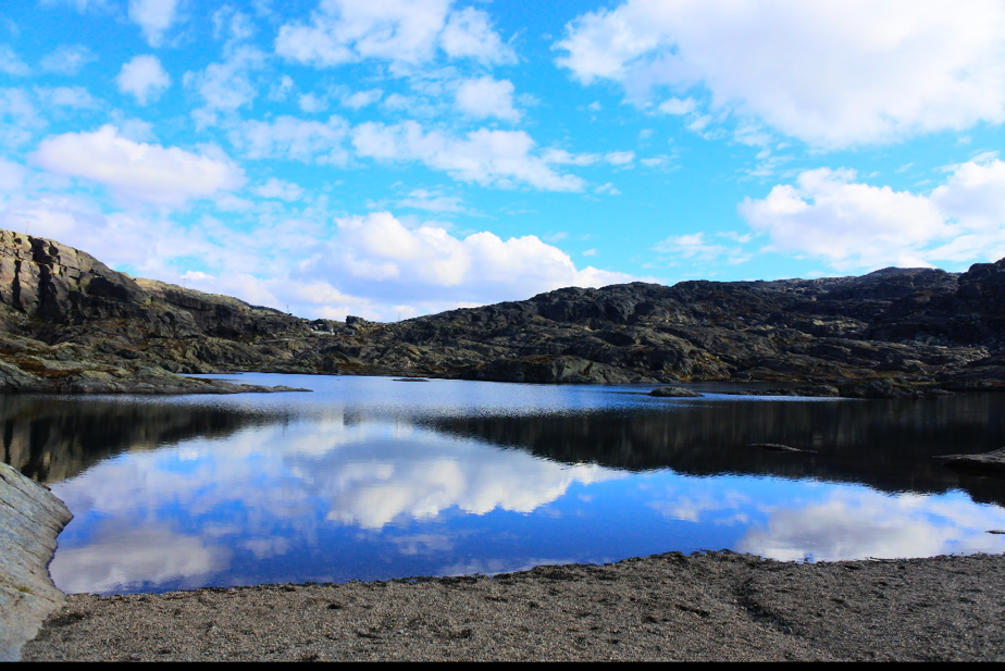 물에 비친 하늘도 하늘이었다는 내용을 통해 작가는 페이지가 넘어갈수록 꼭 하늘이 위에만 있는 것은 아니라고 말하며 하늘의 다양한 시선을 이야기해 준다. 이 내용을 보니 잊고 있던 노르웨이 트레킹여행 중 만났던 연못 물에 비친 하늘이 생각이 났다.