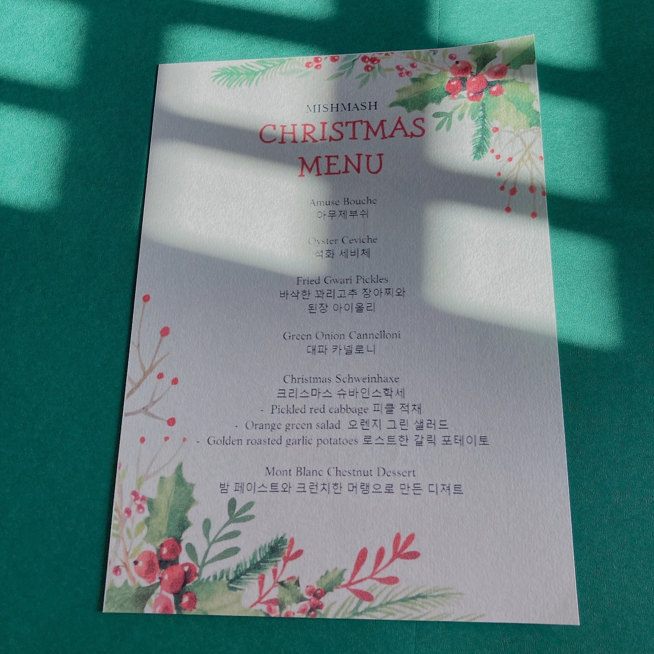고민이 많았다. 오픈 샌드위치를 먹으러 갔던 나에게는 청천벽력과도 같았던 상황이었다. 1인당 8만 원이라는 코스요리를 과연 먹어도 되는 걸까 싶었다. 혼자 먹기에는 가격이 너무나 사악했지만 기대했던 레스토랑이었고, 회사에서 연말 상여금도 받았겠다 싶어 나 자신에게 써도 되겠다는 자기 합리화로 먹기로 결심했다.