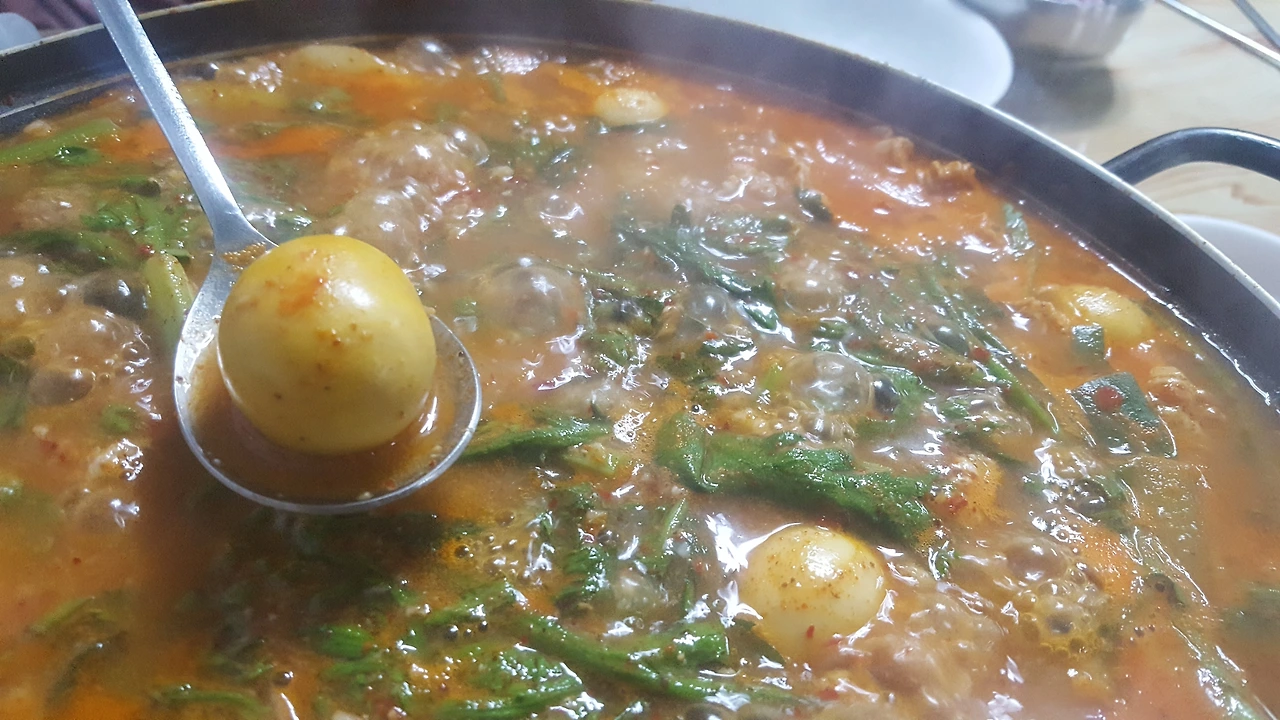 지금의 남편과 연애하던 시절에 우리는 겨울이 되고, 스케이트장이 개장하자 어김없이 스케이트를 타러 갔었다. 한 시간을 미친 듯이 즐겁게 논 뒤 배가 고파졌고, 쌀쌀했던 날씨에 따뜻한 국물이 먹고 싶어 졌다. 갑자기 근처에 조금만 이동하면 따뜻하고 얼큰한 닭알탕 거리가 있어 남편에게 소개해주고 싶었고, 그 즉시 먹으러 가자고 재촉했었다. 처음 닭알탕을 접하는 남편은 약간 망설였고, 나는 분명 맛있을 거라고 걱정 말라고 이야기해주었다. 그러나 우리는 이동해야 했고, 걷는 걸 싫어하는 남편과 걷는 걸 좋아하는 나. 우리는 이동수단에 대해 갈등을 빚게 되었다. 남편은 버스를 타고 닭알탕 집으로 이동하고 싶어 했고, 나는 걸어서 이동하고 싶어 했다. 결국 내 고집을 꺾어내지 못했던 남편과 언덕을 넘어 걸어서 닭알탕 집을 찾아갔다. 언덕을 올라서 가는 도중에 눈이 내렸다. 갑자기 우리 앞에 가던 자동차가 미끄러져 헛바퀴를 돌았고, 하마터면 닭알탕을 먹으러 가다가 생사를 오갈 뻔했었다. 다행히 우리는 무사했고, 남편도 처음으로 닭알탕이라는 음식을 먹었었다. 소주를 부르는 맛이라며 너무 좋아했었고, 맛있게 먹었다. 닭알이라는 음식이 생소했는데 계란 노른자 같은 생김새에 씹을수록 고소한 맛, 얼큰한 국물은 안 좋아할 수가 없는 맛이라고 극찬을 했었다.