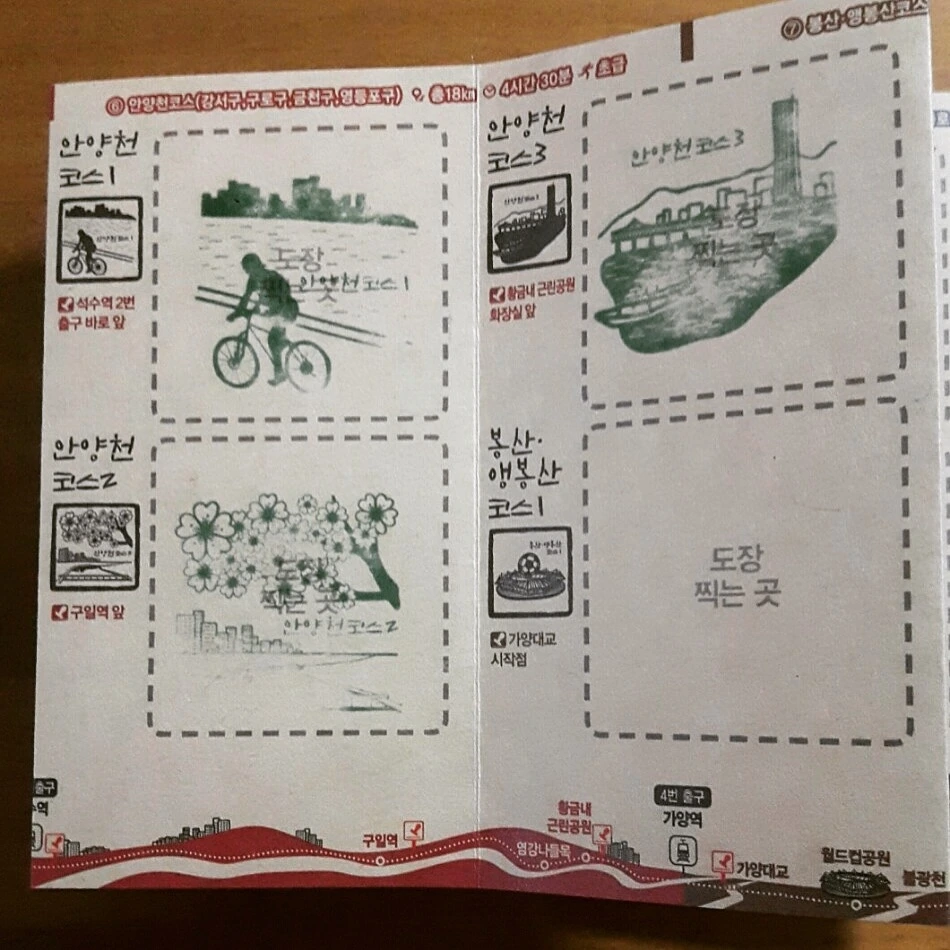 걷기 전 서울시청에서 스탬프 찍는 종이와 지도를 받을 수 있다고 해서 그 종이와 지도를 챙겼다. 물론 엄마 꺼까지 2개 챙겨서 걷기 준비를 완료했다. 인터넷에 찾아보면 6코스가 석수역부터 가양역까지 코스라고 되어있지만, 가양역에서부터 시작해도 상관없다고 생각했다. 그래서 인천에서 출발하여 가양역까지는 대중교통으로 이동을 했다.