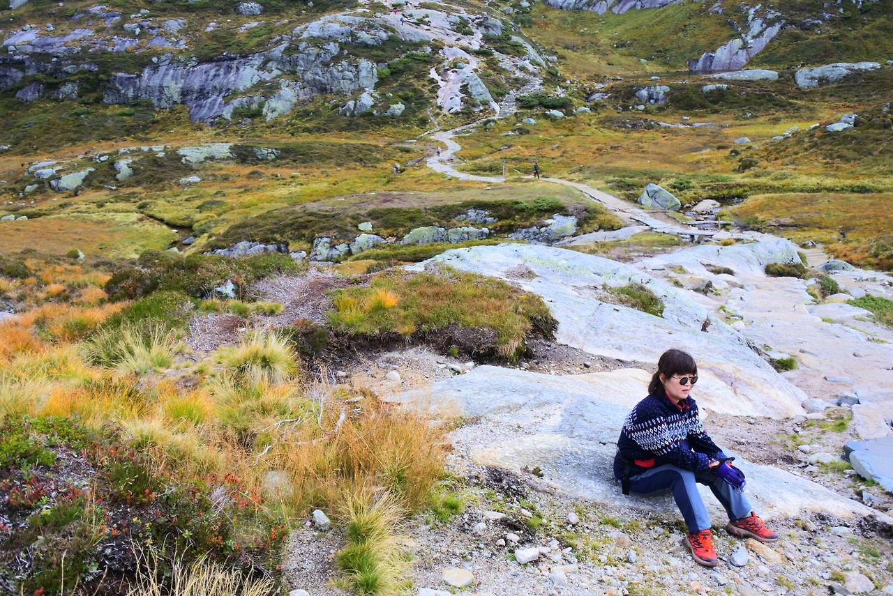 우리의 첫 고비였던 로프를 잡고, 가파른 암벽을 오르는 구간은 성공을 했다. 마치 정상을 다 올라온 마냥 쉬고 있었는데 아직 갈 길이 멀다는 가이드님의 말에 정신을 바짝 차리고 마음을 가다듬고 다시 출발을 했다. 초반 암벽 등반을 끝내니 비교적 순탄했던 오르막 내리막 코스였다. 그렇게 별 탈 없이 가고 있었는데 엄마는 조금 힘에 부치셨는지 갑자기 멈추셨다. 나도 따라 멈췄다.