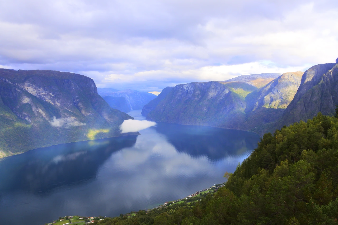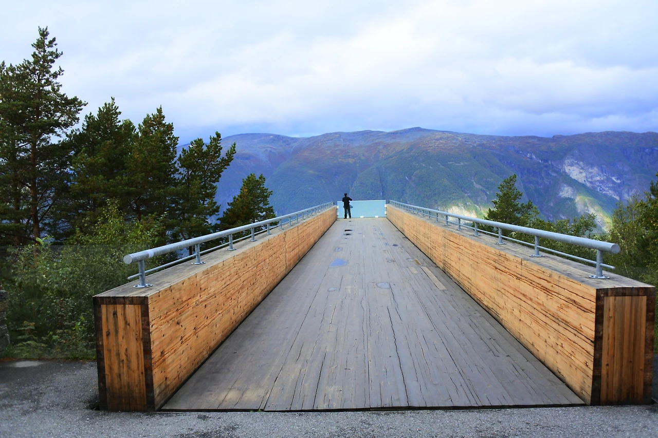 행운의 여신과 날씨의 신은 우리 편이었다. 전날 장대비가 퍼붓고, 안개가 자욱했던 날씨가 이렇게나 좋아질 줄이야. 하나라도 더 보고 갈 수 있어 기분이 좋았었다. 노르웨이 3대 트레킹 코스를 모두 완주했던 나에게도 이곳에서 보는 경치는 가히 예술이었다. 트레킹 코스들의 정상보다 지대가 많이 낮았음에도 어떻게 이렇게 수려한 경치를 보일 수 있었던 건지 신기해서 한참을 전망대 끝 쪽으로 가까이 다가가서 바라보았다. 엄마는 유리로 된 전망대를 보시면서 행여나 떨어지진 않을까 조바심을 내며 무서워하셨다. 가까이 다가와서 보지 못하시다가 시간이 좀 지나니 익숙해지셨는지 잠시 후 엄마가 전망대 끝 쪽으로 다가오셨다. 엄마는 트레킹을 하지 않았던 다른 일행 한 분과 이야기를 나누시며 경치에 반한 모습을 보이셨었다. 두 분은 경치가 매우 멋있다고 하시며, 우리의 마지막 목적지인 베르겐을 가기까지 조금 더 시간이 걸린다 해도 여길 들렀다 가길 참 잘했다고 감탄하셨다. 시간이 더 걸린다는 이유만으로 만약 이곳을 그냥 지나쳤더라면 후회가 남았을 것 같았다. 아니다, 이곳을 몰랐었으니 괜찮았으려나? 늦게나마 이런 매력적인 장소에 들렀던 게 참 다행이었다.