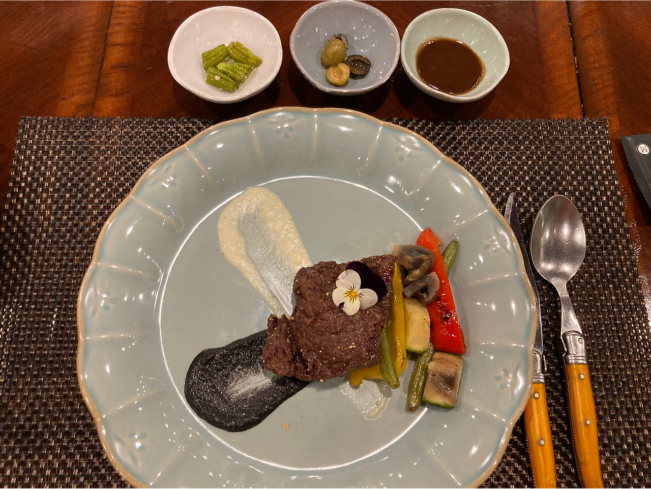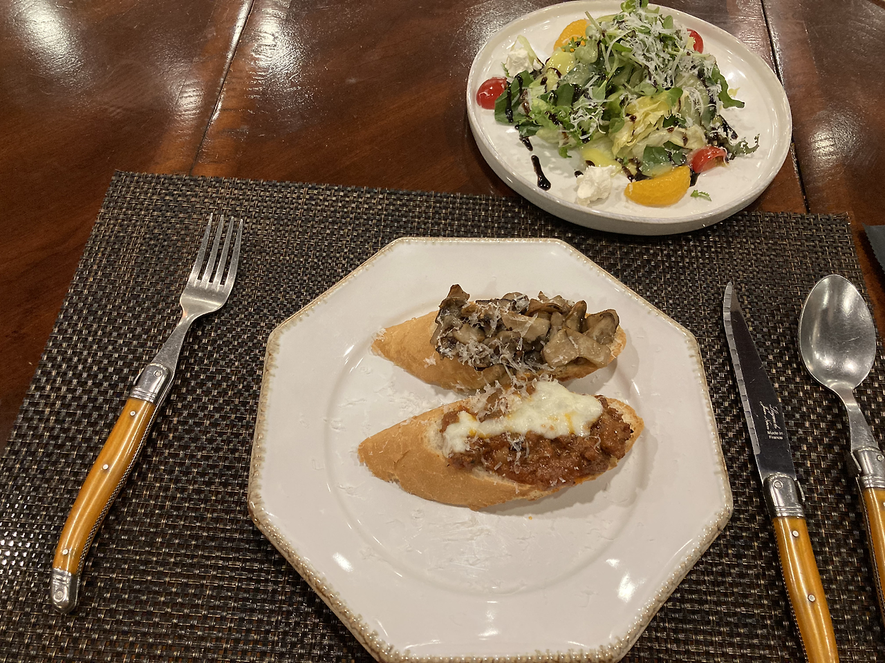채소가 푸짐하게 있는 샐러드부터 시작해서 라구와 트러플 버섯이 올라가 있는 부르스케타가 각각 애피타이저로 나왔다. 샐러드와 라구가 올려져 있는 부르스케타를 먼저 맛보았는데 부르스케타가 따뜻하고 매콤해서 그랬는지 풍미가 좋았었다. 먹는 속도가 느렸던 나는 트러플 버섯이 올려져 있는 부르스케타를 막 먹으려던 찰나에 스테이크가 나왔다. 메인 요리가 우선이지 않을까 해서 스테이크를 먼저 먹고 트러플 버섯이 올라간 부르스케타는 나중에 맛보기로 했다. 먼저 먹어본 남편은 트러플 버섯이 올라간 부르스케타도 따뜻할 때 먹어야 맛있는데 빨리 좀 먹지 그랬냐고 타박을 했다. 스테이크는 고기가 연하고 굽기도 적당했다. 칼로 썰었을 때 잘 썰어지는 것도 마음에 들었다. 남편도 만족해했다. 스테이크까지 다 먹고 나서 트러플 버섯이 올라가 있는 부르스케타를 집었는데 메인 요리를 먹고 배가 불렀는지 남편이 말했던 감동적인 맛은 나는 찾을 수 없었다. 좀 빨리 먹을걸 천천히 먹었던 내가 조금 한심스러웠다.