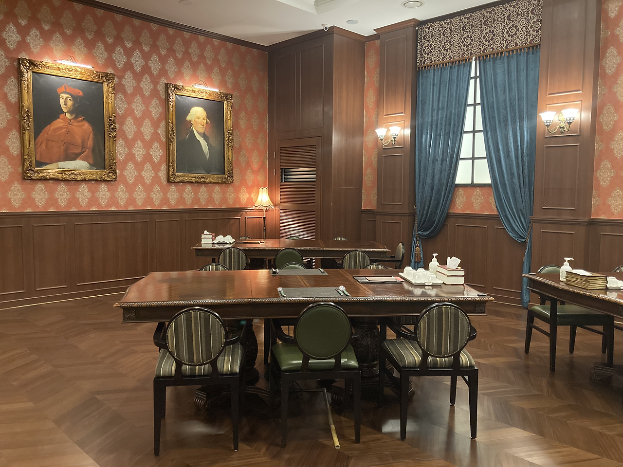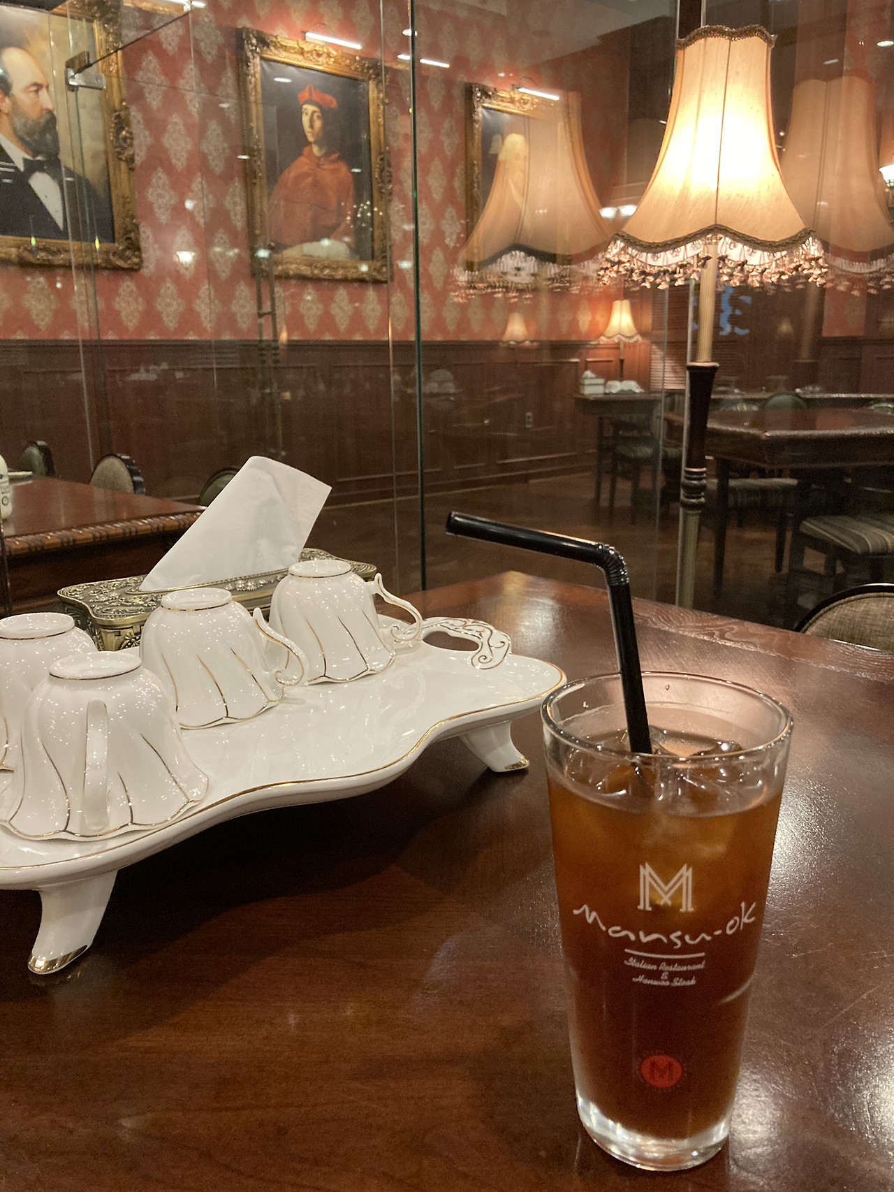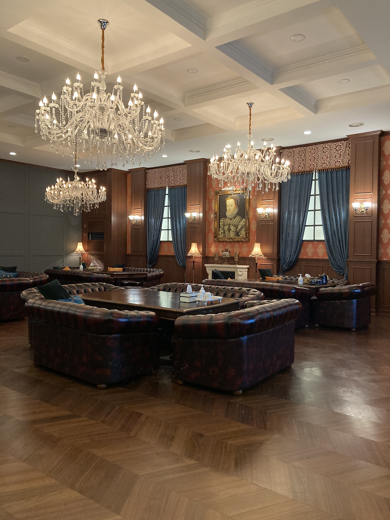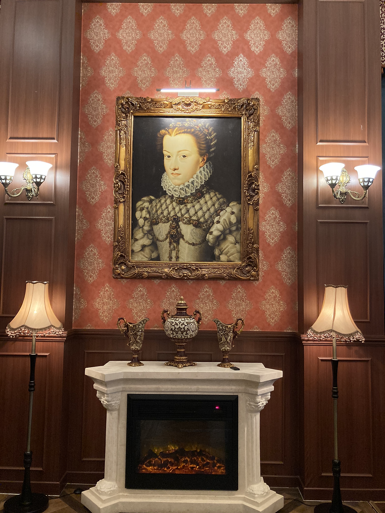 컨테이너 건물의 외관을 봤을 때는 감흥이 없었는데 문이 열리니 이렇게 번쩍번쩍할 수가. 입이 딱 벌어진 내 모습을 봤던 남편은 흐뭇하게 나를 쳐다보며 연신 "놀랐지?", "놀랐지?" 하고 물었다. 평일이었고, 늦은 점심시간이라 그랬는지 사람이 별로 없었다. 사람이 많지 않아 우리가 앉고 싶은 자리를 선택해서 앉을 수 있었던 점도 마음에 들었다. 유럽풍 인테리어와 곳곳에 초상화 그림들이 정말 취향저격이었다. 고기 러버인 우리 부부는 둘 다 스테이크 코스요리를 주문했다.
