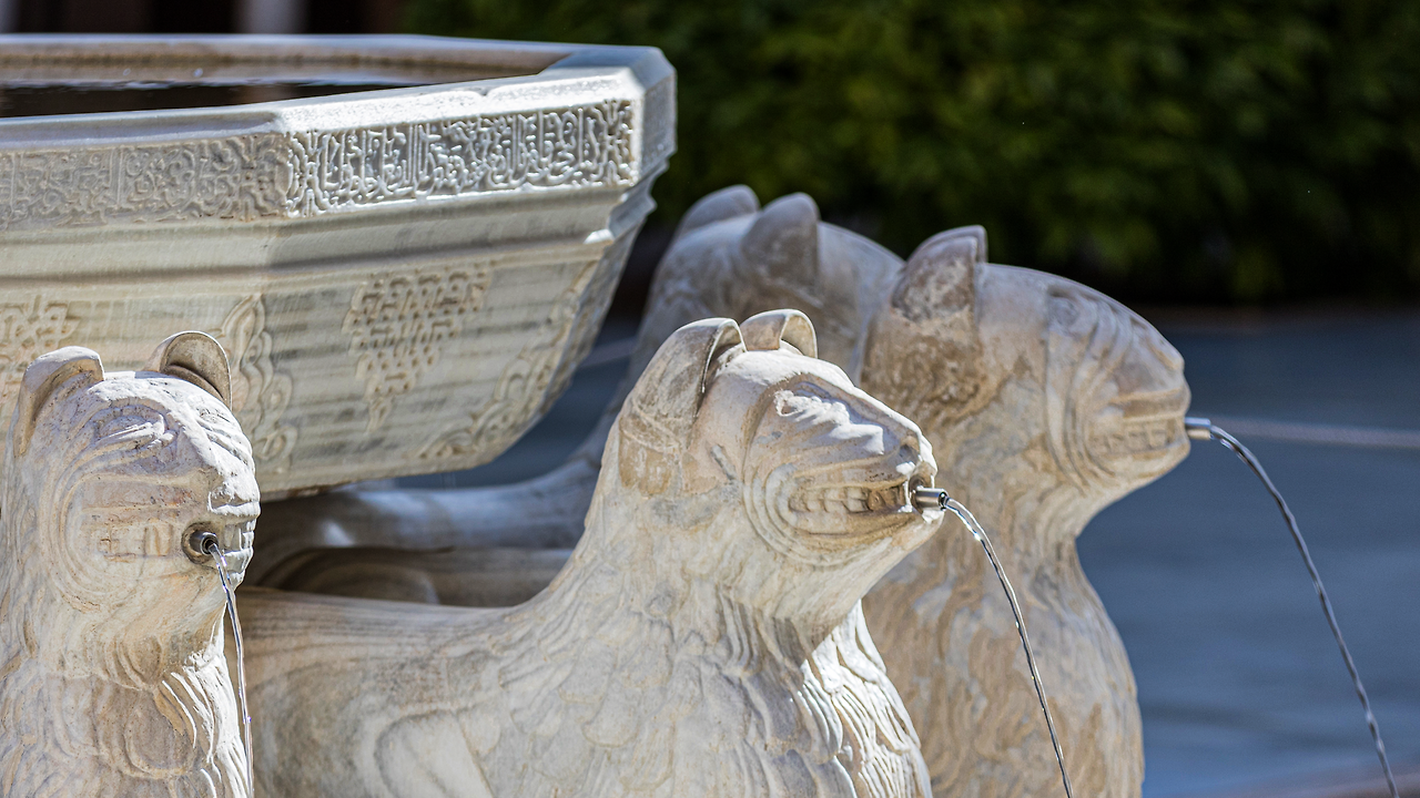 사자의 궁전 Palacio de los Leones 은 유럽 내 이슬람 건축물 중 가장 아름다운 곳으로 평가되는, 나스르 궁전의 하이라이트라 할 수 있습니다. 우상을 금기시하는 이슬람 교리에도 불구, 나스르 왕조는 12마리 사자의 분수 Fuente de los Leones 를 사자의 중정 Patio de los Leones 정중앙에 배치하였습니다. 사자 12마리는 황도십이궁 Zodiac 을 암시하는 것으로 해석되며, 분수 바닥에는 낙원의 4대 강을 상징하는 네 갈래의 신성한 물줄기가 4개의 방과 서로 연결되어 있습니다.