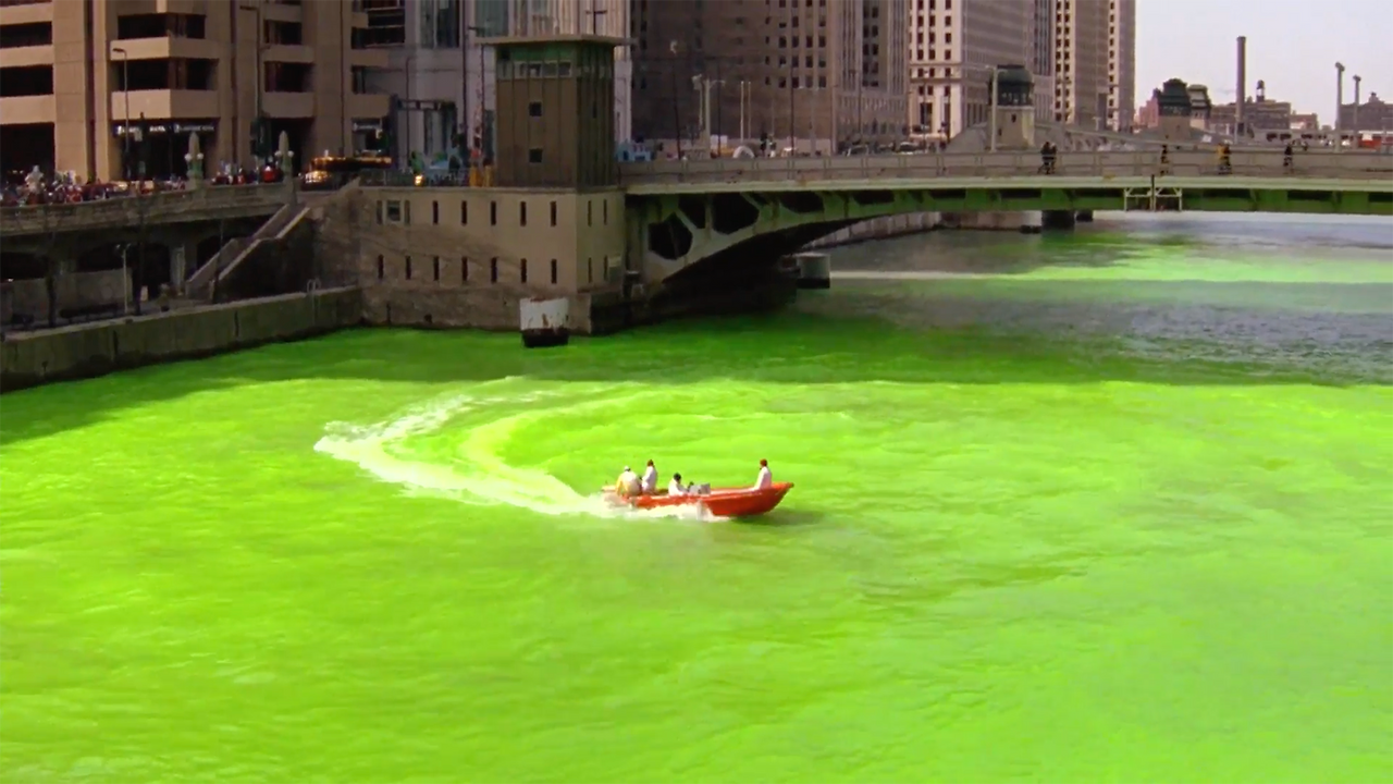 위 사진은 이 영화의 한 장면으로 시카고 강의 모습입니다. 특이한 건 강이 초록색이라는 점인데요. 영화 개봉 당시 강이 원래 초록색인지, 아니면 촬영 당시 녹조가 낀 것인지 개인적으로 무척 궁금했던 기억입니다. 인터넷이 발달하지 않았던 당시 그렇게 의문으로 제 뇌리에 강하게 남았던 시카고 강의 초록 빛깔은 이후 우연한 계기로 그 원인을 찾게 되었는데요. 시카고 강이 초록색이었던 건 놀랍게도 시카고 시민들이 일부러 시카고 강에 초록색 염료를 뿌렸기 때문이었습니다. 그럼 그들은 왜 멀쩡한 강에 염료를 뿌렸을까요?