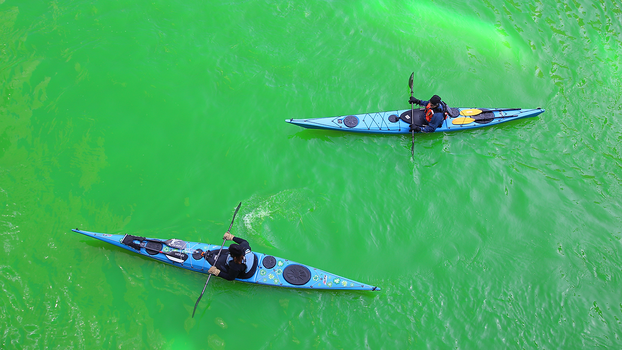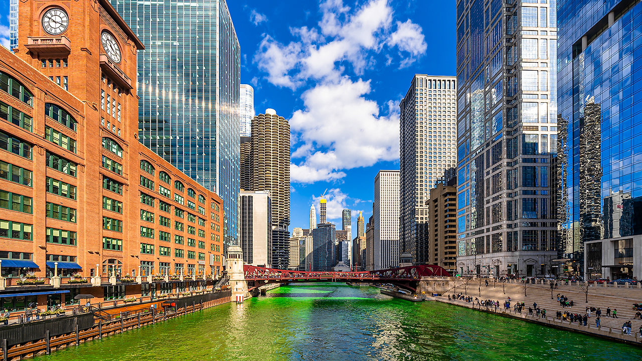 1800년대 중반 아일랜드에 발생한 대기근으로 많은 아일랜드인은 부득이 고국을 버리고 미국을 비롯한 세계 각지로 흩어져야 했습니다. 미국으로 이민을 떠난 아일랜드인에게 인기 있던 목적지는 뉴욕, 보스턴, 필라델피아, 시카고 등이 대표적입니다. 그중 시카고는 2차 산업과 농업이 함께 발전했기 때문에 많은 노동력을 필요로 했습니다. 결국 시카고는 다수의 아일랜드계 미국인이 사는 도시가 되었으며, 이로 인해 자신들의 수호성인인 성 패트릭을 기리는 대규모 행사가 해마다 시카고에서 개최되는 것이 전혀 이상하지 않은 곳이 되었습니다. 오늘날 3월 16일 아침이면 시카고 시민과 방문객들은 이른 아침의 추위에도 불구하고 시카고 강에 초록색 염료를 뿌리는 광경을 목격하기 위해 강변에 모입니다.