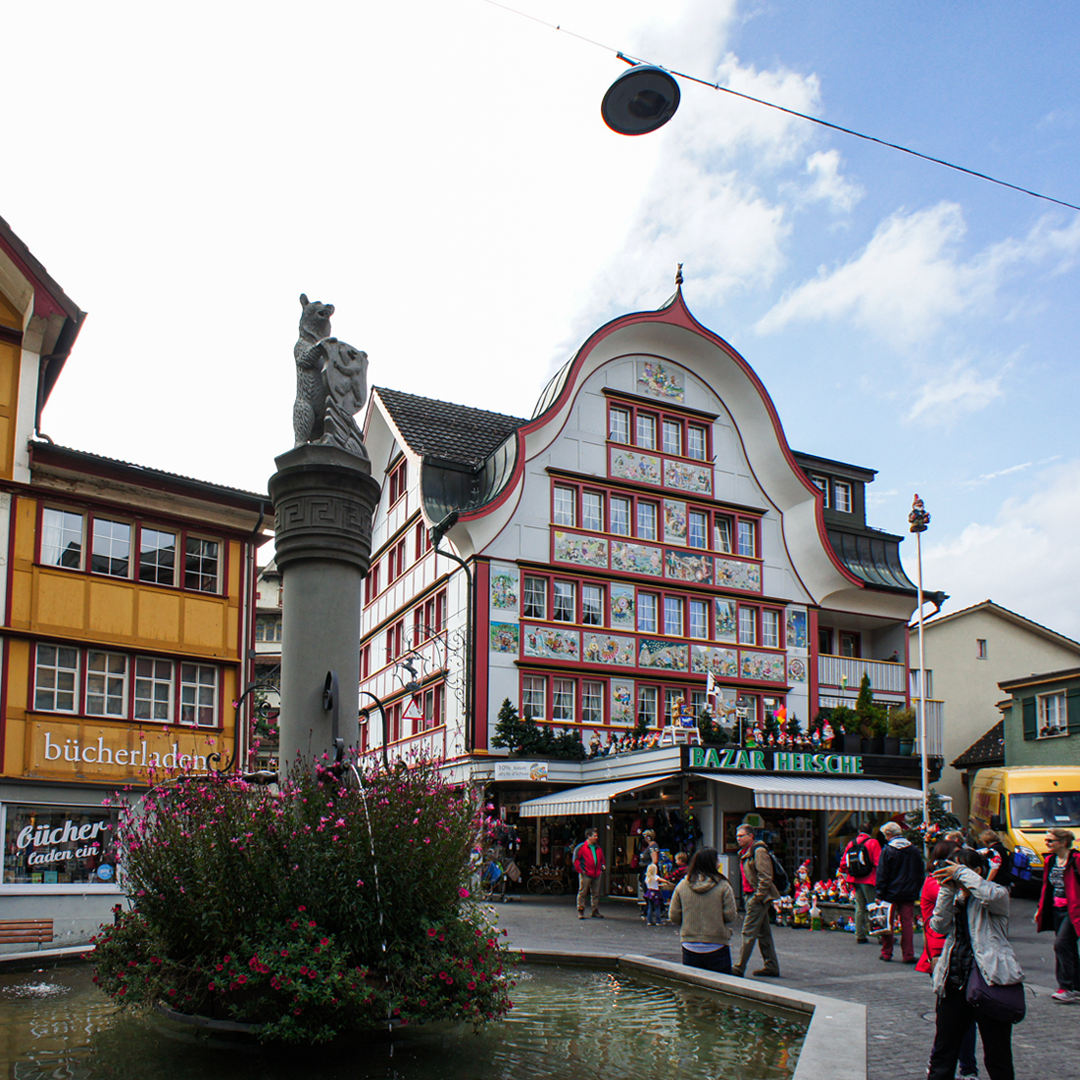 아펜첼 마을의 역사는 중세 시대로 거슬러 올라갑니다. 마을의 중심지에는 파스텔톤으로 아름답게 채색된 목조 가옥이 줄지어 서 있으며, 정교한 프레스코화와 장식 문양이 더해져 있습니다. 마을 광장인 란츠게마인데플라츠 Landsgemeindeplatz 는 아펜첼의 공동체 생활의 중심지로 매년 야외 공개 집회인 란츠게마인데 Landsgemeinde 가 열리는 장소입니다. 이 집회에서는 지역 시민들이 다양한 행정 문제에 대해 거수로 투표에 참여합니다. 이 관습은 아펜첼 이너호덴 주와 글라루스 주 Glarus 에서만 찾아볼 수 있는 가장 오래된 형태의 직접 민주주의 중 하나입니다.
