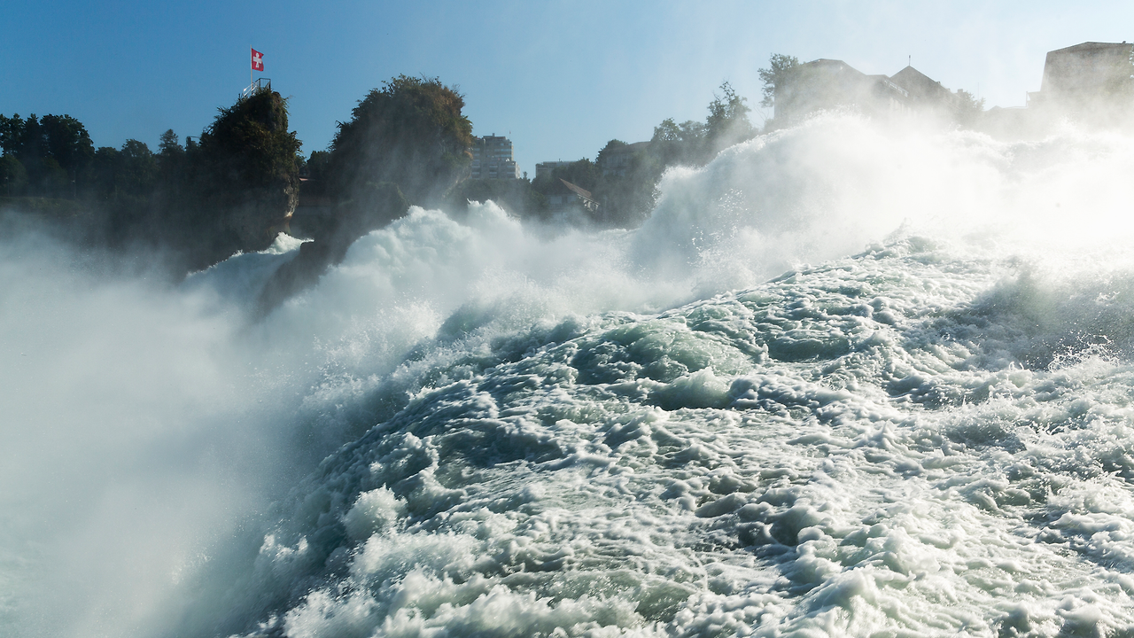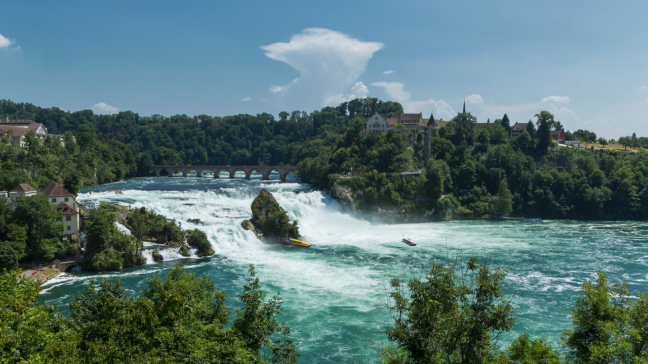 스위스 북부 샤프하우젠 Schaffhausen 인근에 자리한 라인 폭포 Rheinfall 는 유럽 최대의 폭포입니다. 라인강에서 시작되는 이 웅장한 폭포는 폭 150m, 높이 23m이며, 특히 알프스 빙하가 녹아내리는 여름철에는 유량이 최고조에 달해 더욱 거센 물줄기를 자랑합니다.