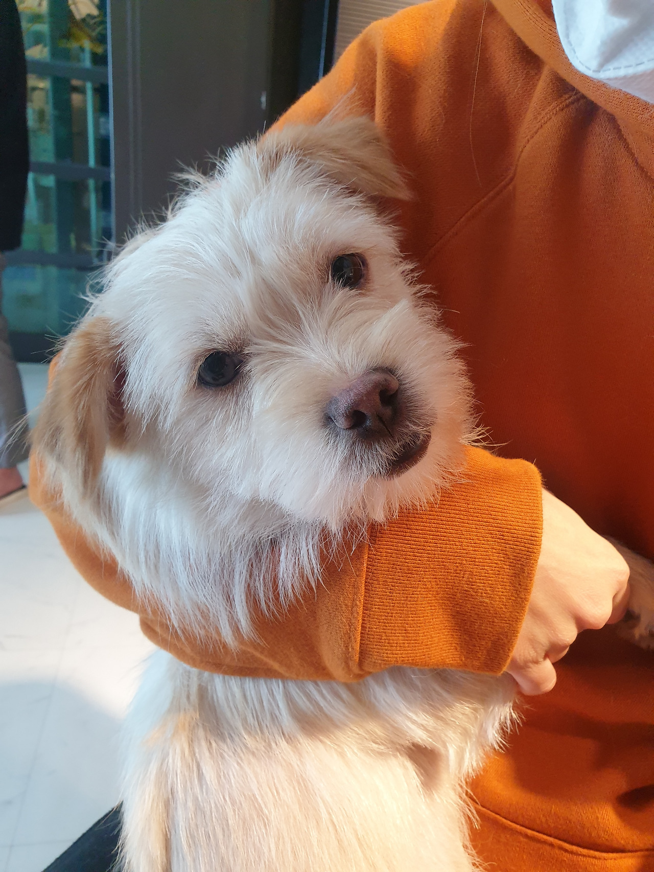 그렇게 5시간 정도 머물렀을까. 놀다 지친 강아지들은 남편과 나의 발과 무릎을 하나씩 차지하고서는 쌔근쌔근 잠이 들었다. 이 천사들을 뒤로하고 떠나려니 마음이 저릿해졌다. 잠든 아가들이 깨버리기 전에 살금살금 집을 나왔다. 나와서 보니 온 몸에는 강아지 털이 수북하게 쌓여있었다. 어디 그뿐이랴. 집으로 돌아가는 길에 거울을 보니, 강아지들이 내 머리카락을 뜯어먹은 탓에 없던 앞머리까지 생겼다. 그 짧은 머리카락을 보는 순간 복잡한 감정이 폭발하여 눈물이 펑펑 쏟아졌다. 아가들과의 소란스러웠던 시간을 생각하며, 또 꿍에게 해주지 못했던 것들을 떠올리며 엉엉 흐느꼈다. 봉사라고표현하기 민망할 정도로도리어 내가 큰 위로를 받았다. 나의 첫 유기견 쉼터 봉사는 이렇게 끝이 났다.