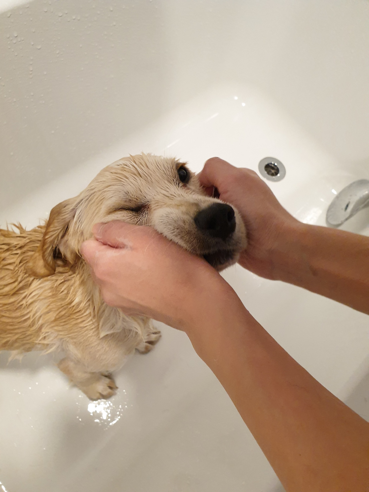 우리는 여섯 마리의 강아지를 차례대로 목욕시켰다. 순둥순둥한 아가들이 너무 사랑스러워서, 씻기는 도중에도 쉴 새 없이 그 조동이에 뽀뽀를 해주었다. 목욕을 시킨 뒤에는 강아지들과 실컷 놀았다. 모두들 우리를 잘 따르고 좋아했다. 내 품에 안겨서 잠이 들기도 하고, 앙앙 물며 애교를 부리기도 하고, 또 손과 얼굴 등을 핥으며 애정 표현을 하기도 했다.