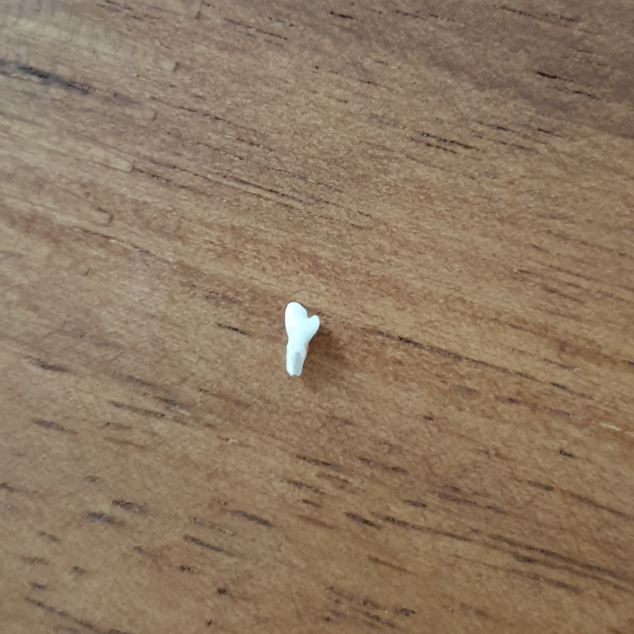 누굴 닮았든 간에 이렇게 건강하게 무럭무럭 자라 주는 달콩이에게 우린 고마울 따름이었다. 하지만 마음 한켠에는, 점점 한 팔로 안기도 버거울 정도로 무거워지는 달콩이가 좀 더 아가로 머물러주길 바라기도 했다. 부모들이 아이가 천천히 자랐으면 좋겠다고들 이야기하는 것도 왠지 이해가 갔다. 강아지는 보통 1살까지 큰다고 하는데 이를 사람의 나이로 환산해보면 무려 16살이라고 한다. 이처럼 강아지의 시간은 너무나도 빨라서, 내 품에 쏘옥 들어오던 작은 강아지 달콩이는 점점 솜이 빵빵한 쿠션처럼 포근해졌다. 달콩이가 4개월쯤 되었을 때부터는 유치가 하나씩 빠지기 시작했다. 이갈이가 시작된 것을 짐작으로는 알고 있었으나 처음에는 어디가 어떻게 빠졌는지 알 길이 없었다. 그러다 어느 날 홍군이 베란다 바닥에서 달콩이의 유치를 발견했다. 조그마한 요리사 모자처럼 생겨서는 속이 텅 비어있던 달콩이의 앞니. 그 하찮고도 소중한 치아를 받아 드는 순간 왠지 내 마음속에는 지잉- 심벌즈가 크게 울렸다. 생명을 키우며 느끼는 감동이 바로 이런 것이구나.... 영구치가 나면서 그 자리에 있던 유치가 밀려나 자연스럽게 빠지는 것. 생명이 가진 신비와 그 질서가 새삼 대단하다 느꼈다. 그 후로 나는 달콩이의 유치를 바닥 어딘가에서 발견할 때마다, 플라스틱 약통에 보관해두고는 시도 때도 없이 꺼내보게 되었다. 제대로 된 치아를 갖기 전에 임시로 붙어있었던 이 치아들이 여전히 신기하기만 하다.
